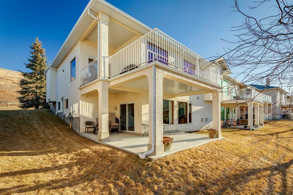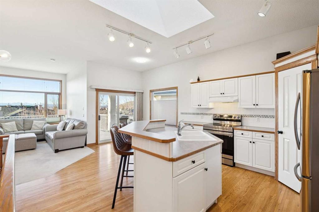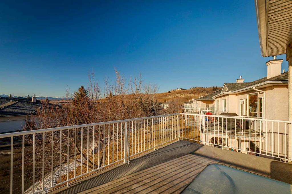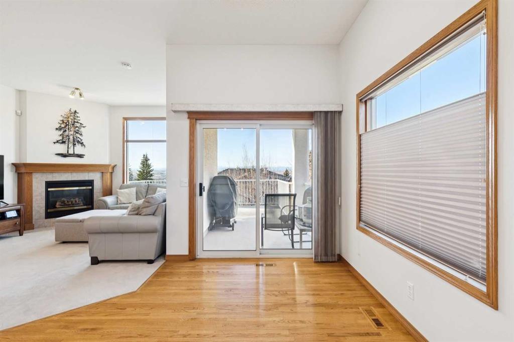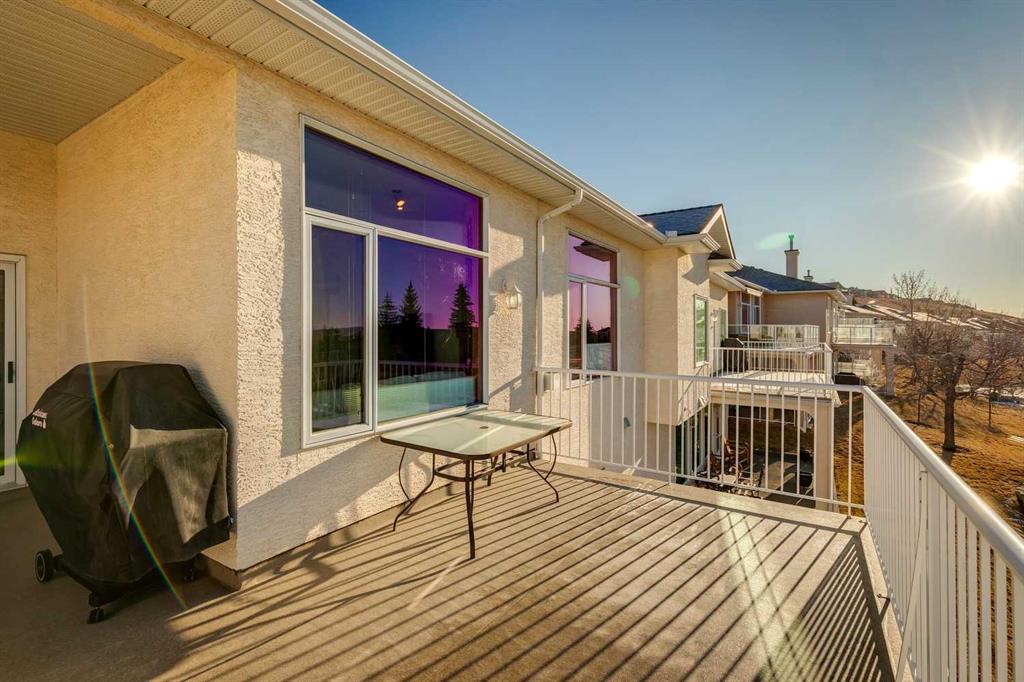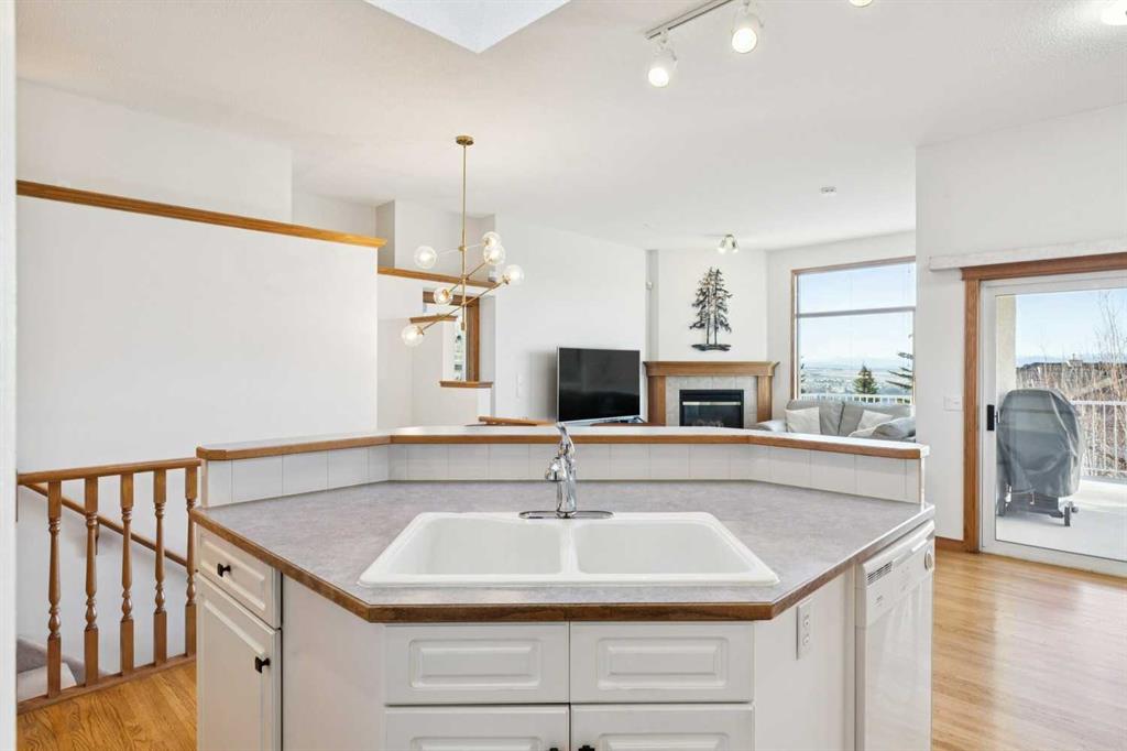 A RARE FIND! First time offered to market for this family owned and loved villa! The “Lorette III”, beautifully built by Beattie Homes, is a popular plan offering 10’ main floor ceilings, skylight, transom windows, timeless oak hardwood, trim and railings. Open concept features a great room with a corner gas fireplace, trimmed in tile and finished with an oak mantle plus mountain views from the picture window. The kitchen has a center island with a raised breakfast bar, step-in pantry and sliding doors from the dining nook to the deck and BBQ. From the deck enjoy the splendor of the beautiful Bow Valley, the manicured landscaping of Gleneagles Golf Course and the majestic Rocky Mountains! The spacious primary suite has a 5 pc ensuite (separate shower stall and jetted tub) and walk-in closet. Completing the main floor is a full-size formal dining room plus a private home office, ½ bath for guests, laundry/mudroom and direct access into the double attached garage. The lower-level walk-out offers an additional 1,200 sqft of professionally developed living space, offering 9’ ceilings, in-floor heating, rec room with 2nd gas fireplace and custom wet bar, games/gym area, two additional bedrooms with walk-in closets, 4 pc bathroom and a huge storage/utility room (new HE furnace and HWT within the last 2 years). This choice villa location is on a quiet cul-de-sac and backs onto a green space with mountain views from both levels. Beautifully maintained, but in original condition - the perfect opportunity to upgrade and personalize to your liking. The Villas at Gleneagles is known for its wonderful sense of community, the many walking paths, the open green spaces and the spectacular valley and mountain views. Minutes from all the amenities in Cochrane: walking and bike trails, award-winning SLS Rec Centre and MacKay’s Ice Cream Shop, just 10 minutes to Calgary, 15 minutes to the Tuscany LRT Stn and 25 minutes to YYC. June 1 possession preferred but negotiable. The Villas at Gleneagles is truly an investment in both real estate and lifestyle!