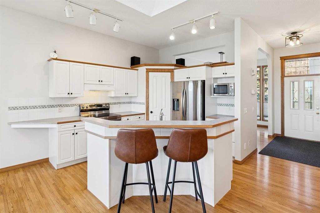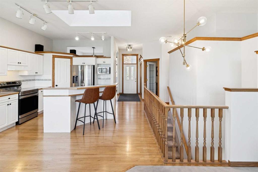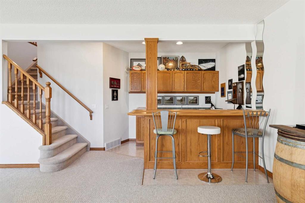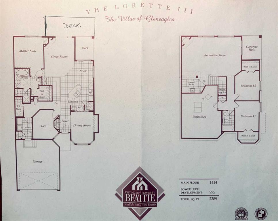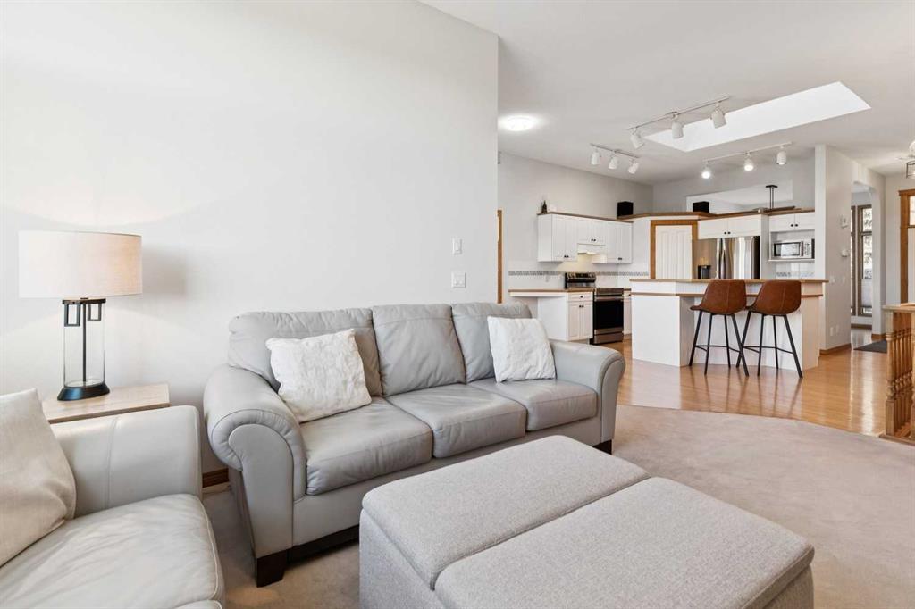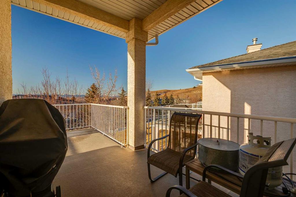 A RARE FIND! First time offered to market for this family owned and loved villa! The “Lorette III”, beautifully built by Beattie Homes, is a popular plan offering 10’ main floor ceilings, skylight, transom windows, timeless oak hardwood, trim and railings. Open concept features a great room with a corner gas fireplace, trimmed in tile and finished with an oak mantle plus mountain views from the picture window. The kitchen has a center island with a raised breakfast bar, step-in pantry and sliding doors from the dining nook to the deck and BBQ. From the deck enjoy the splendor of the beautiful Bow Valley, the manicured landscaping of Gleneagles Golf Course and the majestic Rocky Mountains! The spacious primary suite has a 5 pc ensuite (separate shower stall and jetted tub) and walk-in closet. Completing the main floor is a full-size formal dining room plus a private home office, ½ bath for guests, laundry/mudroom and direct access into the double attached garage. The lower-level walk-out offers an additional 1,200 sqft of professionally developed living space, offering 9’ ceilings, in-floor heating, rec room with 2nd gas fireplace and custom wet bar, games/gym area, two additional bedrooms with walk-in closets, 4 pc bathroom and a huge storage/utility room (new HE furnace and HWT within the last 2 years). This choice villa location is on a quiet cul-de-sac and backs onto a green space with mountain views from both levels. Beautifully maintained, but in original condition - the perfect opportunity to upgrade and personalize to your liking. The Villas at Gleneagles is known for its wonderful sense of community, the many walking paths, the open green spaces and the spectacular valley and mountain views. Minutes from all the amenities in Cochrane: walking and bike trails, award-winning SLS Rec Centre and MacKay’s Ice Cream Shop, just 10 minutes to Calgary, 15 minutes to the Tuscany LRT Stn and 25 minutes to YYC. June 1 possession preferred but negotiable. The Villas at Gleneagles is truly an investment in both real estate and lifestyle!