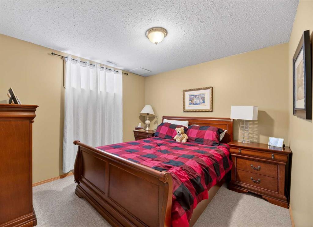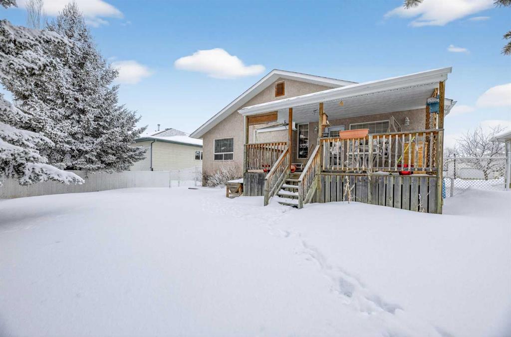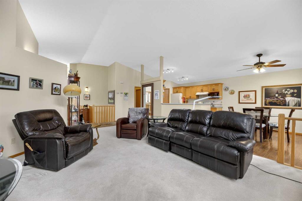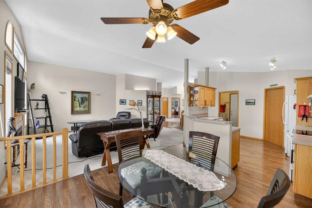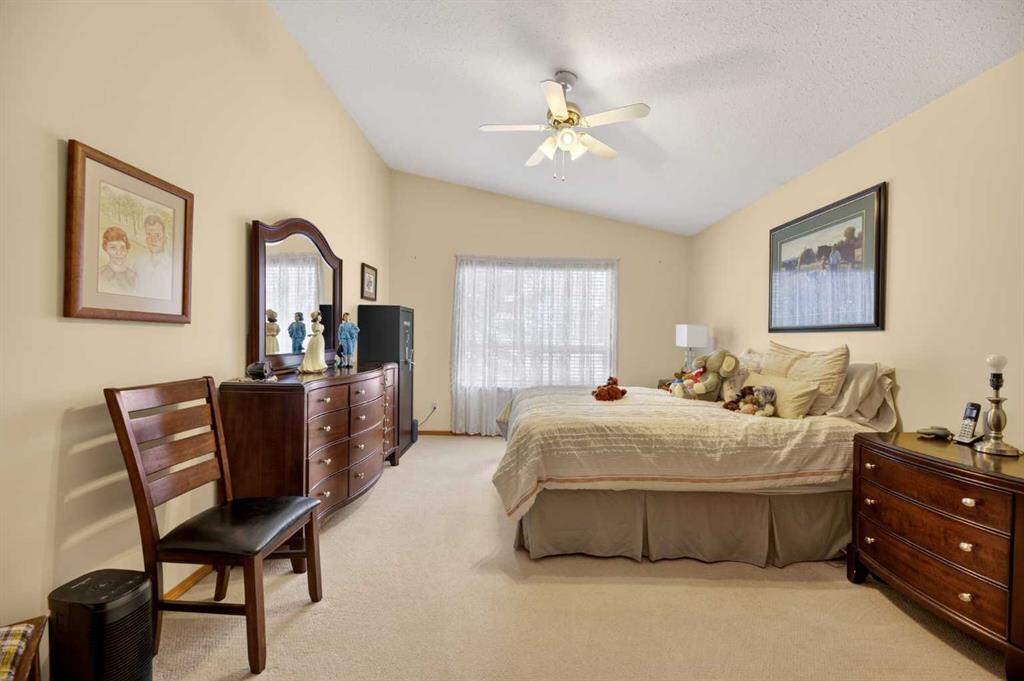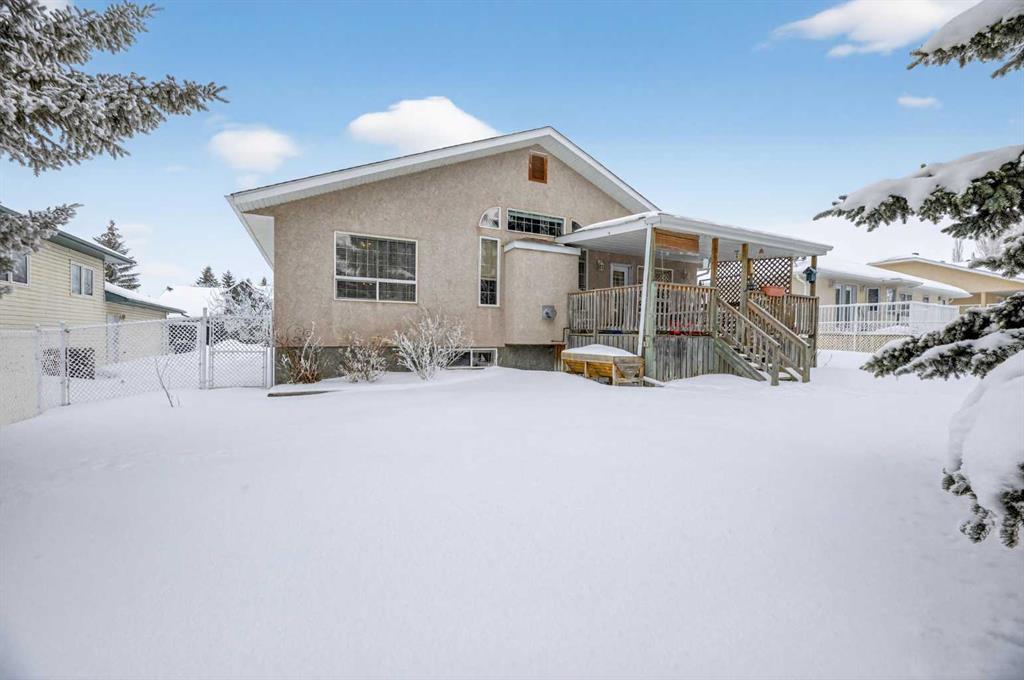 Discover exceptional design and comfort in this spacious 4-bedroom, 3-bath bungalow, thoughtfully crafted to accommodate both main-floor living for a senior-minded buyer and an expansive open layout ideal for a mature family or empty-nesters who love to entertain. The main level features a stunning great-room concept highlighted by vaulted ceilings that span the foyer, living, dining, and kitchen areas, creating a bright and cohesive flow throughout. A gas fireplace anchors the living room, while a second freestanding gas fireplace in the lower-level family room adds warmth and charm. On those warm summer days, the property also boasts Central A/C to cool you down. Two bedrooms (one currently being used as an office) are located on the main floor, including a generous primary bedroom complete with a 4-piece ensuite and walk-in closet. Additional conveniences include a main-floor laundry room with direct access to the heated double-attached garage. The fully developed basement offers impressive versatility with 9-foot ceilings, a wide open staircase, a spacious family/recreation room perfect for a pool table or games area, two additional bedrooms, and a 3-piece bathroom. Outside, the property showcases a meticulous landscaping and the security of a fully fenced yard. A garden shed provides extra storage, while the expansive 12' x 17' covered southwest-facing deck offers the perfect setting to enjoy evening sunsets and serene views over the yard. With a beautifully maintained interior living space, this home presents impeccable design, exceptional care, and a layout that truly stands out. Ideally located near Winter Lake, walking trails, and schools, it is surrounded by a picturesque neighborhood and positioned close to shopping, dining, entertainment, essential services, and healthcare options. An outstanding property that must be seen to fully appreciate its quality and presence.