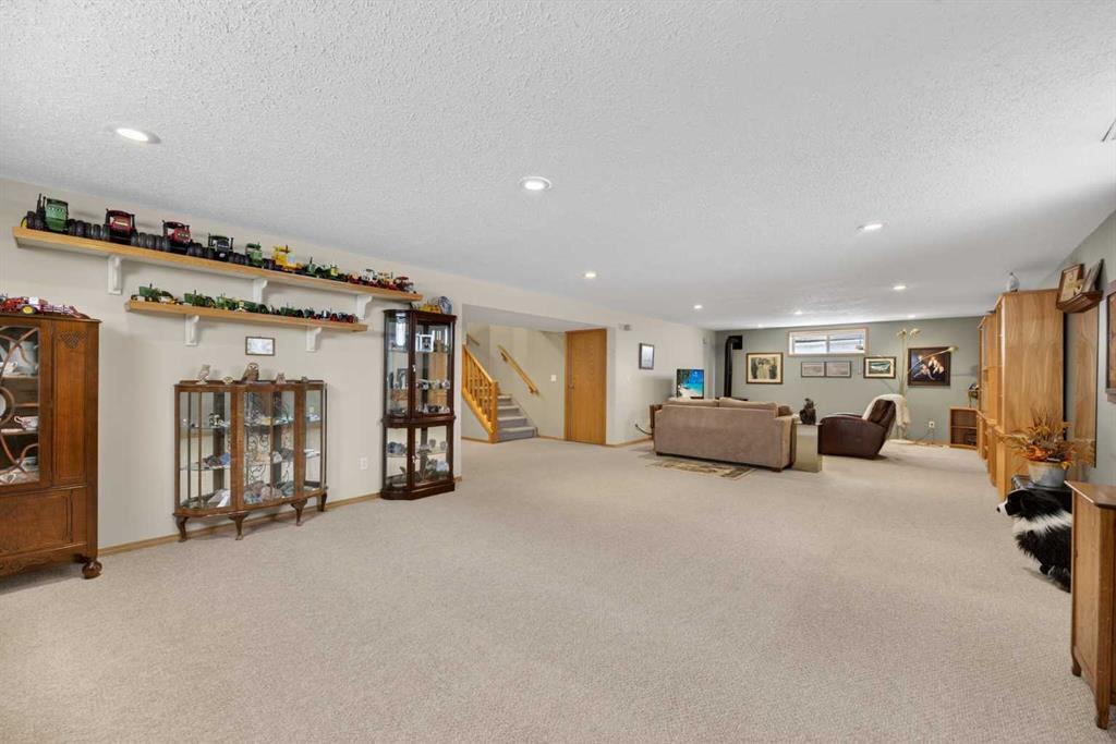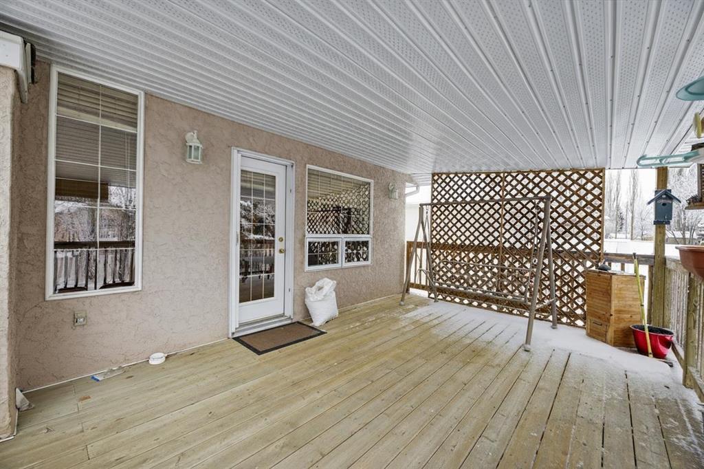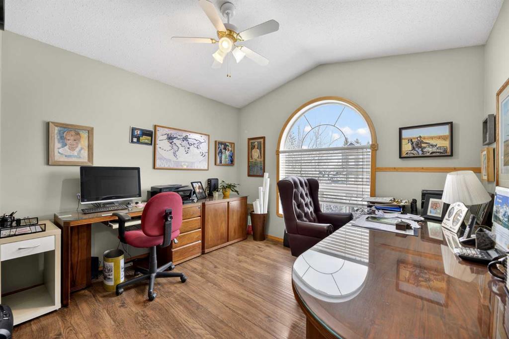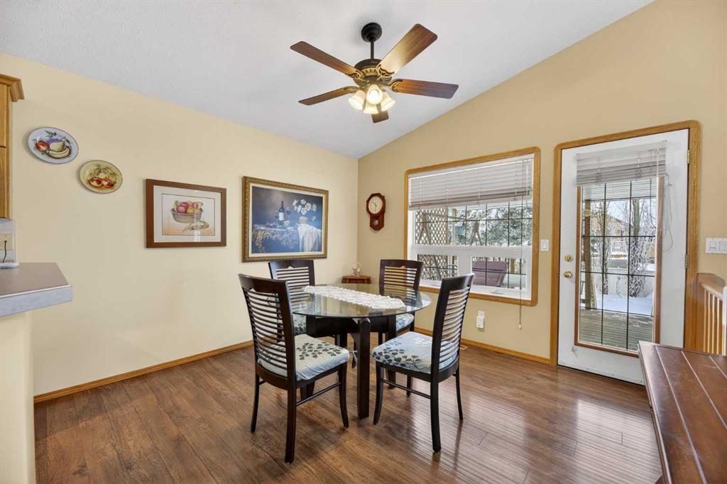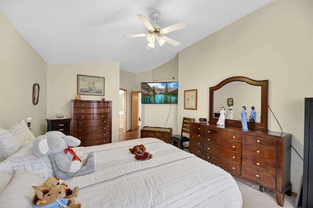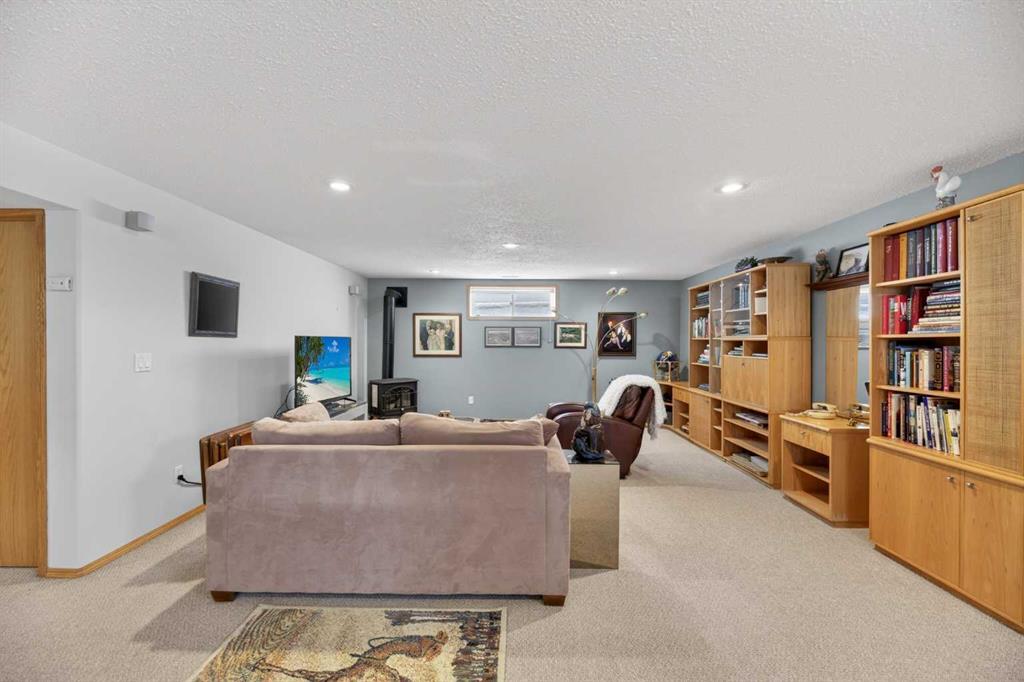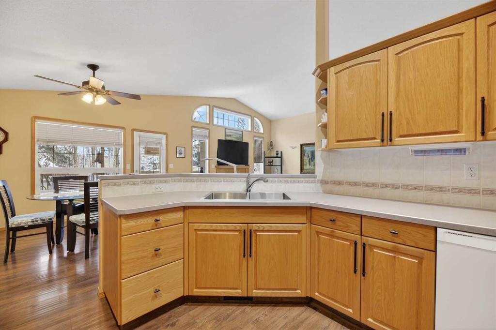 Discover exceptional design and comfort in this spacious 4-bedroom, 3-bath bungalow, thoughtfully crafted to accommodate both main-floor living for a senior-minded buyer and an expansive open layout ideal for a mature family or empty-nesters who love to entertain. The main level features a stunning great-room concept highlighted by vaulted ceilings that span the foyer, living, dining, and kitchen areas, creating a bright and cohesive flow throughout. A gas fireplace anchors the living room, while a second freestanding gas fireplace in the lower-level family room adds warmth and charm. On those warm summer days, the property also boasts Central A/C to cool you down. Two bedrooms (one currently being used as an office) are located on the main floor, including a generous primary bedroom complete with a 4-piece ensuite and walk-in closet. Additional conveniences include a main-floor laundry room with direct access to the heated double-attached garage. The fully developed basement offers impressive versatility with 9-foot ceilings, a wide open staircase, a spacious family/recreation room perfect for a pool table or games area, two additional bedrooms, and a 3-piece bathroom. Outside, the property showcases a meticulous landscaping and the security of a fully fenced yard. A garden shed provides extra storage, while the expansive 12' x 17' covered southwest-facing deck offers the perfect setting to enjoy evening sunsets and serene views over the yard. With a beautifully maintained interior living space, this home presents impeccable design, exceptional care, and a layout that truly stands out. Ideally located near Winter Lake, walking trails, and schools, it is surrounded by a picturesque neighborhood and positioned close to shopping, dining, entertainment, essential services, and healthcare options. An outstanding property that must be seen to fully appreciate its quality and presence.