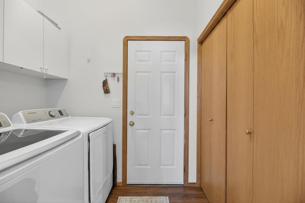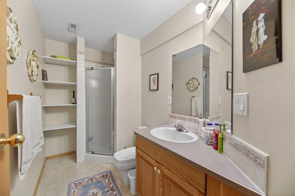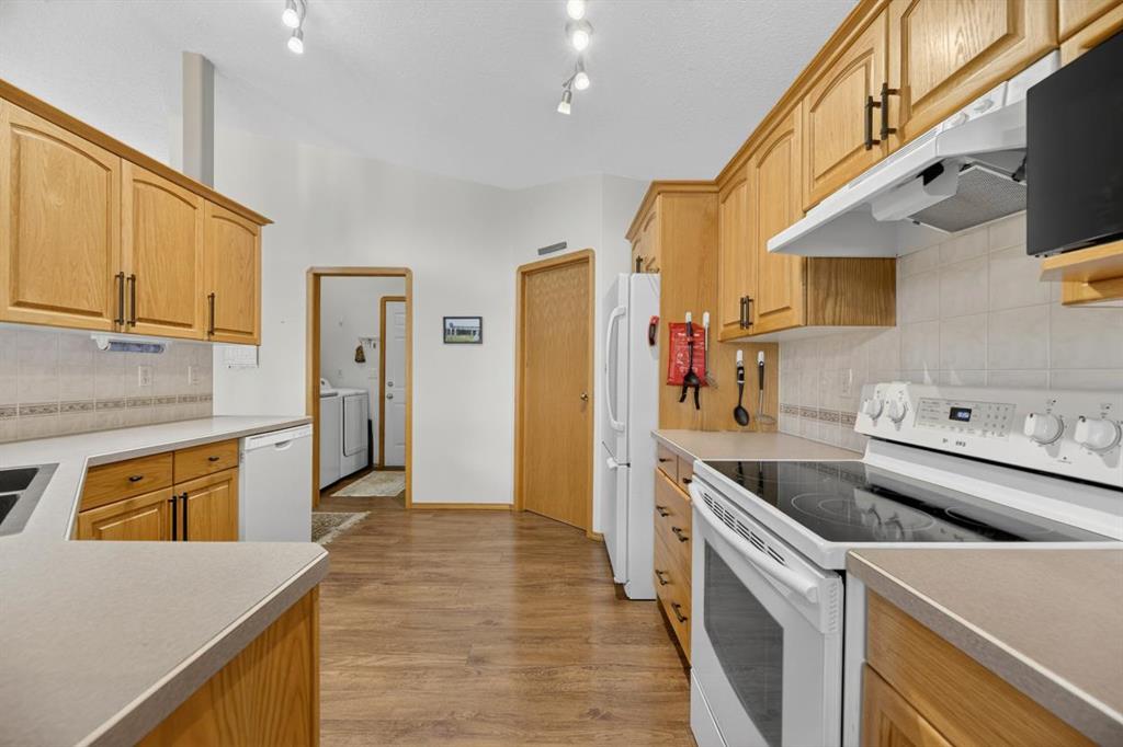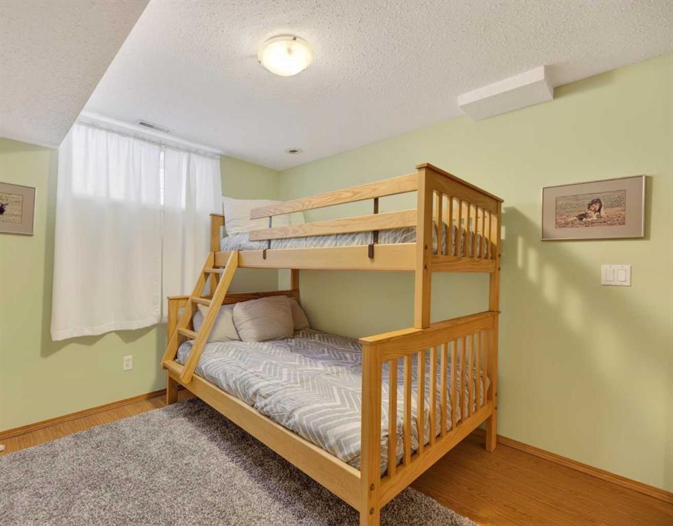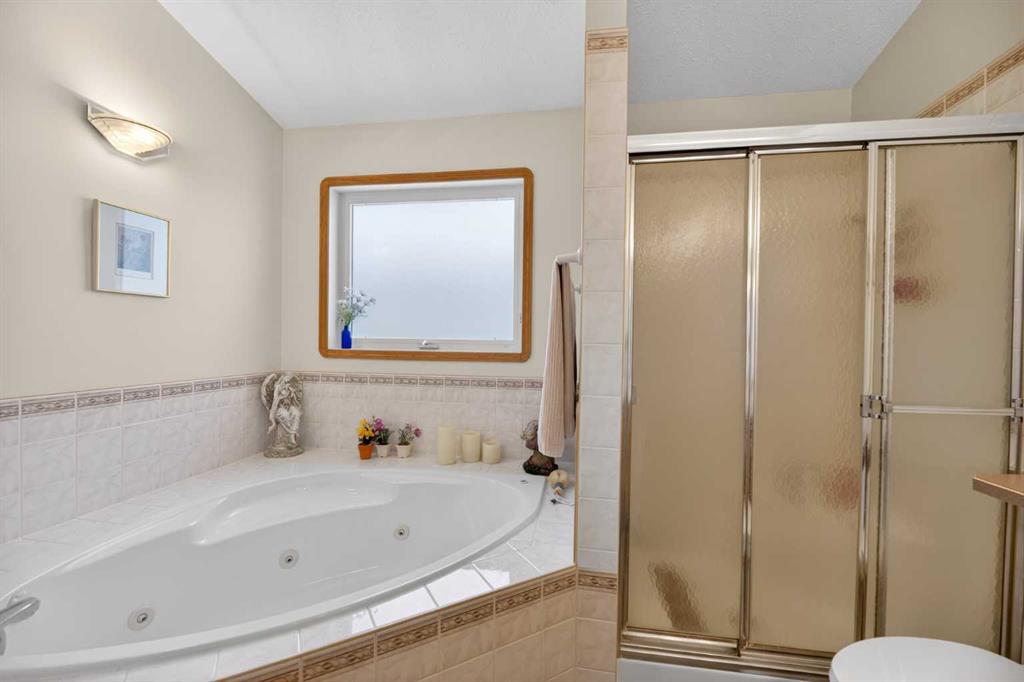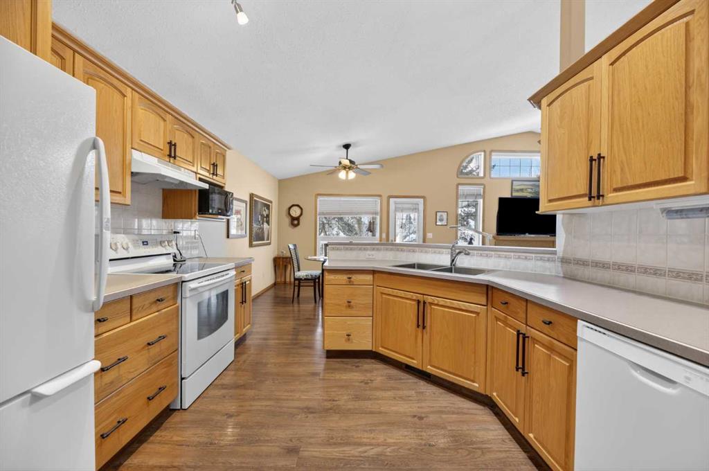 Discover exceptional design and comfort in this spacious 4-bedroom, 3-bath bungalow, thoughtfully crafted to accommodate both main-floor living for a senior-minded buyer and an expansive open layout ideal for a mature family or empty-nesters who love to entertain. The main level features a stunning great-room concept highlighted by vaulted ceilings that span the foyer, living, dining, and kitchen areas, creating a bright and cohesive flow throughout. A gas fireplace anchors the living room, while a second freestanding gas fireplace in the lower-level family room adds warmth and charm. On those warm summer days, the property also boasts Central A/C to cool you down. Two bedrooms (one currently being used as an office) are located on the main floor, including a generous primary bedroom complete with a 4-piece ensuite and walk-in closet. Additional conveniences include a main-floor laundry room with direct access to the heated double-attached garage. The fully developed basement offers impressive versatility with 9-foot ceilings, a wide open staircase, a spacious family/recreation room perfect for a pool table or games area, two additional bedrooms, and a 3-piece bathroom. Outside, the property showcases a meticulous landscaping and the security of a fully fenced yard. A garden shed provides extra storage, while the expansive 12' x 17' covered southwest-facing deck offers the perfect setting to enjoy evening sunsets and serene views over the yard. With a beautifully maintained interior living space, this home presents impeccable design, exceptional care, and a layout that truly stands out. Ideally located near Winter Lake, walking trails, and schools, it is surrounded by a picturesque neighborhood and positioned close to shopping, dining, entertainment, essential services, and healthcare options. An outstanding property that must be seen to fully appreciate its quality and presence.