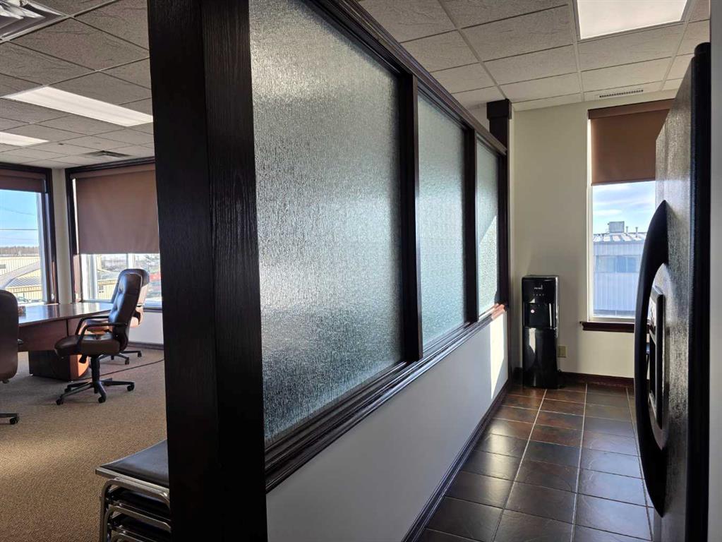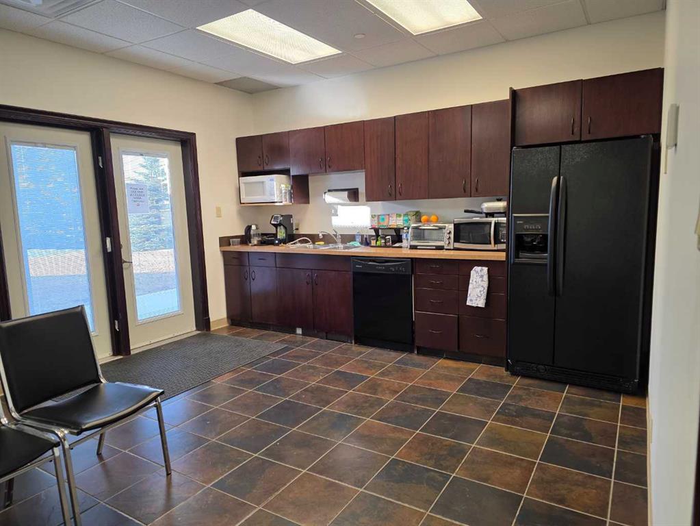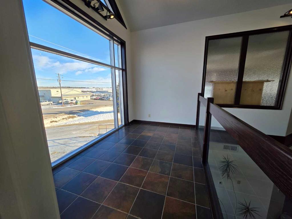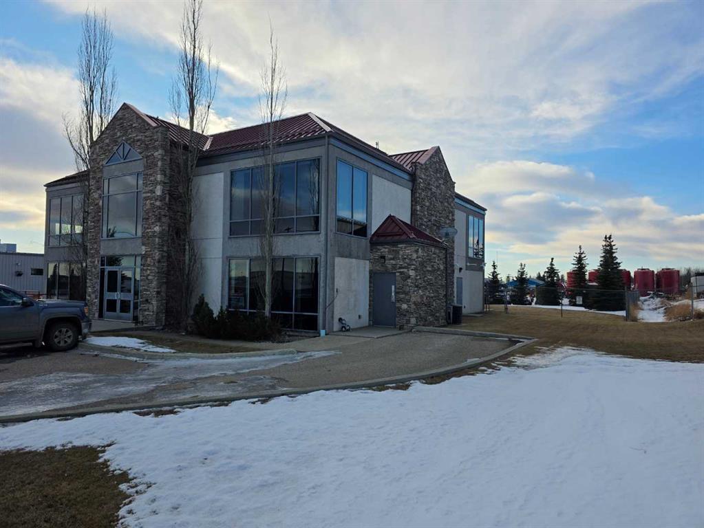 This striking two-story office complex boasts a functional full basement and a heated garage with three bays. The main floor features a welcoming reception area that is surrounded by 9 offices, a lunchroom with a kitchenette with access to patio, storage room, mens and womens washrooms. Upstairs, you'll find a boardroom equipped with a kitchenette, more offices, storage room, mens and womens washrooms. The offices on the upper level include two executive offices and a room with vaulted ceiling that all offer access to a balcony. The basement is designed for functionality, featuring a spacious crew meeting room with a kitchenette, an exercise area, restrooms with showers, a large fireproof vault, a mechanical room, and ample storage space. The heated garage is conveniently accessible from within the building, and there is paved parking available. Ideally situated in Brazeau County, on the western edge of Drayton Valley, the property is close to all local amenities. The back portion of the lot serves as an open, unserviced fenced storage area that has been rented separately from the office and is currently on a month-to-month agreement without a written contract. . The office has a leasing potential of $25,000 triple net per month, and the seller is open to considering lease offers