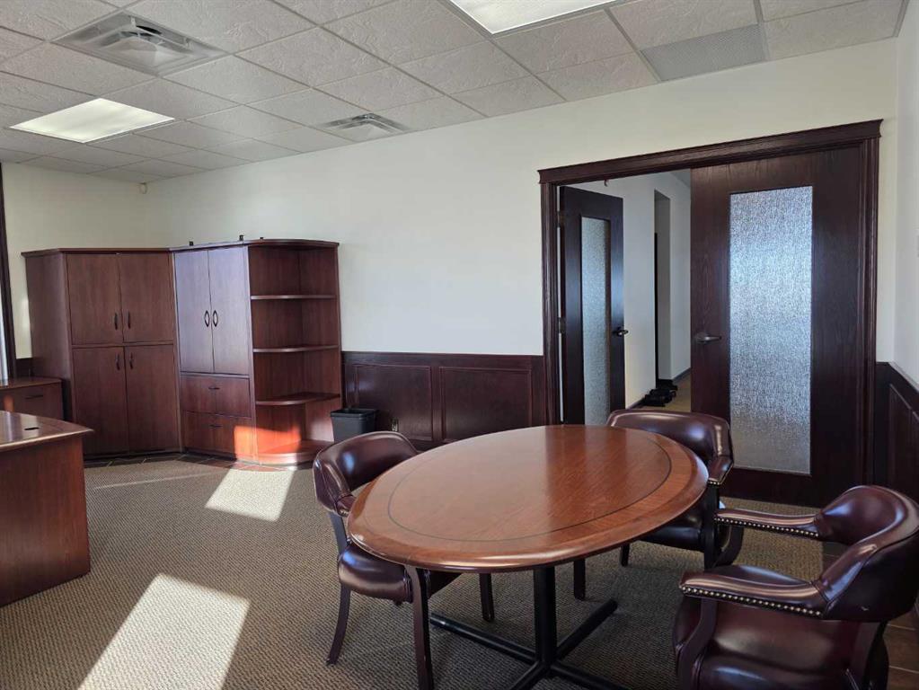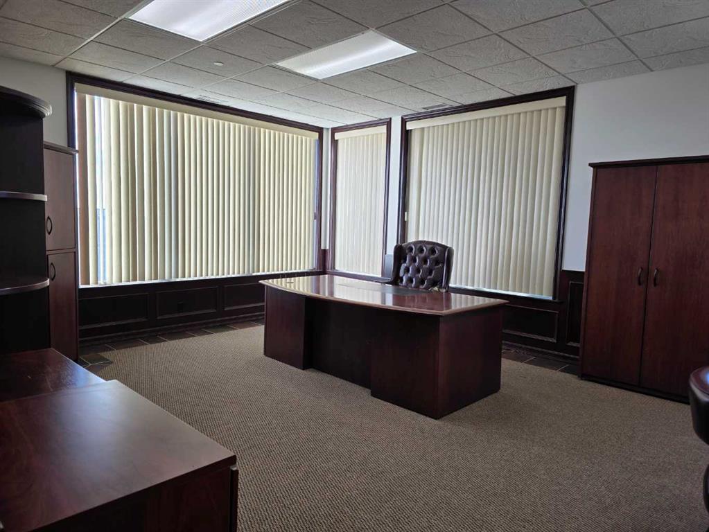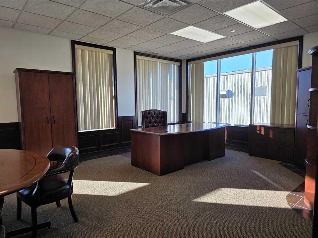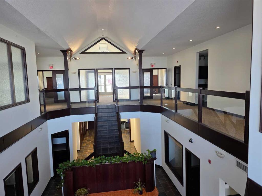 This striking two-story office complex boasts a functional full basement and a heated garage with three bays. The main floor features a welcoming reception area that is surrounded by 9 offices, a lunchroom with a kitchenette with access to patio, storage room, mens and womens washrooms. Upstairs, you'll find a boardroom equipped with a kitchenette, more offices, storage room, mens and womens washrooms. The offices on the upper level include two executive offices and a room with vaulted ceiling that all offer access to a balcony. The basement is designed for functionality, featuring a spacious crew meeting room with a kitchenette, an exercise area, restrooms with showers, a large fireproof vault, a mechanical room, and ample storage space. The heated garage is conveniently accessible from within the building, and there is paved parking available. Ideally situated in Brazeau County, on the western edge of Drayton Valley, the property is close to all local amenities. The back portion of the lot serves as an open, unserviced fenced storage area that has been rented separately from the office and is currently on a month-to-month agreement without a written contract. . The office has a leasing potential of $25,000 triple net per month, and the seller is open to considering lease offers