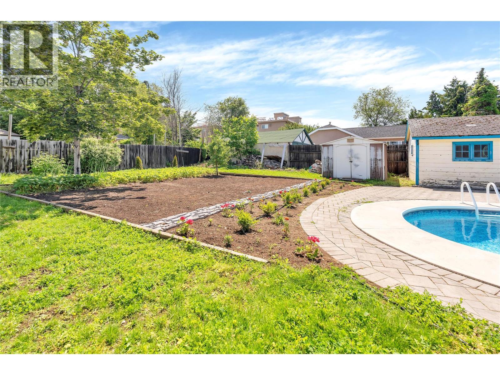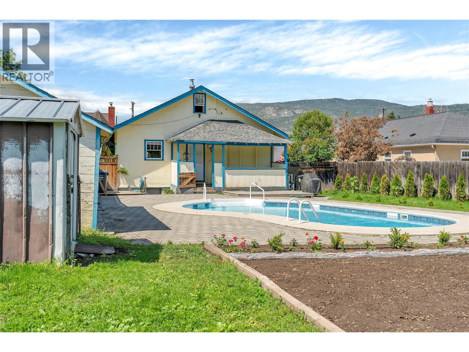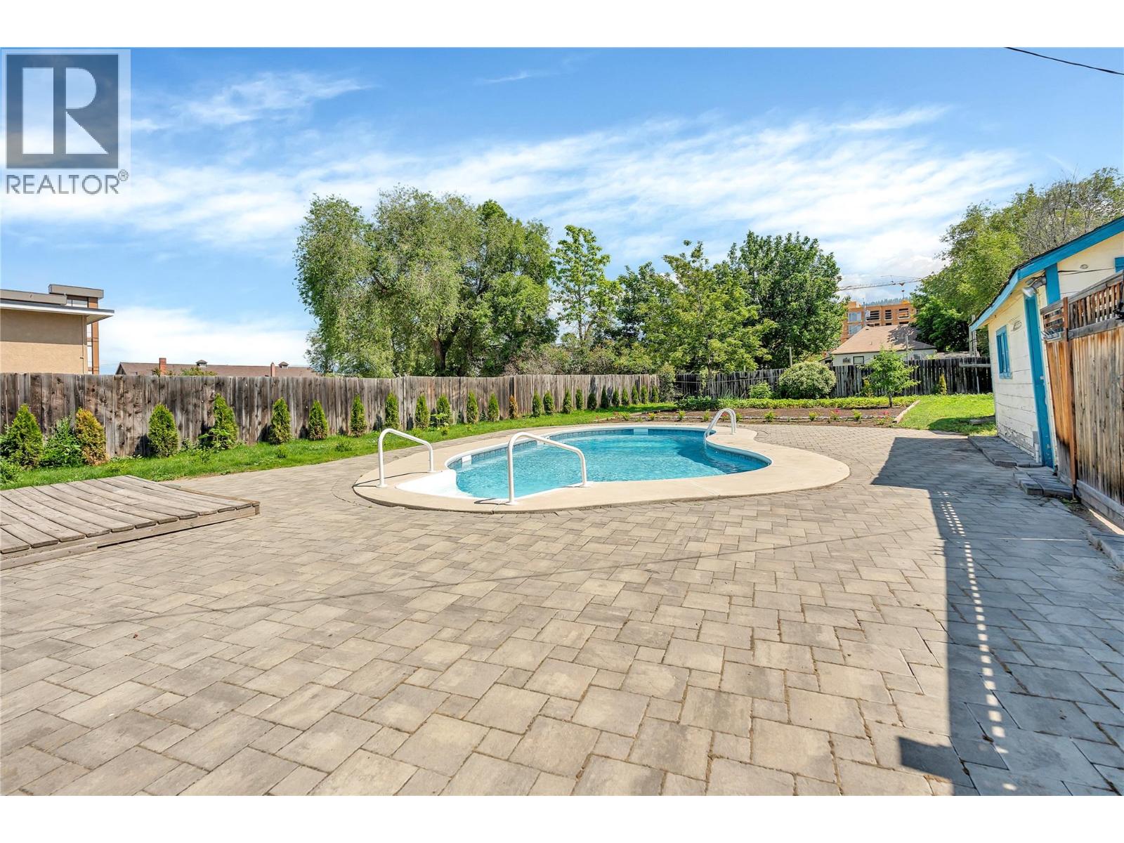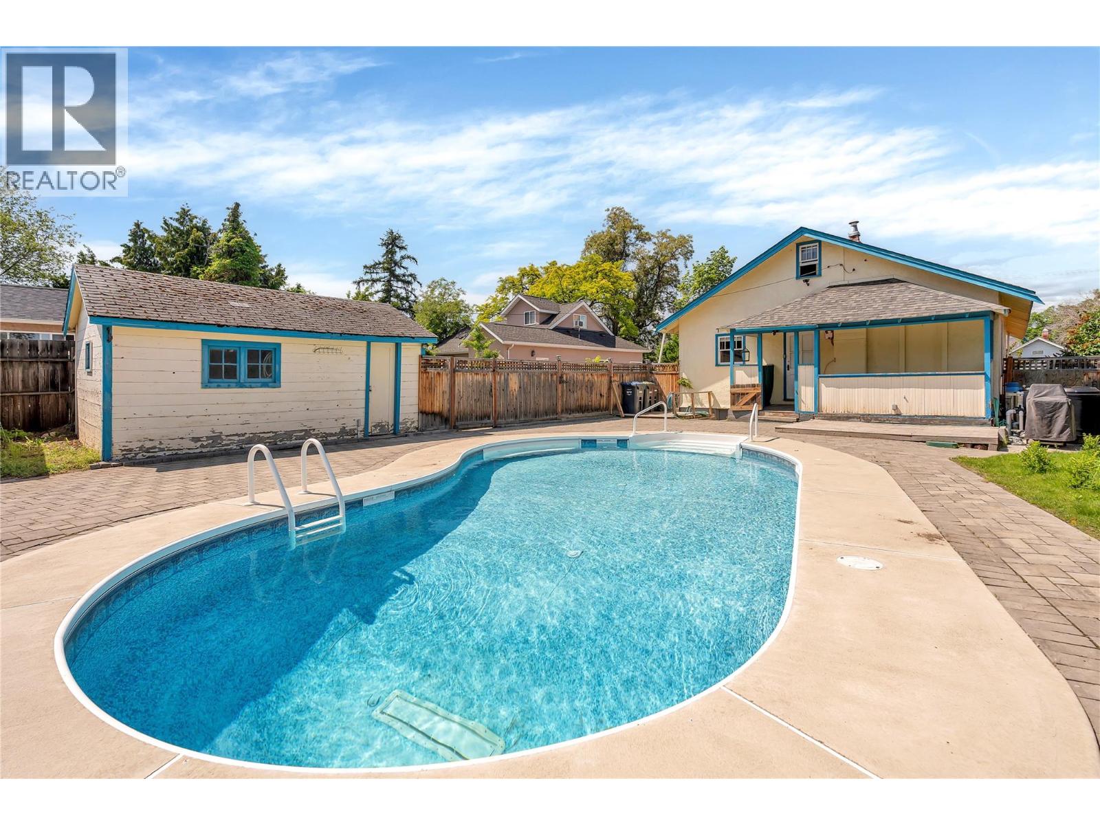 INCOME PROPERTY? DEVELOPER? FIRST-TIME HOME BUYER? Whether you are looking for an investment property to rent out, are a developer looking to maximize this property's zoning for multi-unit residential on the 1/4 acre lot, or you are a first time home buyer looking for something affordable to get into the market, this is a must-see! In the heart of town, close to schools, transit, entertainment, and shopping, opportunity is everywhere. With two spacious bedrooms, a full four-piece bathroom, a large living room and separate dining room, as well as a front foyer, this home has plenty of space to enjoy with the benefit of main floor living. The large updated kitchen features all stainless appliances, new flooring and countertops, and plenty of cupboard space. Updates also include the furnace, hot water tank, and all electrical! From the window of the large kitchen, enjoy the view to the outdoor oasis where a gorgeous pool makes this property stand out from all the others! The massive backyard provides space for entertaining or enjoying with family, maximizing everything that says Okanagan Summer with plenty of space left over for a vegetable or flower garden! Beautiful character features like coved ceilings and wood floors complete this home that offers full attic and a spacious basement currently used as the laundry room and workshop. Contact your Realtor® or the listing agent today for your private viewing. Buyer to confirm all measurements. Some photos visually altered.