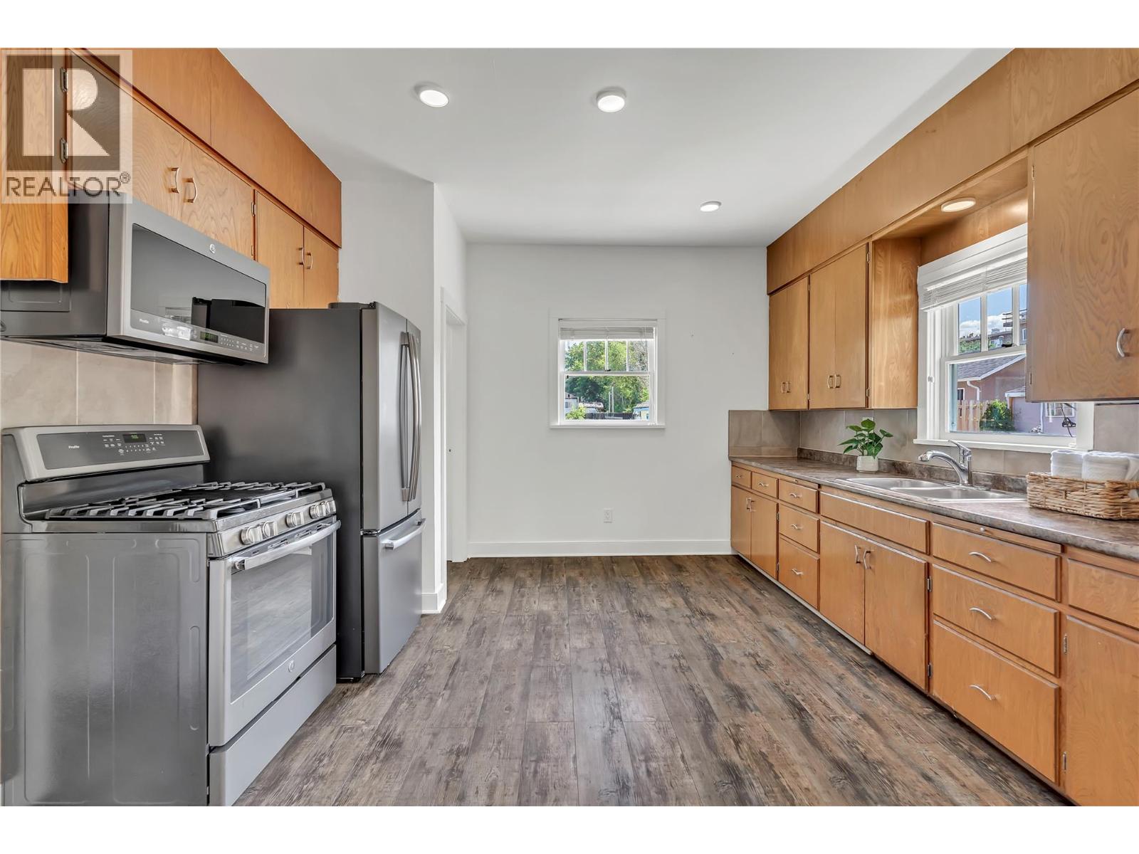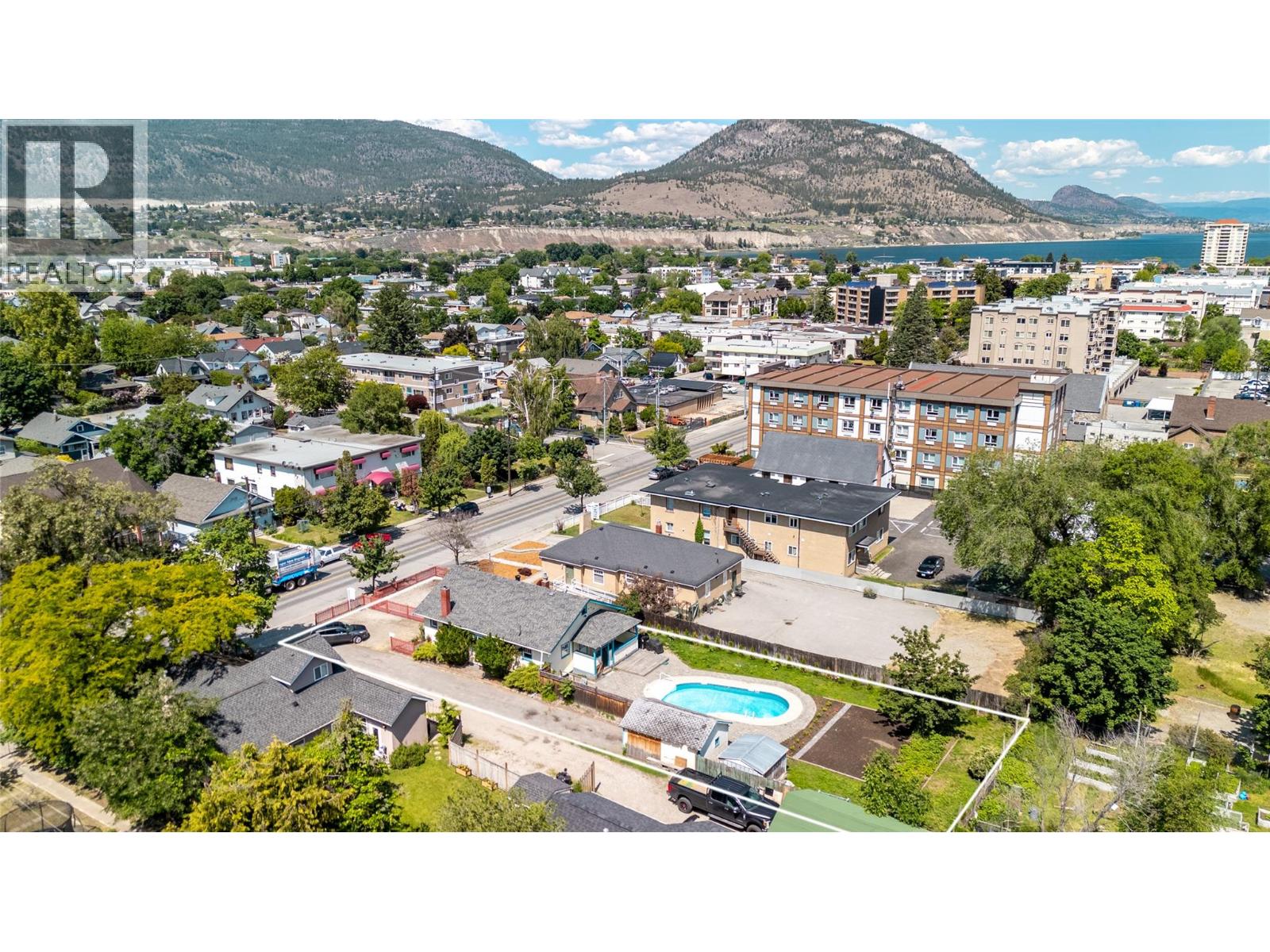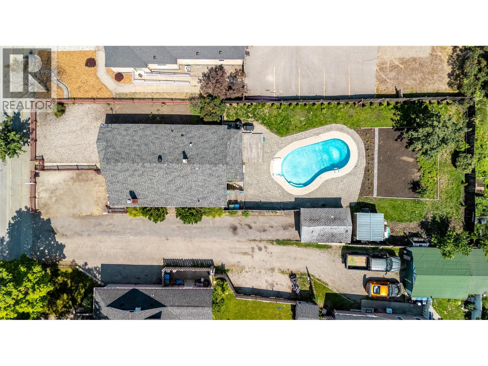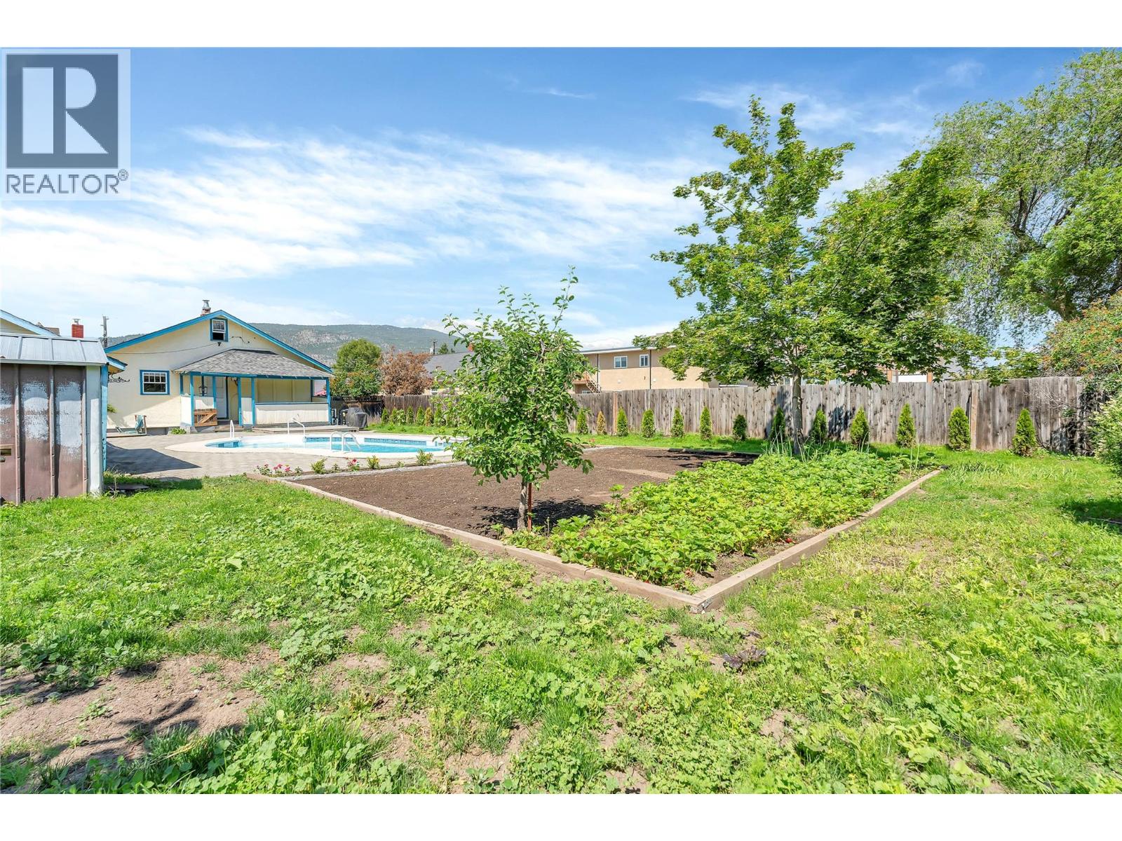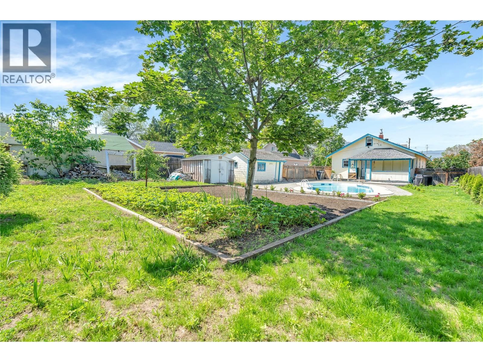 INCOME PROPERTY? DEVELOPER? FIRST-TIME HOME BUYER? Whether you are looking for an investment property to rent out, are a developer looking to maximize this property's zoning for multi-unit residential on the 1/4 acre lot, or you are a first time home buyer looking for something affordable to get into the market, this is a must-see! In the heart of town, close to schools, transit, entertainment, and shopping, opportunity is everywhere. With two spacious bedrooms, a full four-piece bathroom, a large living room and separate dining room, as well as a front foyer, this home has plenty of space to enjoy with the benefit of main floor living. The large updated kitchen features all stainless appliances, new flooring and countertops, and plenty of cupboard space. Updates also include the furnace, hot water tank, and all electrical! From the window of the large kitchen, enjoy the view to the outdoor oasis where a gorgeous pool makes this property stand out from all the others! The massive backyard provides space for entertaining or enjoying with family, maximizing everything that says Okanagan Summer with plenty of space left over for a vegetable or flower garden! Beautiful character features like coved ceilings and wood floors complete this home that offers full attic and a spacious basement currently used as the laundry room and workshop. Contact your Realtor® or the listing agent today for your private viewing. Buyer to confirm all measurements. Some photos visually altered.