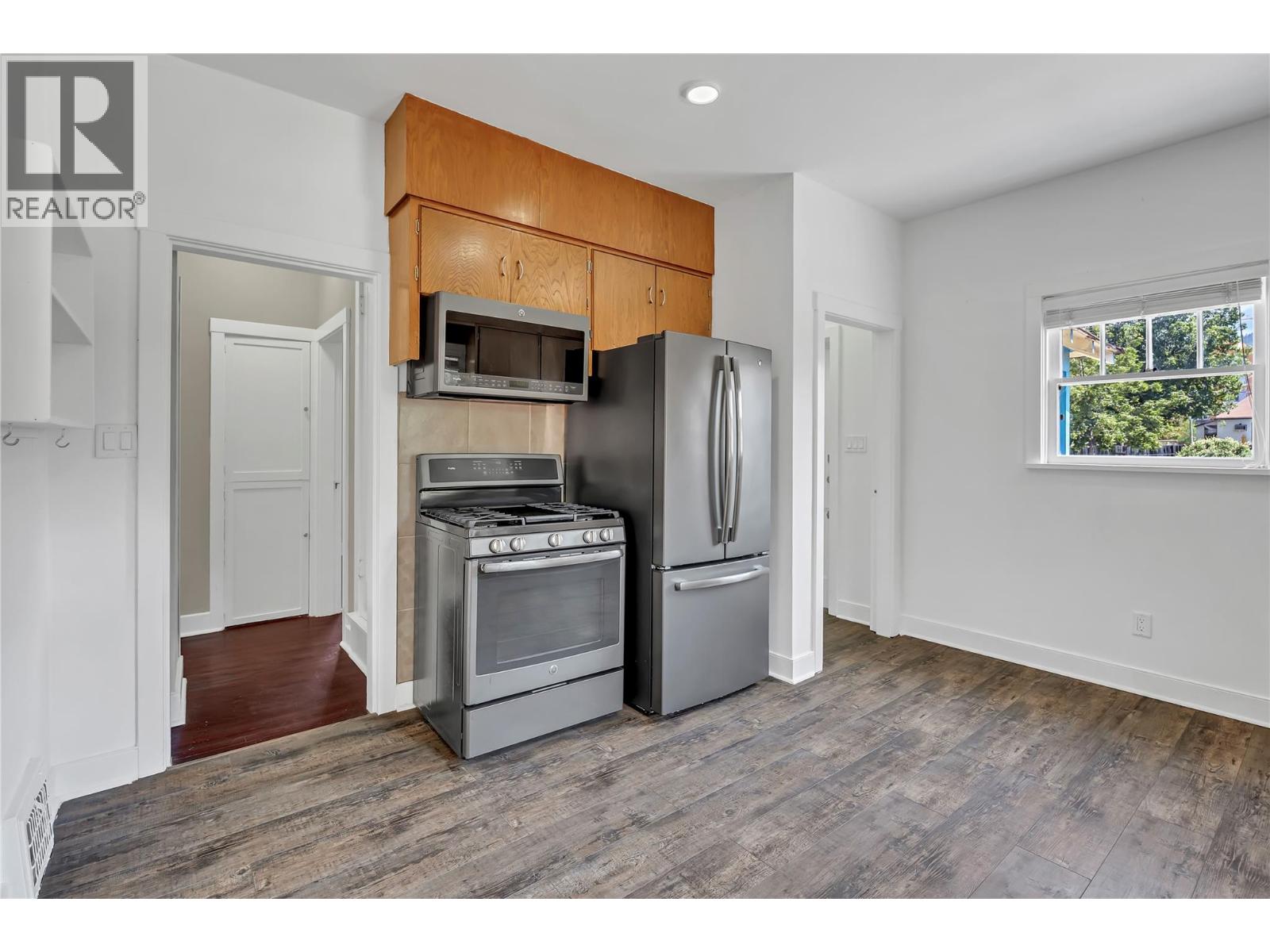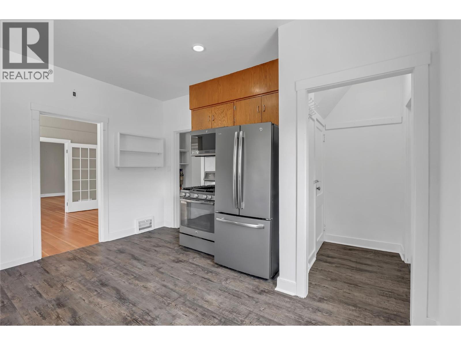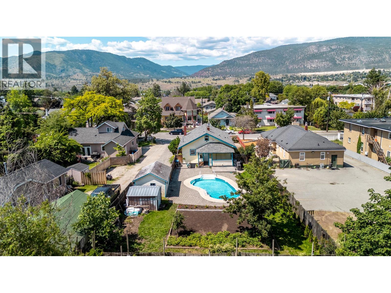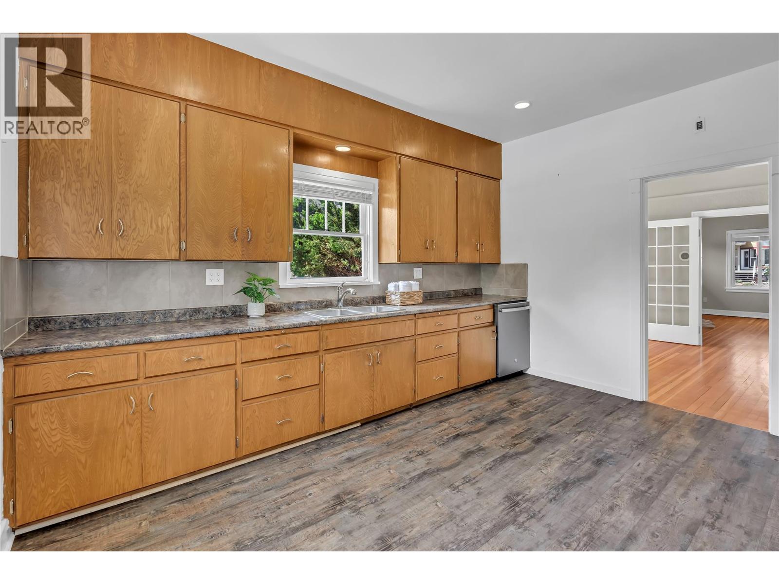INCOME PROPERTY? DEVELOPER? FIRST-TIME HOME BUYER? Whether you are looking for an investment property to rent out, are a developer looking to maximize this property's zoning for multi-unit residential on the 1/4 acre lot, or you are a first time home buyer looking for something affordable to get into the market, this is a must-see! In the heart of town, close to schools, transit, entertainment, and shopping, opportunity is everywhere. With two spacious bedrooms, a full four-piece bathroom, a large living room and separate dining room, as well as a front foyer, this home has plenty of space to enjoy with the benefit of main floor living. The large updated kitchen features all stainless appliances, new flooring and countertops, and plenty of cupboard space. Updates also include the furnace, hot water tank, and all electrical! From the window of the large kitchen, enjoy the view to the outdoor oasis where a gorgeous pool makes this property stand out from all the others! The massive backyard provides space for entertaining or enjoying with family, maximizing everything that says Okanagan Summer with plenty of space left over for a vegetable or flower garden! Beautiful character features like coved ceilings and wood floors complete this home that offers full attic and a spacious basement currently used as the laundry room and workshop. Contact your Realtor® or the listing agent today for your private viewing. Buyer to confirm all measurements. Some photos visually altered.
