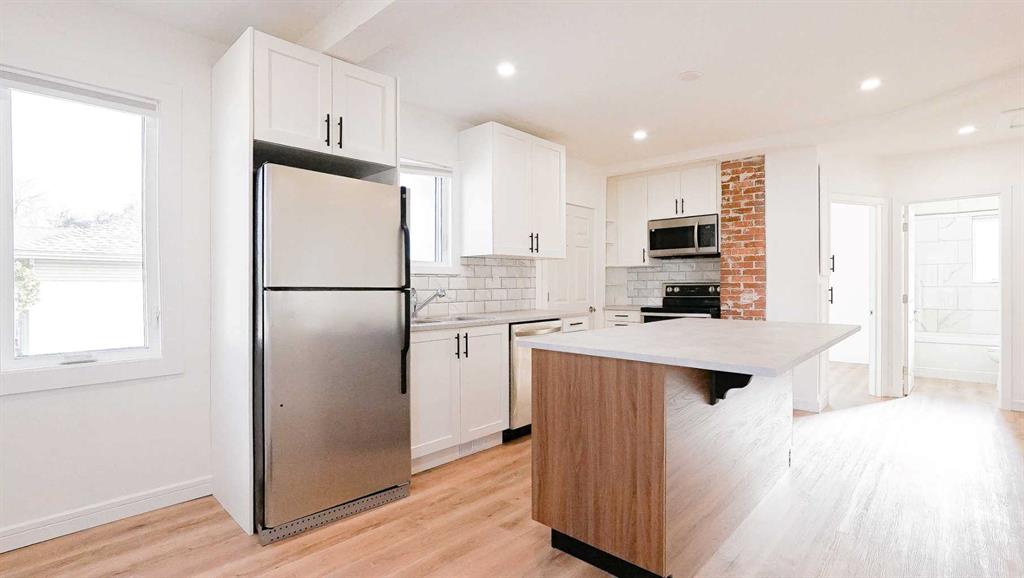 Welcome to this beautifully reimagined bungalow in the heart of Riverside, offering a seamless blend of modern comfort and classic charm. Set on a spacious lot with plenty of room to add a future garage, this home has been thoughtfully updated inside and out to provide peace of mind and stylish living. Step through the charming front porch into an inviting open layout featuring a bright kitchen with a large sit up island, full appliance package, and an easy flow into the living area. The main floor offers two comfortable bedrooms and a refreshed 4 piece bathroom. The fully developed lower level adds impressive living space, with two additional bedrooms, a 3-piece bath featuring a tiled shower, a laundry area with washer and dryer, and a cozy family room for relaxing or entertaining. Extensive updates include a metal roof, all new windows on the main floor, updated insulation throughout (including blown-in attic insulation), new electrical and plumbing systems, upgraded 100 amp service, new furnace, A/C, and hot water tank. The yard has been professionally graded for proper drainage and is fully fenced with plenty of outdoor space to enjoy. Perfect for first time buyers, investors, or anyone who appreciates a move-in ready home with modern updates in a mature, central location. Please note: some photos have been digitally staged to help showcase the home’s layout and potential.