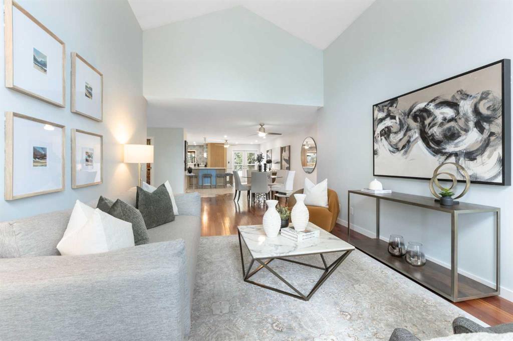 Welcome to this rare executive bungalow in the prestigious community of Diamond Cove, offering nearly 4,000 sq. ft. of exquisitely finished living space on a ¼-acre lot, just steps from the Bow River and its scenic pathways. Nestled on a private, treed property, the backyard feels like a true retreat—mature landscaping, serene outdoor living areas, and endless space to relax, entertain, or simply enjoy nature. Inside, the primary suite is a showstopper, designed as a luxurious escape with a spa-inspired ensuite, soaker tub, and a generous walk-in closet. The main floor continues to impress with two additional bedrooms, a full bath, a powder room, a spacious laundry area, and a sun-filled open-concept living and dining space. The chef’s kitchen stands at the heart of the home, featuring premium appliances, custom cabinetry, and an oversized island ideal for hosting or everyday family life. The fully developed lower level extends your living options with two more bedrooms, another full bath, a massive recreation room, and abundant storage. Completing this one-of-a-kind property is a double attached garage and an oversized driveway. Blending elegance, comfort, and functionality in one of Calgary’s most exclusive riverside neighborhoods, this home is an opportunity not to be missed.