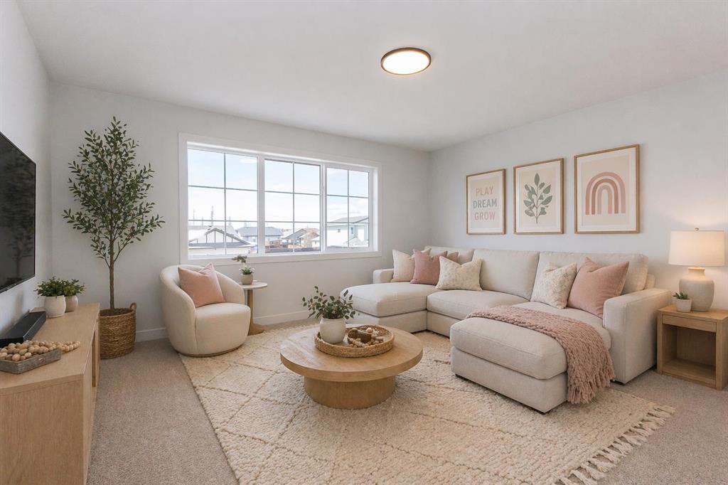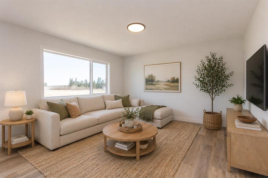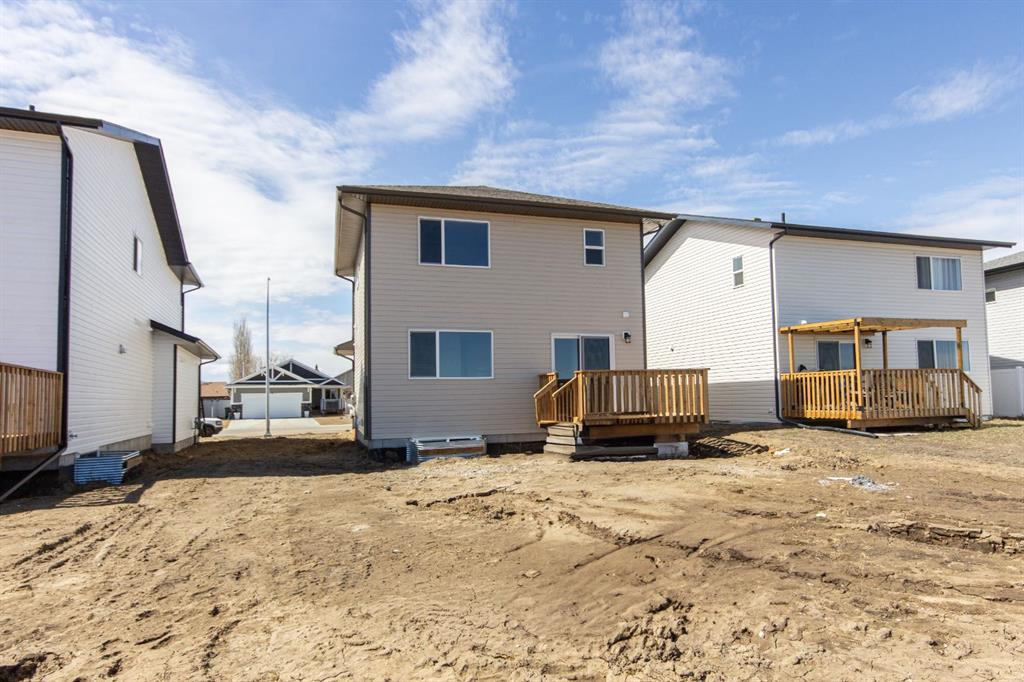 Be the first owner of this brand new Laebon home in beautiful Meadowlark Estates! Situated only steps from a playground reserve and a huge park, and within walking distance to the high school, this home is the perfect place for a growing family. Offering 1707 square feet, this best selling 2 storey floorplan offers a wide open main floor layout, an attached double garage with floor sump, and a large second floor bonus room. The kitchen is well appointed with raised two tone cabinetry, stainless steel appliances, quartz countertops, a large island with eating bar, and a large walk in pantry. The living area is spacious and bright, and the adjacent dining area offers access to the back deck through large sliding patio doors. Upstairs you'll find a spacious primary bedroom with a large walk-in closet and your own private 4 pce ensuite, while two additional bedrooms share a 4 pce bathroom, and you'll appreciate the convenience of upper floor laundry. You'll love ending your day in the huge bonus room, which makes the perfect space for family movie nights or a relaxing space to wind down. The attached garage is insulated, drywalled, and taped and has a floor sump to keep your floors dry in winter. If you need more space, the builder can complete the basement development for you, and allowances can also be provided for a washer and dryer to make this a completely move in ready package. Poured concrete front driveway, front sod, and rear topsoil to grade are included in the price and will be completed as weather permits. 1 year builder warranty and 10 year Alberta New Home Warranty are included. Taxes have yet to be assessed. Immediate possession is available!