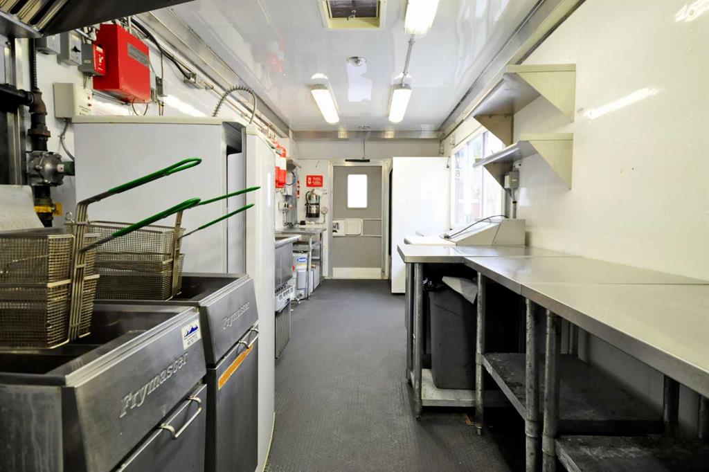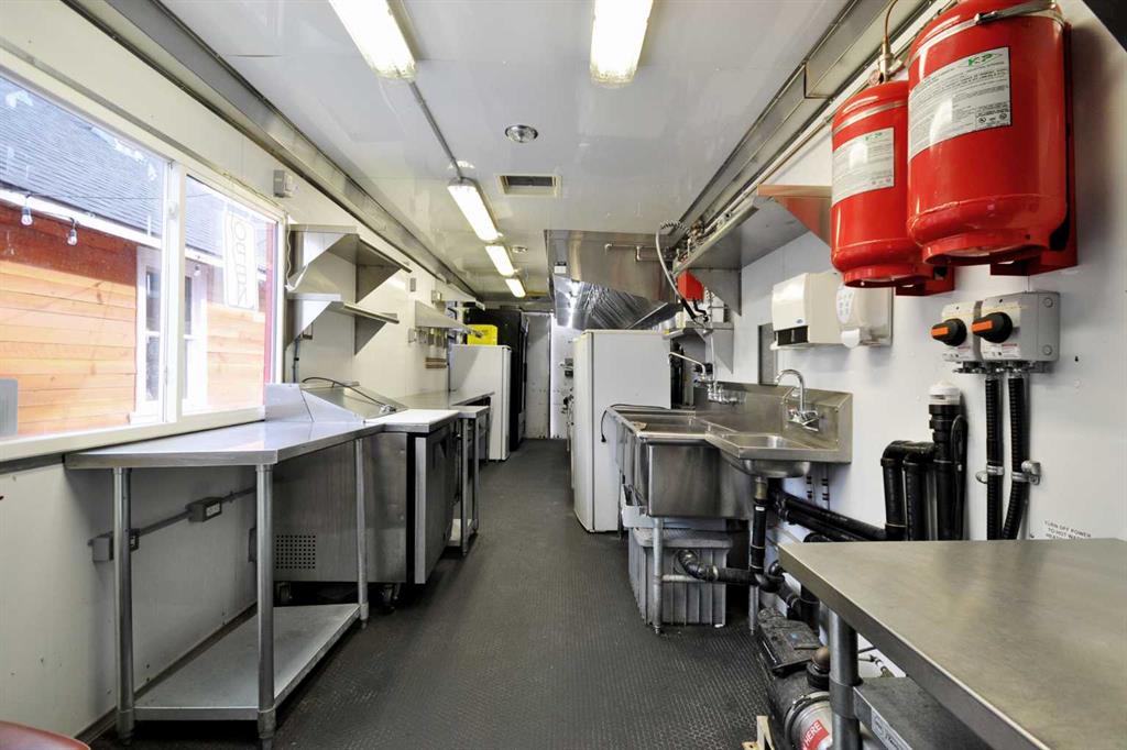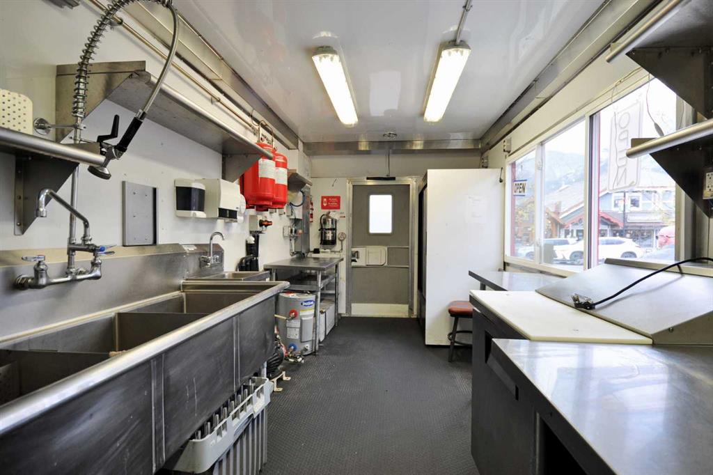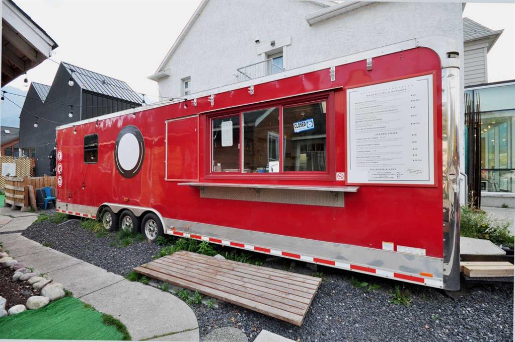 Food truck + yard venue on Main Street Canmore - this offering is for an assignment of leasehold interest and business assets which includes a 32-ft 2014 food truck trailer (converted 2017), yard improvements, and sub-tenant agreement(s). The truck features an amazing, fully loaded commercial kitchen, complete with 8-ft hood, a flat-top grill with oven below, two large gas burners, a six-burner grated grill, two deep fryers with four baskets, plus ample refrigeration, prep, storage, and working space to support a variety of culinary delights and/or artists. Situated on a 6,587sf lot, the outdoor yard is tucked behind the original 915sf, 1910 cabin with both front street and back alley access; set for gathering, dining, and events with two commercial pergolas, a stage, and multiple seating areas. The yard offers a seasonal multi-pad layout for the food truck, one existing sea can sub-tenant (confirmed and wanting to stay), and (un-tenanted) second sea can operating as a licensed bar could be included. The original 1910 cabin is currently zoned for Retail use under the Town Centre land use zoning and provides three new washrooms with access ramp, and yard access. Absolute net lease at $3,220/mo; property taxes approx. $1,000/mo. Leasehold to Dec 31, 2028; assignment subject to landlord approval. Price may be subject to GST.