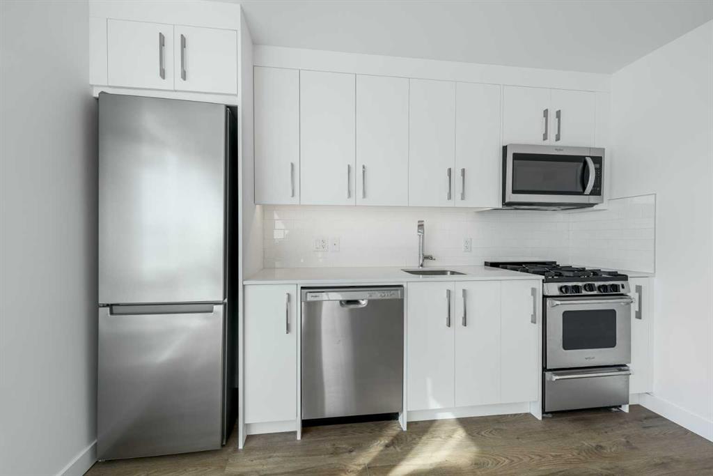 Step into modern urban living at Frontier, Truman’s latest boutique condo development located in the heart of Kensington—one of Calgary’s most walkable and culturally rich neighborhoods. This brand-new 1-Bedroom, 1-Bathroom condo offers a refined blend of style, comfort, and smart design, perfect for professionals, first-time buyers, or investors looking to be in the center of it all. The open-concept layout is filled with natural light and features a sleek kitchen complete with quartz countertops, premium stainless steel appliances, and full-height cabinetry, flowing seamlessly into the bright living space. The spacious bedroom offers a private retreat, while the beautifully finished bathroom includes modern fixtures and thoughtful detailing. This home also includes a titled underground parking stall, offering convenience and peace of mind year-round. Residents at Frontier enjoy access to a landscaped terrace, a state-of-the-art fitness center, and stylish co-working areas —all within a well-managed, design-forward building. With boutique shops, popular cafés, acclaimed restaurants, scenic river pathways, and the downtown core just minutes away, this is inner-city living at its finest.