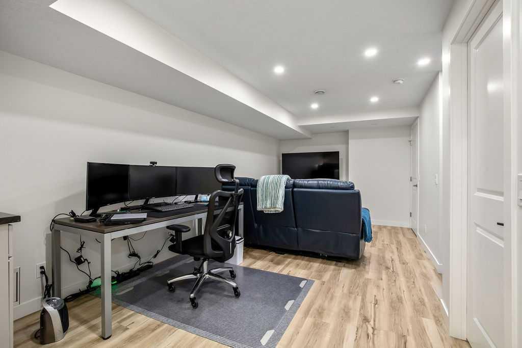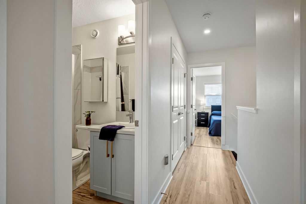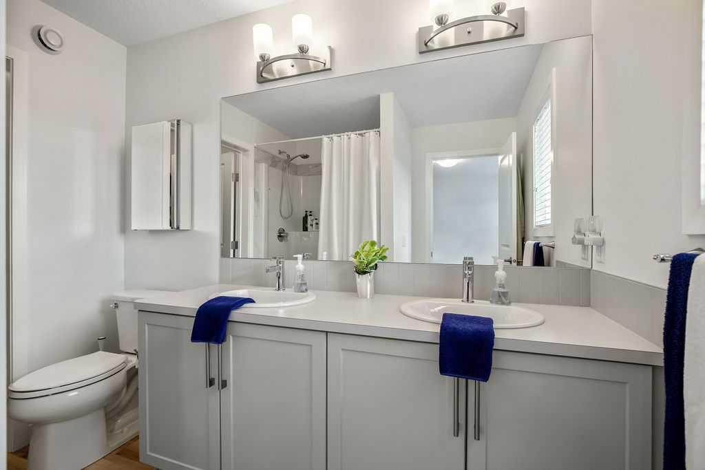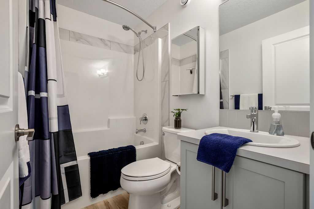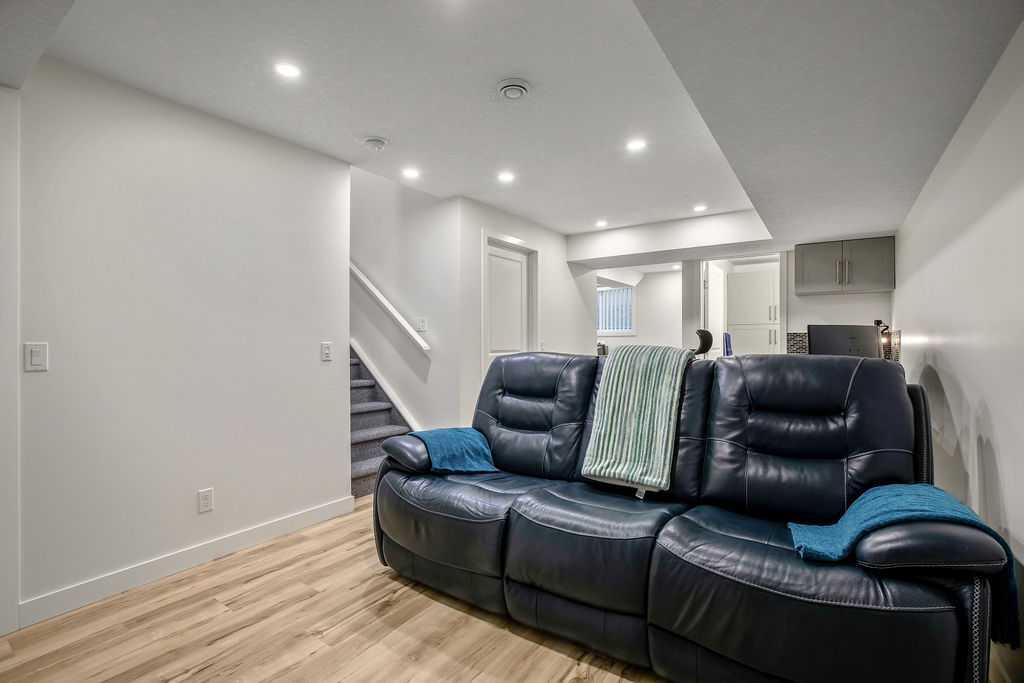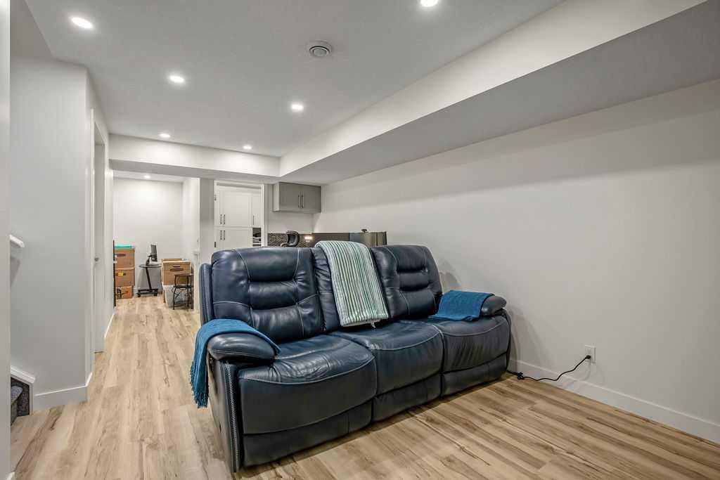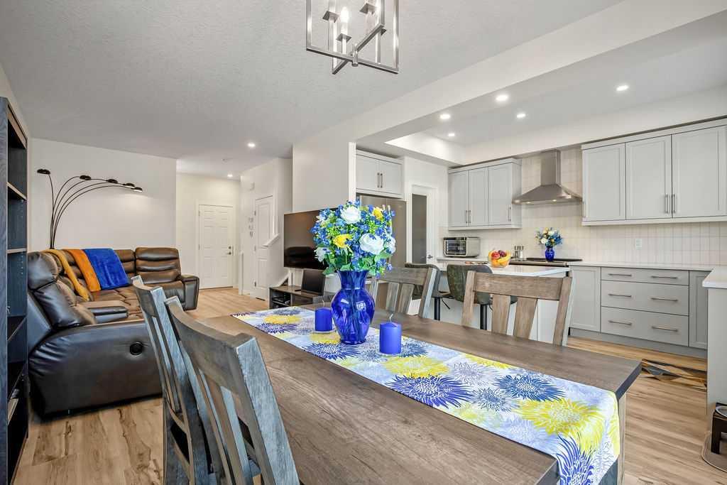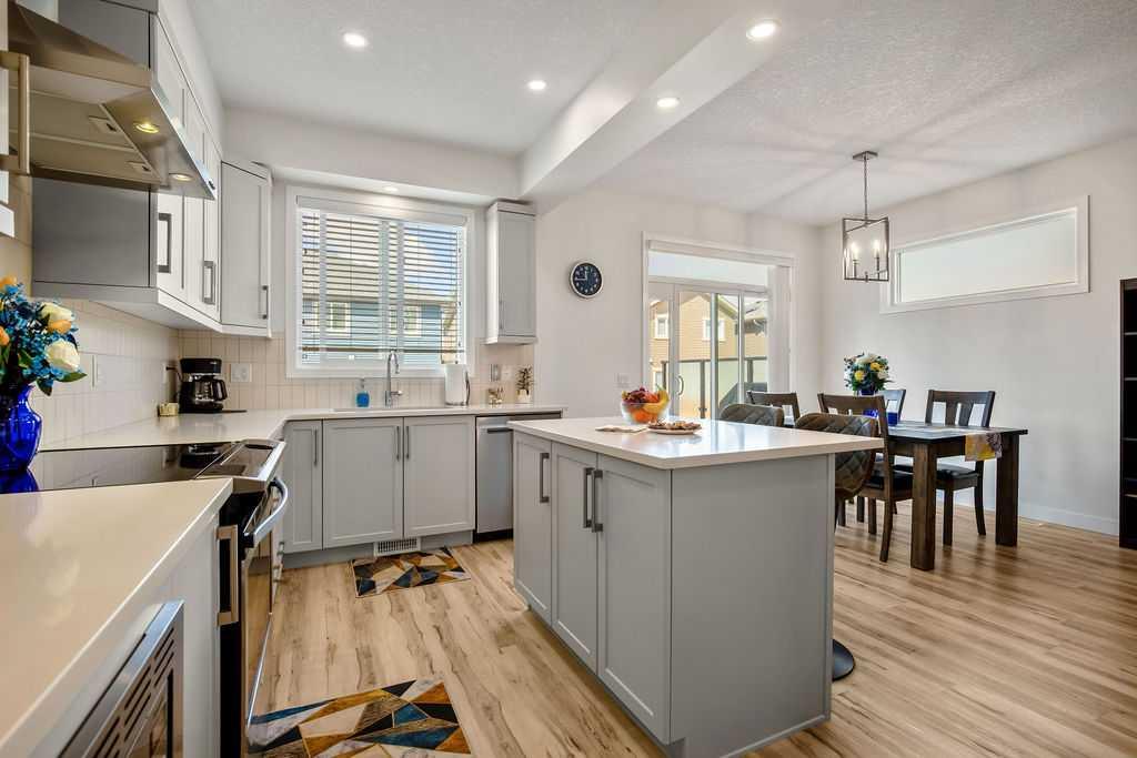 Stylish, upgraded, and truly move-in ready, this Jayman-built Aurora half duplex in the sought-after community of King’s Heights offers over 2,000 sq ft of beautifully developed living space designed for modern living. Step inside to a bright, open-concept main floor featuring durable luxury vinyl plank flooring and a spacious living area that seamlessly connects to the dining space and contemporary kitchen—perfect for both everyday living and entertaining. The kitchen is a standout with quartz countertops, a central island with flush eating bar, upgraded lighting, and a full stainless steel appliance package including a French door fridge with icemaker, glass-top stove, built-in dishwasher, designer hood fan, and built-in microwave. Upstairs, you’ll find three generously sized bedrooms, including a comfortable primary retreat complete with a large walk-in closet and private 4-piece ensuite with dual vanities. Convenient upper-level laundry adds to the home’s functional design. The fully finished basement expands your living space with a large family room, a versatile flex area, and a 2-piece bathroom. The flex space offers excellent potential to be converted into a fourth bedroom with the simple addition of a door—ideal for guests or a growing family. Outside, enjoy your own low-maintenance backyard oasis, thoughtfully designed for relaxation and entertaining. Features include a composite deck, BBQ gas line, fully fenced yard, gazebo, storage shed, and a premium hot tub (Master Spa Twilight Series 8.25, seating up to 7). Designed with efficiency in mind, the home includes 8 builder-installed solar panels to help offset energy consumption and reduce utility costs. Additional highlights include central air conditioning, a single attached garage, and a welcoming front foyer. Perfectly located close to parks, schools, shopping, and pathways, this home delivers exceptional value in one of Airdrie’s most family-friendly communities. With upgrades already complete, all that’s left to do is move in and enjoy. This is one you don’t want to miss!