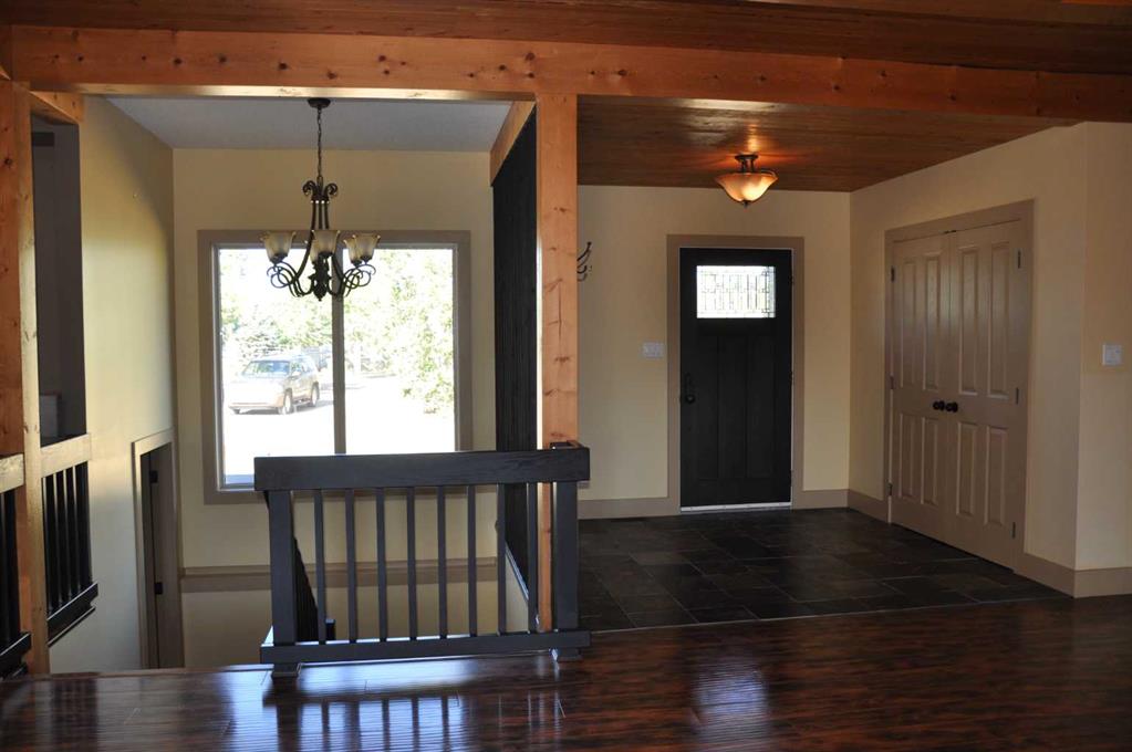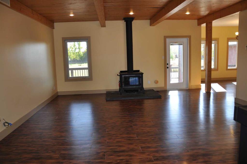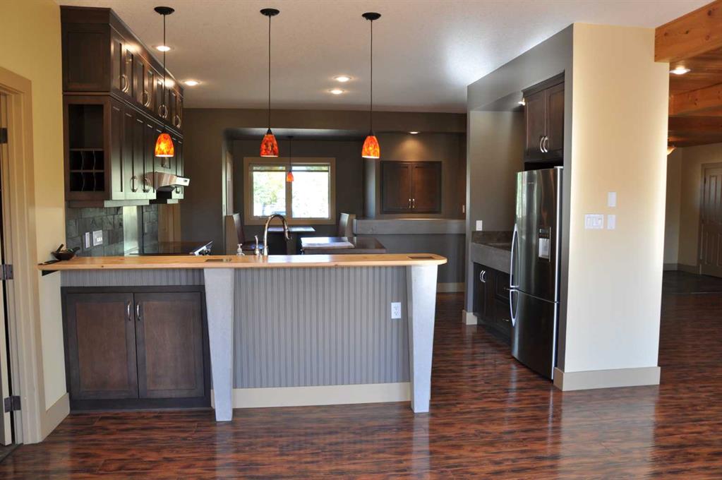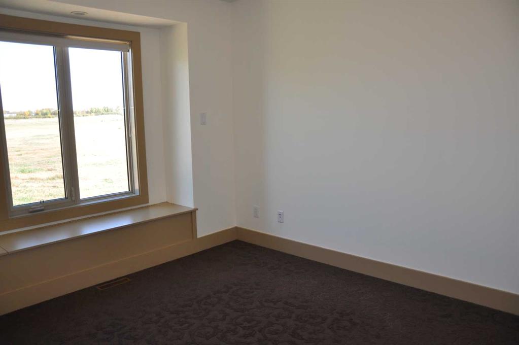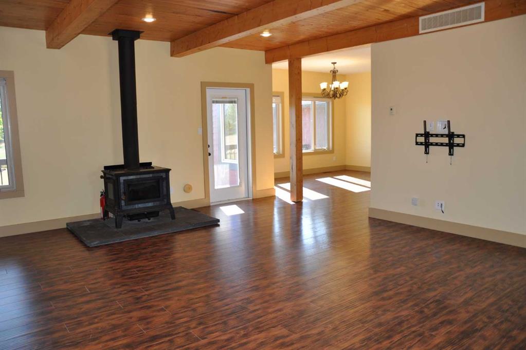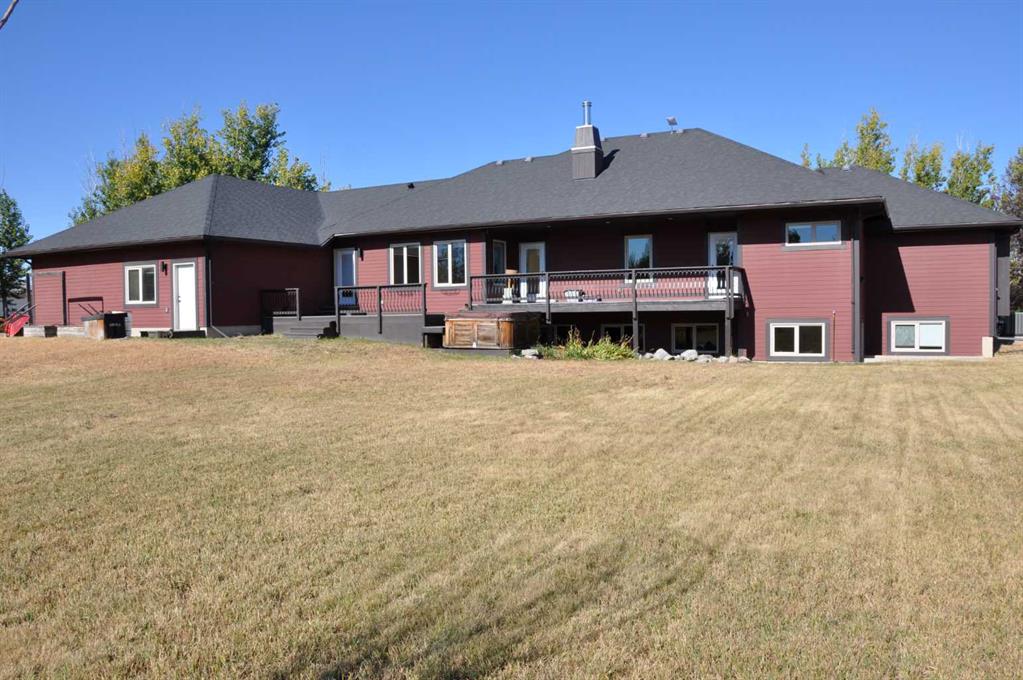 A beautiful custom built bungalow that welcomes you with style and warmth. Situated on 2.77 acres there are panoramic country views from every window. Solid fir steps lead you into the large foyer with slate tiles. The warmth of spruce beams and a wood burning stove welcome you into the living room. The spacious kitchen has a coffee station, a seating nook and concrete counters that give ample work space. The pantry truly is a walkin pantry that can store food staples and kitchen appliances to delight any gourmet cook. An abundance of maple kitchen cupboards line the kitchen walls. Large dining room windows look out onto the deck and the fields behind the house. Next to the kitchen is the main floor laundry room and mudroom with custom built coat lockers. Then this area leads out to the 30x50 garage and workshop which is any man's dream space. Down the hall from the living room is a den, and 2 bedrooms with walkin closets. The primary bedroom opens out onto the deck and has a spacious ensuite with walkin closet. The lower level has a massive rec room that could accomodate any number of recreation tables. The media room that can easily seat 6-8 reclining chairs is ready for your family or friends movie nights. 2 additional bedrooms with large windows make them bright and inviting for family or guests. A 4 pc. bathroom, large storage room and flex room for exercise equipment/crafts, complete the lower level. The walk out basement makes access to the back yard and decks quick and convenient. The acreage has a firepit with a stack of firewood and lots of room for motorcycle track or horses. 2 decks line the back of the home to enjoy the sunshine for entertaining and barbecuing. A curved deck along the front of the home is a perfect place to curl up on a cushioned bench. A shelter belt of trees line the acreage on 3 sides. The convenience of City water has been added for a worry free water source. With the acreage only being 10 minutes outside of the City it is convenient for all the City amenities without giving up your country lifestyle. It is on a quiet road with little traffic. Come and make this your country home. Quick possession is possible.