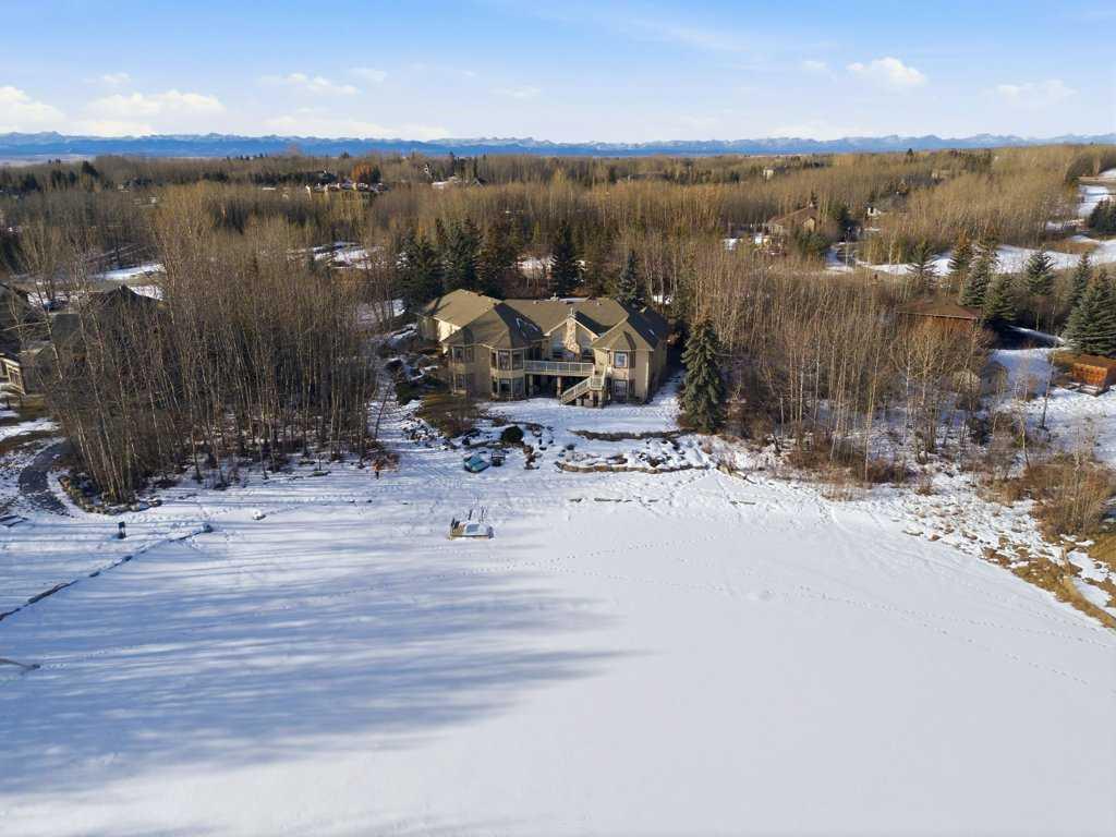 A rare opportunity to own a lakeside acreage in Church Ranches. Custom-built by Maillot Homes, this original-owner walkout bungalow sits on a beautiful 2.04-acre lakefront lot on the shores of Cheyanne Lake in Church Ranches. Offering nearly 6,000 sq. ft. of total living space, the home is designed for both comfort and longevity, featuring a thoughtful layout that includes a private home office, a main-floor primary suite, and an integrated elevator for easy access between levels. The main floor is centered around an open living area with vaulted ceilings and a floor-to-ceiling stone fireplace. The kitchen is built for daily life and hosting alike, finished with marble countertops, a Wolf cooktop, and double ovens. Adjacent to the kitchen, a bright eating nook and a cozy sitting area create an inviting space for casual gatherings. Throughout the home, the quality of construction is evident in the solid red birch doors and custom millwork. The primary bedroom serves as a quiet retreat, complete with its own fireplace and French doors leading to the back deck, which features a built-in BBQ and views of the water. The walk-out lower level is exceptionally bright, with large window banks that bring in plenty of natural light. This level includes two additional bedrooms, an entertainment area with pool table, additional office space with a murphy bed. Plenty of additional storage in the basement. A triple oversized garage with epoxy floors, built in cabinetry for all your storage needs and a work bench. With professionally maintained gardens and landscaping with full irrigation, a private gated driveway, and direct access to your own beach and dock on the swimmable community lake. Gravel pathways around the house for easy access to the gardens and the beach. This is a meticulously maintained for home that offers a peaceful, private lifestyle just minutes from the city. Residents of Church Ranches enjoy seventy acres of private common lands and three public lakes that are maintained by the HOA. The lakes are stocked with trout for fishing and swimmable. There are over 7km of walking trails on the common lands for resident use. Church Ranches is just north of the Calgary city limits and 30 minutes to downtown.
