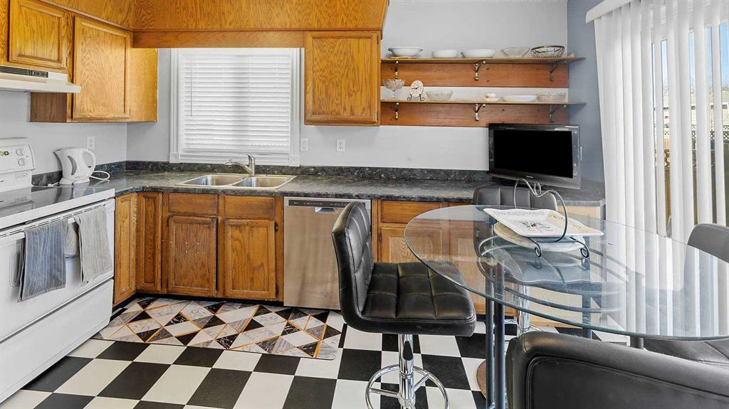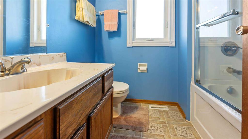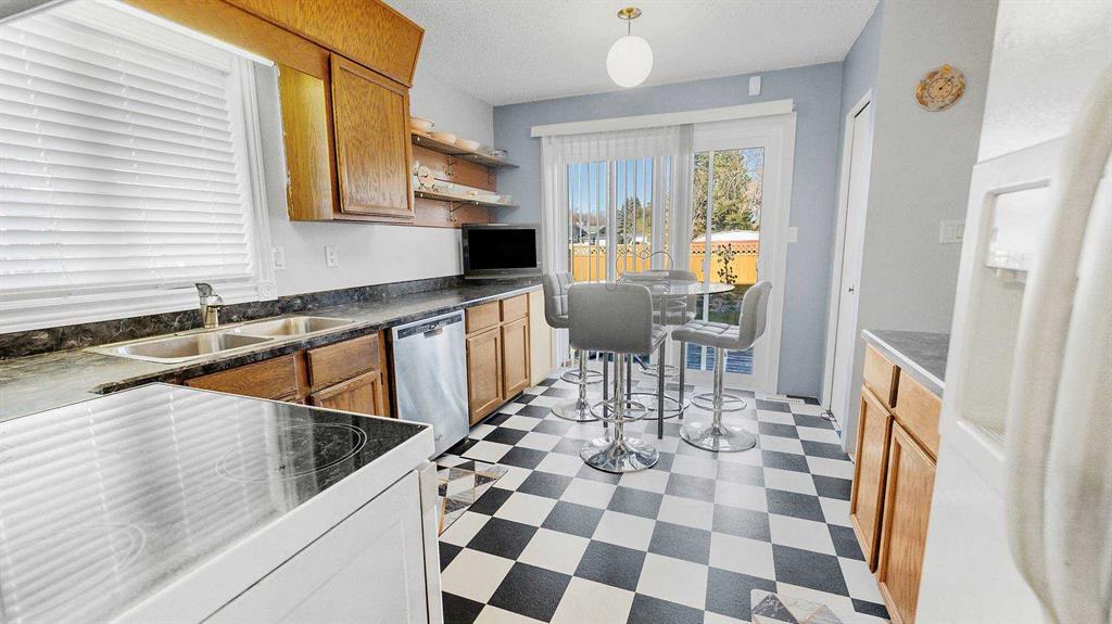 Welcome to this lovingly cared-for 1976 custom home, perfectly situated in one of Camrose’s desirable neighborhoods—just steps from schools, shopping, and parks. From the moment you arrive, you’ll appreciate the warmth and character this home offers. The main floor features a cozy sunken living room with a wood-burning fireplace, perfect for relaxing evenings. You’ll also find a bright dining area, a private kitchen with a charming eat-in nook—ideal for morning coffee—and the convenience of main floor laundry. A 2-piece bathroom and plenty of storage add to the home’s thoughtful layout. Upstairs offers two spacious bedrooms and a full bathroom. The primary bedroom is tucked away for added privacy and features its own 2-piece ensuite and a walk-in closet. The lower level provides even more living space with a large rec room, a 3-piece bathroom, and a versatile flex area with exterior access. This space also includes an additional laundry hookup, offering great flexibility for guests, a home office or hobbies. Step outside to enjoy the fully fenced backyard with plenty of space to relax, garden, or entertain. A double detached garage, extra parking, and a front carport provide plenty of room for vehicles and storage. Lovingly maintained over the years, the home also features newer windows and exterior doors for added comfort and efficiency. Move in and enjoy it as is, or bring your ideas and add your own modern touch—this is a wonderful opportunity to make a great home your own in an unbeatable location!