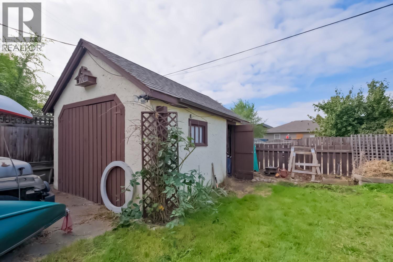 Charming home in a quiet central Penticton neighbourhood! This property offers classic character with hardwood floors, coved ceilings, and plenty of natural light throughout. The main level features a comfortable living area, kitchen, and two bedrooms. Upstairs, a bonus attic room provides additional flexible space — perfect for a hobby room, office, or guest area. The full basement includes a rec room and extra storage options. Enjoy the privacy of the fenced yard and detached garage. Conveniently located close to schools, parks, and shopping.