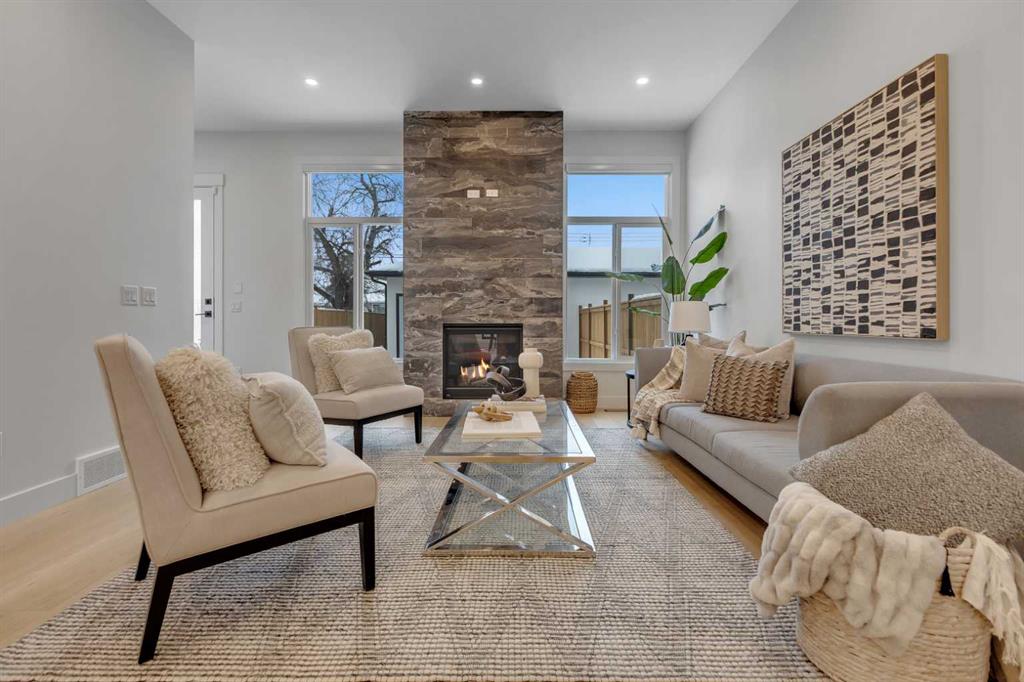 Sleek, Stylish, and Thoughtfully Designed – Welcome to 6416 34 Ave NW! From the moment you arrive, this home makes an impression. Modern curb appeal, a quiet tree-lined street, and a location that offers the perfect balance of city convenience and nature's tranquility. Step inside, and you'll instantly feel the elegance in every detail.The dining room sets the stage—an inviting space with designer lighting that creates the perfect ambiance, whether it's a casual brunch or a lively dinner party. The kitchen is an absolute showstopper, featuring ceiling-height custom cabinetry, gleaming quartz countertops, and a large island that serves as the heart of the home. Whether you're a gourmet chef or a takeout connoisseur, this space is as functional as it is beautiful. Flowing seamlessly from the kitchen, the living room is warm and welcoming, centred around a stunning full tile-surround fireplace with expansive windows on either side that bring in gorgeous natural light and a view of the backyard. A space like this just feels good—cozy yet sophisticated, perfect for quiet nights or entertaining guests. Tucked away at the back of the home, the mudroom is designed for real life, with custom storage, and a sleek tiled floor that stands up to Calgary’s seasons. Right next to it, the powder room feels upscale and refined—no detail overlooked.Head upstairs, and the luxury continues. The primary suite is a true retreat, with soaring ceilings, a large walk-in closet, and an ensuite that’s pure indulgence. A fully tiled shower with steam rough-in, heated floors, a soaker tub built for long, relaxing evenings, and dual vanities with quartz counters—this is the kind of space that makes every morning feel like a spa day. Two additional bedrooms, both bright and spacious, share a modern 4-piece bathroom with chic finishes. The laundry room is equally impressive, complete with a quartz folding counter, built-in cabinetry, and a deep sink—because practical should still be beautiful. And let’s not forget the fully self-contained 2-BEDROOM LEGAL BASEMENT SUITE (subject to permits and approvals by the city). With its own private entrance, it offers a full kitchen with quartz counters and ceiling-height cabinets, a spacious living area, two generous bedrooms, and a sleek 4-piece bath with a full tile surround. Whether it’s for extended family, guests, or rental income, this space adds incredible value.To top it all off, this home sits in a prime location—steps from the Bow River pathways, minutes to Winsport, U of C, and downtown. You’re surrounded by parks, shops, and some of the best local cafés in the city. Disclaimer: The photos are from the show suite.