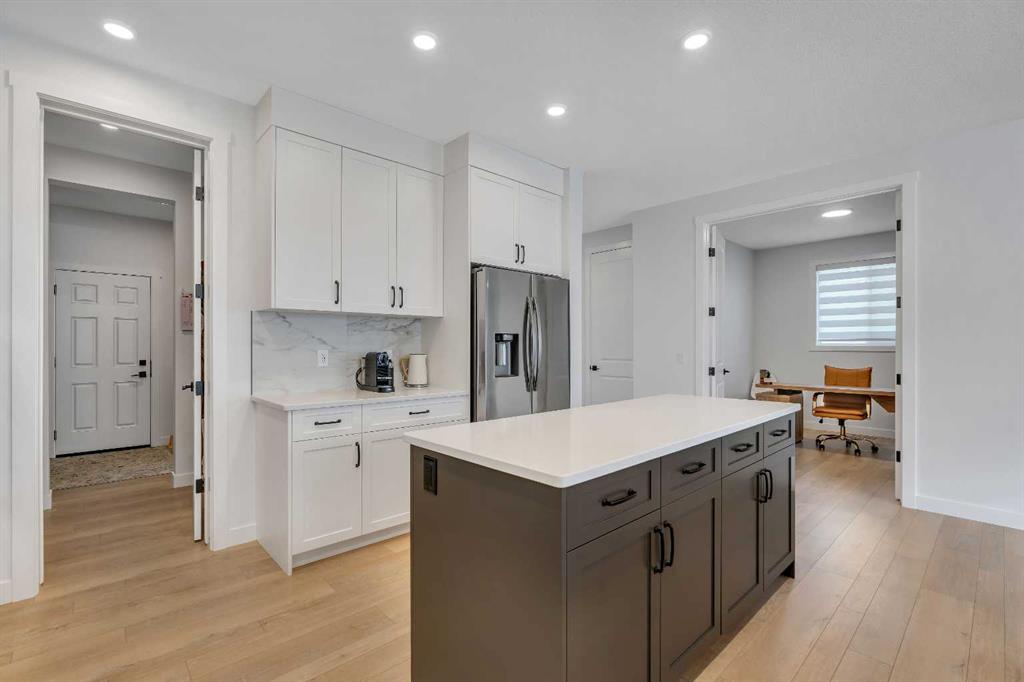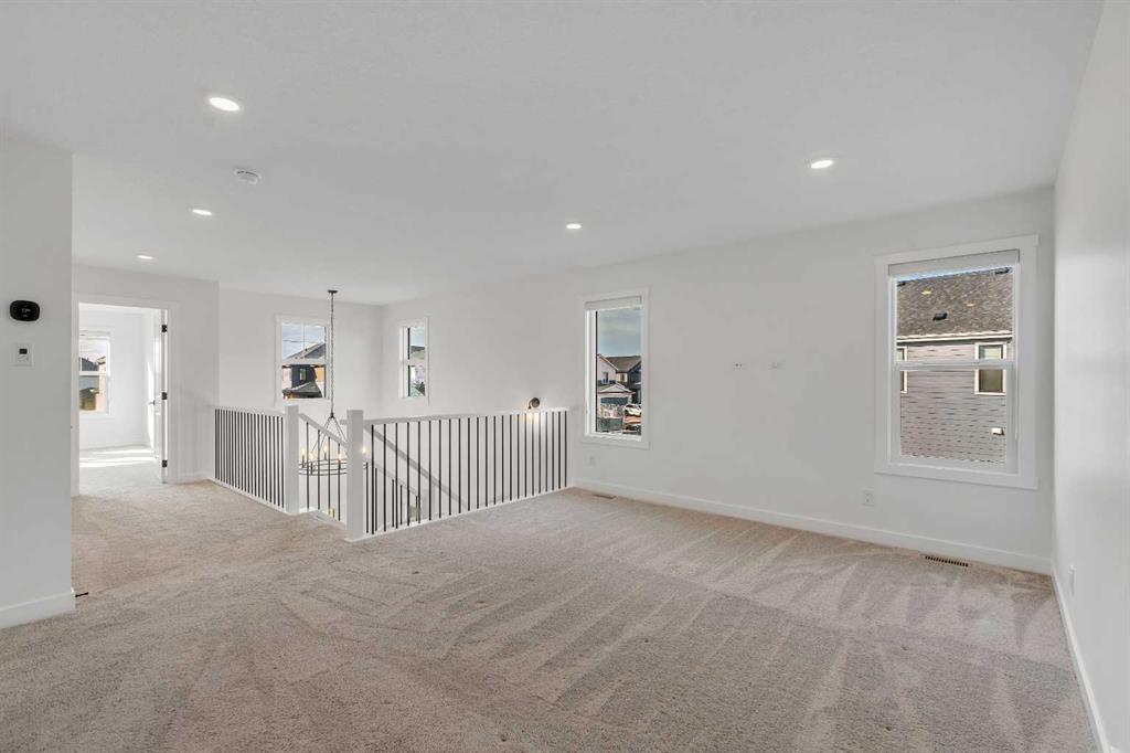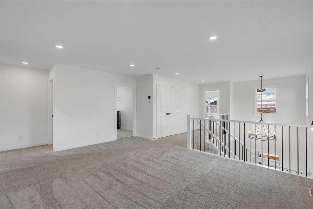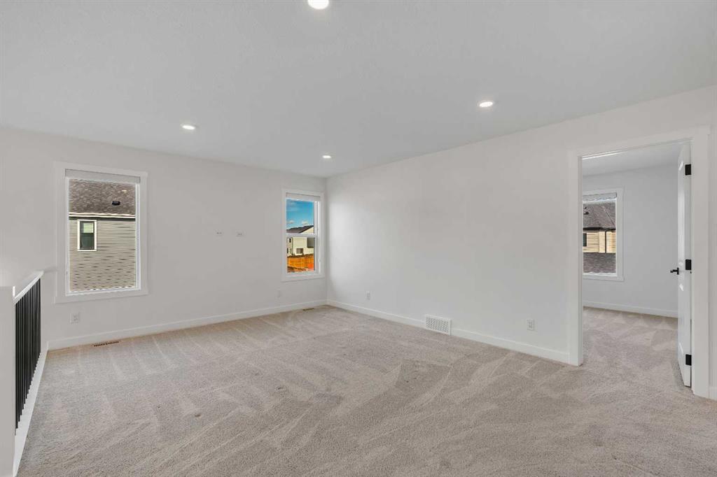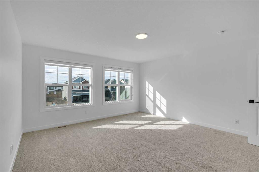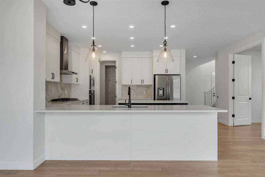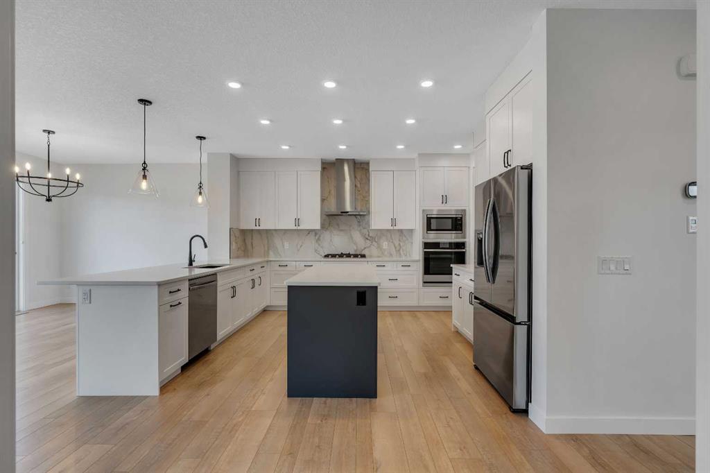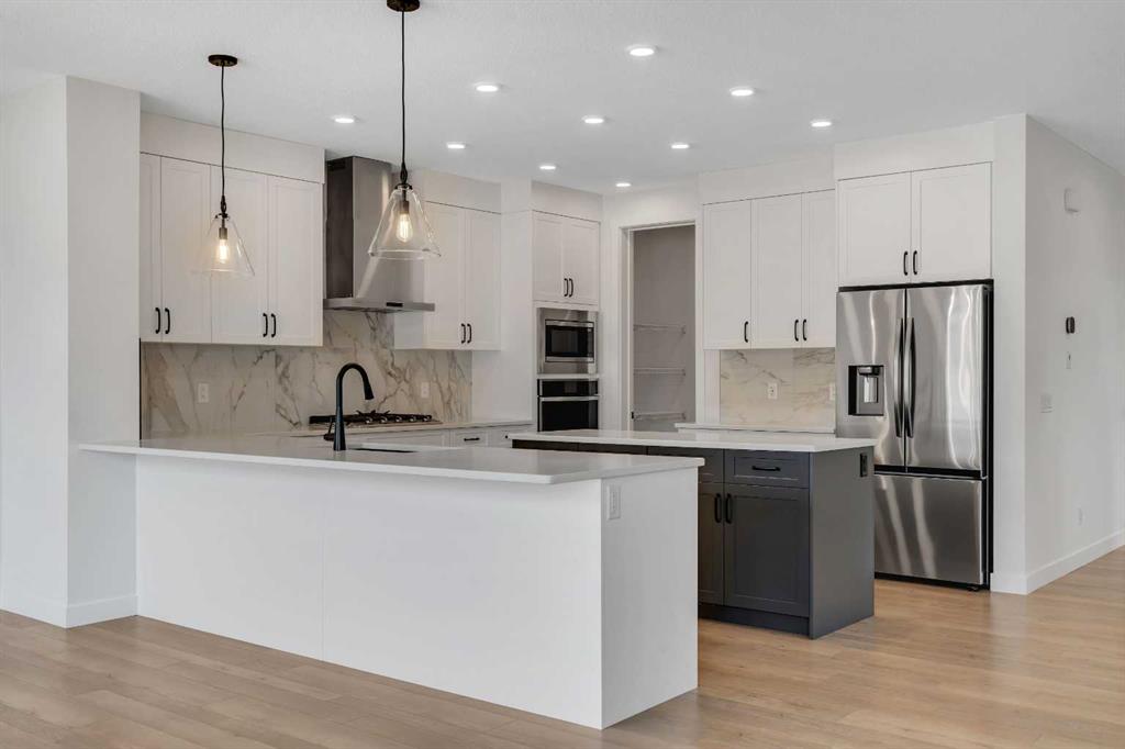 Welcome to 649 Sailfin Drive, located in the brand new lake community of Harmony just 10 minutes west of Calgary and approximately 30 minutes to the mountains, where you are buying more than just a home but a true lifestyle. This 2025 Daytona built home presents like new and features numerous upgrades throughout including being situated on an oversized lot and in one of the most desirable phases of Harmony within walking distance to the lake and community amenities. Offering over 2600 sq ft of living space with 3 bedrooms and 2.5 bathrooms, the layout is both functional and thoughtfully designed for families. The main floor welcomes you with a large foyer, private office with French doors, 2 piece powder room, and a spacious living room centred around a gas fireplace, perfect for family time or entertaining after a day at the lake. The dining area flows seamlessly into the chef’s kitchen, showcasing full height custom cabinetry, a gas range, built in wall oven and microwave, quartz countertops throughout, a large breakfast bar, and an oversized island with plenty of space for a growing family. This level is completed by a massive walk through pantry that connects to the mudroom with custom lockers and direct garage access, ideal for busy households. Upstairs you will find a large bonus room, 3 bedrooms, and a well planned layout. The primary bedroom measures approximately 14.5 by 15.6 ft and features a large walk in closet along with a spa inspired ensuite offering a double vanity, custom stand up shower, and standalone soaker tub. The second and third bedrooms are generously sized and each includes a large walk in closet. You will also find a spacious laundry room with sink and a full 4 piece bathroom on this level. Mechanical highlights include 2 high efficiency furnaces, 2 central A C systems, and a sump pump. Additional upgrades include a custom high end blind package throughout, railing upgrades, and many more. Why wait 12 months for a new home when you can move in today and save the GST. Set in the award winning community of Harmony with its 2 private lakes, a brand new Nordic Spa (2028, brochure link in listing), world class golf at Mickelson National, extensive pathway system, playgrounds, and future village centre, this home offers an exceptional blend of comfort, quality, and lifestyle. Please book your private showing today.