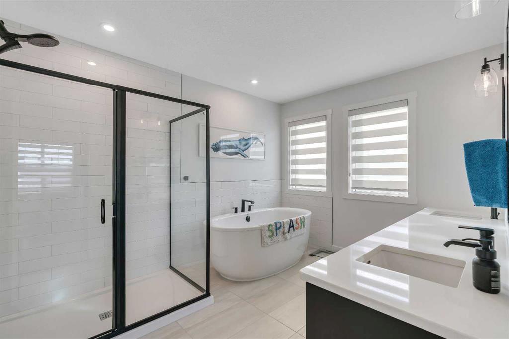 Welcome to 649 Sailfin Drive, located in the brand new lake community of Harmony just 10 minutes west of Calgary and approximately 30 minutes to the mountains, where you are buying more than just a home but a true lifestyle. This 2025 Daytona built home presents like new and features numerous upgrades throughout including being situated on an oversized lot and in one of the most desirable phases of Harmony within walking distance to the lake and community amenities. Offering over 2600 sq ft of living space with 3 bedrooms and 2.5 bathrooms, the layout is both functional and thoughtfully designed for families. The main floor welcomes you with a large foyer, private office with French doors, 2 piece powder room, and a spacious living room centred around a gas fireplace, perfect for family time or entertaining after a day at the lake. The dining area flows seamlessly into the chef’s kitchen, showcasing full height custom cabinetry, a gas range, built in wall oven and microwave, quartz countertops throughout, a large breakfast bar, and an oversized island with plenty of space for a growing family. This level is completed by a massive walk through pantry that connects to the mudroom with custom lockers and direct garage access, ideal for busy households. Upstairs you will find a large bonus room, 3 bedrooms, and a well planned layout. The primary bedroom measures approximately 14.5 by 15.6 ft and features a large walk in closet along with a spa inspired ensuite offering a double vanity, custom stand up shower, and standalone soaker tub. The second and third bedrooms are generously sized and each includes a large walk in closet. You will also find a spacious laundry room with sink and a full 4 piece bathroom on this level. Mechanical highlights include 2 high efficiency furnaces, 2 central A C systems, and a sump pump. Additional upgrades include a custom high end blind package throughout, railing upgrades, and many more. Why wait 12 months for a new home when you can move in today and save the GST. Set in the award winning community of Harmony with its 2 private lakes, world class golf at Mickelson National, extensive pathway system, playgrounds, and future village centre, this home offers an exceptional blend of comfort, quality, and lifestyle. Please book your private shwoing today.