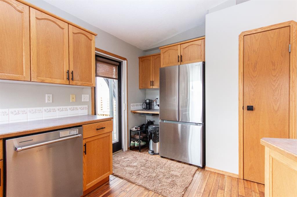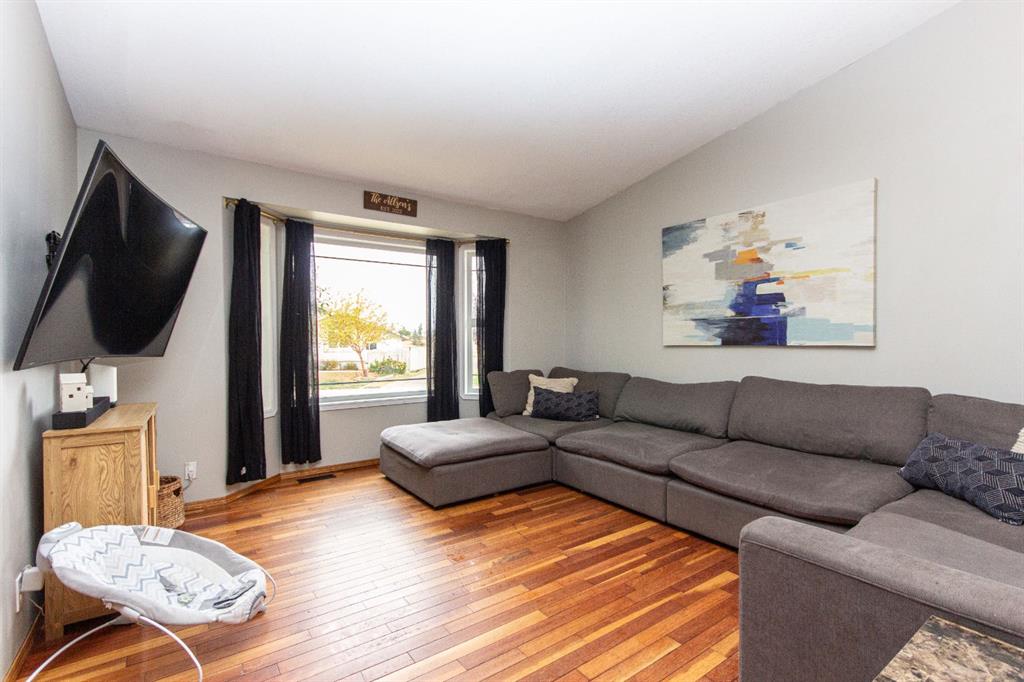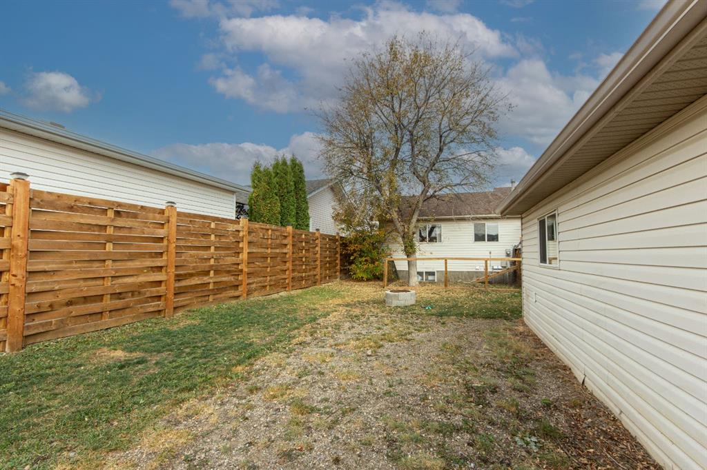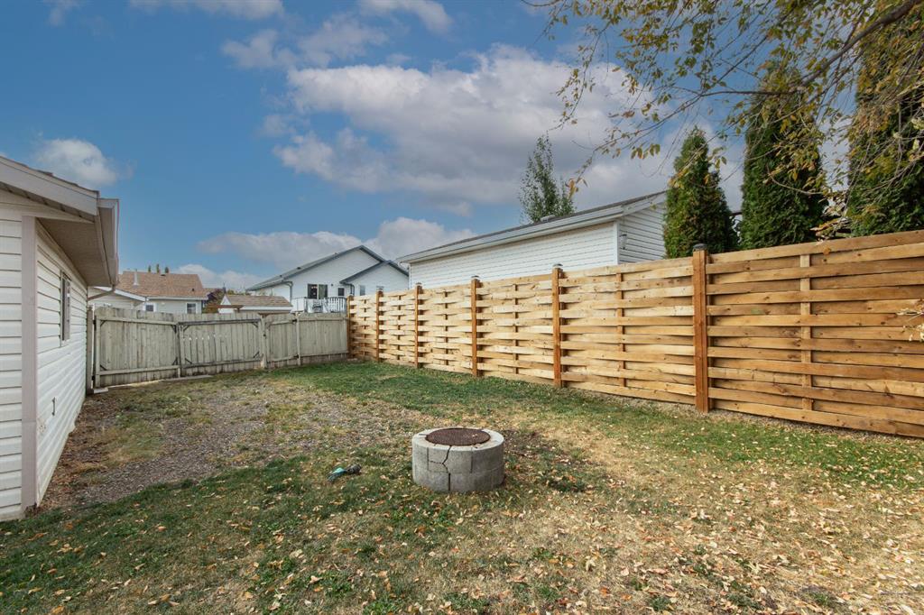 Welcome to this fully finished bungalow with a double detached garage. Step into the front entry that opens to a welcoming living room with hardwood floors and views of the front yard. The floor plan flows into the dining area and kitchen, where you’ll find an eating bar, pantry, plenty of cabinet space, and easy access to the large back deck for summer BBQs. Down the hall, the primary bedroom offers dual closets, alongside two additional bedrooms, one with washer/dryer hookups in the closet and a 4-piece bathroom. The fully finished basement expands your living space with a spacious family room featuring a cozy gas fireplace, a fourth bedroom, a second 4-piece bathroom, and a large laundry/storage room. Enjoy your private, fully fenced backyard featuring a double detached garage, a convenient rear gate for RV parking, and even a removable dog run off the deck, perfect for pets or flexible yard use. This 4-bed, 2-bath bungalow is move-in ready and offers everything your family needs in a great location.