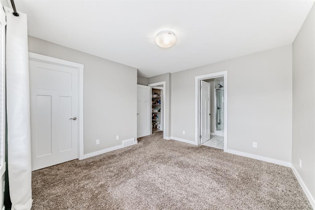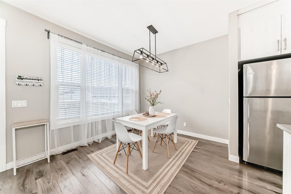 Welcome to your new home in the vibrant community of Seton! Perfectly located within walking distance to top-tier amenities including the South Health Campus, public transit, and just minutes from the world’s largest YMCA. This beautifully designed home offers 3 spacious bedrooms, 2.5 bathrooms, and a charming front porch with a farmhouse-style exterior. The low-maintenance backyard and unfinished basement provide plenty of room to grow and personalize. Step inside to discover soaring 9’ ceilings and a thoughtfully designed layout wrapped in neutral tones and calming finishes. Notable upgrades include Hunter Douglas blinds and a host of high-end finishes throughout. The front living room flows seamlessly into the central kitchen and back dining area, creating an ideal space for both daily living and entertaining. The chef-inspired kitchen features an oversized quartz island with seating, extended-height cabinetry with soft-close hardware, a sleek stainless steel appliance package including a smooth-top range, a full-height built-in pantry wall, and a stylish textured backsplash. Natural light fills the space, and a garden door leads to your private, fully fenced backyard. Upstairs, you’ll find three generous bedrooms – perfect for family, guests, or a home office. The primary suite is a true retreat, complete with dual sinks, a deep soaker tub, fully tiled shower, walk-in closet, and additional storage. A full 4-piece bathroom with tiled accents and linen storage, plus a convenient upper-level laundry room, complete the floor. Step outside to your backyard oasis featuring an extended deck with glass railing, professionally landscaped and fenced for privacy. The basement, with 9’ ceilings and a 3-piece bathroom rough-in, is ready for your personal touch – whether that’s a home gym, media room, extra bedroom, or storage. Don’t miss your opportunity to live in one of Calgary’s most dynamic and amenity-rich communities. This is more than a house – it’s a place to call home.