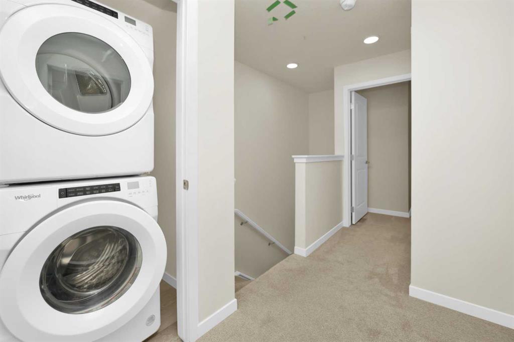 Modern three-storey townhome in the highly convenient community of Cornerstone! This like-new residence features a stunning open-concept main floor with LVP flooring, a bright chef’s kitchen showcasing modern white cabinets, stainless steel appliances, and quartz/granite countertops. The upper level offers three spacious bedrooms, including a primary suite with a private ensuite, plus desirable upper-floor laundry. Complete with a double attached garage and a versatile den/flex room, this home is just steps from shopping (Chalo! FreshCo, Tim Hortons) and provides excellent access to Stoney Trail, Deerfoot Trail, and the Calgary International Airport.