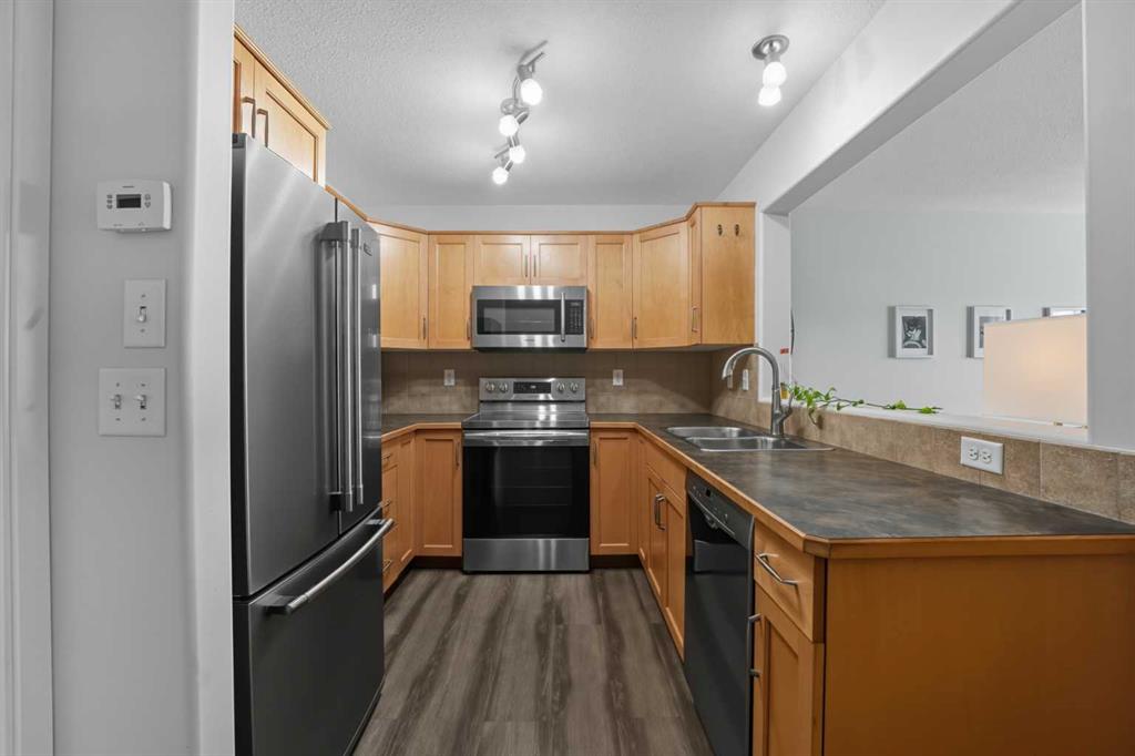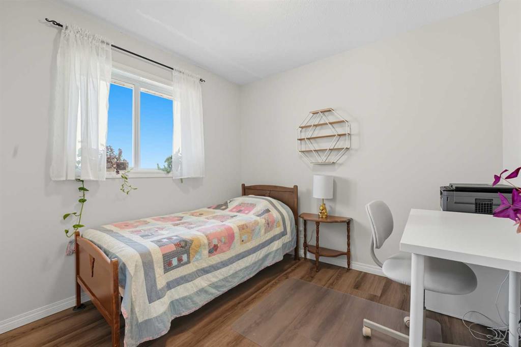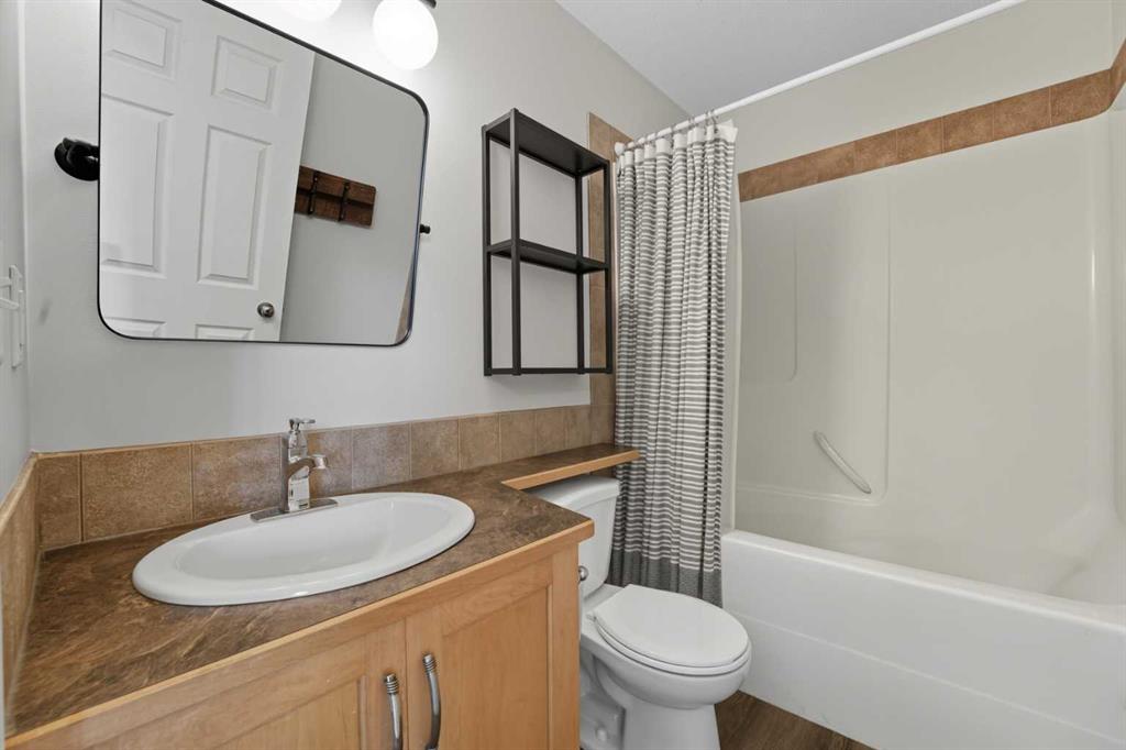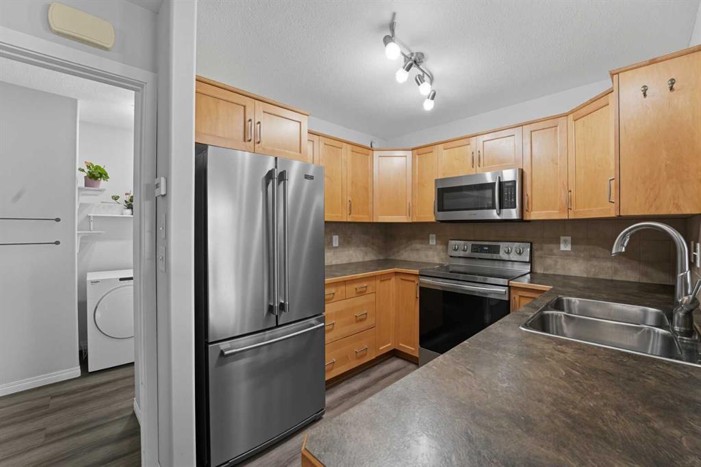 This beautifully renovated 2-story townhouse is move-in-ready & features a bright, open floor plan that invites natural light throughout. The main floor boasts a spacious living area, new flooring throughout, and a gas fireplace, ideal for both relaxing and entertaining. The kitchen features a tile backsplash and newer stainless appliances. The convenience of the main floor laundry & 2-piece bathroom adds to the functionality of the space. Upstairs has 3 beds & a 4-pc bathroom. The good size primary bedroom features a walk-in closet. There are plenty of opportunities to add to the home with the unfinished basement. The private backyard is fully fenced and landscaped, a perfect space for entertaining. There is also 2 off street parking stalls. This home is located in a family friendly neighbourhood, close to schools (Terrace Ridge School – Kindergarten to Grade &), parks, shopping, and so much more!