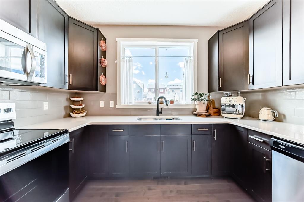 Tucked into the heart of Walden, this charming 2-storey semi-detached home offers the kind of lifestyle that feels easy the moment you walk through the door. Thoughtfully designed and beautifully maintained, it features durable Hardy Board siding, adding both lasting curb appeal and low-maintenance peace of mind. It blends everyday practicality with inviting spaces that truly feel like home. The main floor welcomes you with a bright, open layout that naturally connects the living, dining, and kitchen areas—ideal for both quiet evenings and lively gatherings. Positioned at the back of the home, the kitchen enjoys views of the private backyard through a large window, filling the space with natural light. Step outside and you’ll discover a peaceful retreat: a generous backyard with a covered patio beneath a gazebo, perfect for summer dinners, morning coffee, or simply unwinding at the end of the day. With ample room to build a future double detached garage, the possibilities here extend well beyond the present. Upstairs, the primary bedroom is a true retreat—spacious enough for a king-size bed, complete with a walk-in closet and private ensuite. Two additional bedrooms provide flexibility for family, guests, or a home office, while the conveniently located upper-floor laundry room makes day-to-day living just that much easier. The unfinished basement is a blank canvas waiting for your vision, whether that means a media room, gym, extra living space, or all of the above. A bathroom rough-in is already in place, giving you a head start on future plans. And then there’s the location. Walden continues to be one of Calgary’s most loved southeast communities for good reason—offering scenic walking paths, parks, schools, playgrounds, and easy access to shopping, dining, and major routes like Macleod Trail. This is more than just a home—it’s a space that grows with you, in a neighbourhood designed for living well.