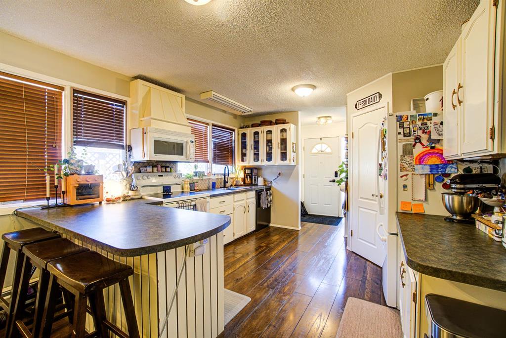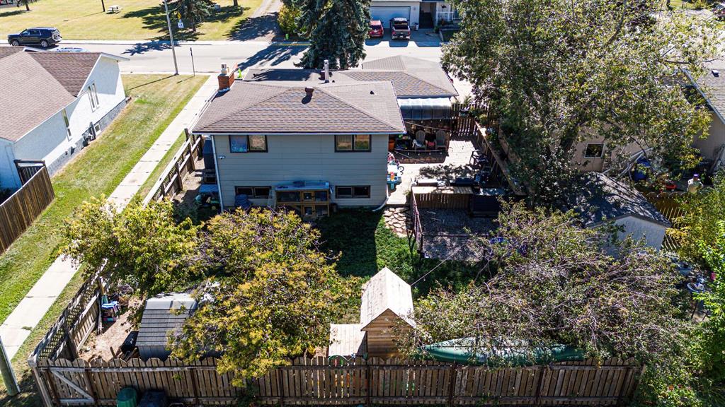 Welcome to this ideal family home, perfectly situated just a stone’s throw from Lions Park and within easy walking distance to downtown, schools, and scenic walking paths. This inviting split-level home truly has it all. Step inside to discover a charming farmhouse-style galley kitchen featuring a corner pantry, ample cabinetry, and generous counter space. The spacious dining area flows seamlessly into the large living room, where south-facing windows fill the space with natural light. From the dining room, step into the bright sunroom — the perfect spot to enjoy your morning coffee or unwind after a long day. Upstairs, you’ll find a 4-piece bathroom with convenient access from the spacious primary bedroom, which overlooks the private backyard. Two additional bedrooms complete the upper level, offering plenty of space for family or guests. The lower level features a cozy family room anchored by a gas fireplace, a convenient office nook, a generous laundry area, and a 2-piece bath. The basement level provides a versatile games or theater room plus additional storage. Enjoy the convenience of an attached single garage and the privacy of a large, fully fenced backyard. Mature trees provide shade and character, while the expansive deck offers plenty of room for entertaining. With back alley access and a side walking path, this home is both welcoming and practical — ready for you to move in and fall in love.