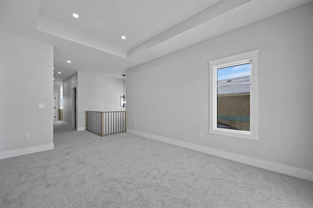 Ridge Lot With Amazing Views...Situated in the desirable community of West Hawk. This home is thoughtfully designed and comes with with 3 bedrooms and 2.5 bathrooms. The main floor features an open-concept layout with soaring open-to-above ceilings, a striking Linear fireplace Design, and a private home office with Wainscoting. The chef’s kitchen showcases custom soft-close cabinetry with hidden doors behind the island, quartz countertops, Samsung stainless steel appliances, a walkthrough pantry, and under-cabinet lighting. A mudroom adds everyday convenience. Upstairs, the master retreat impresses with mountain views, a walk-in closet, and a spa-inspired ensuite with dual sinks, a 10mm glass shower, soaker tub, upgraded mirrors, and imported tiles. A spacious bonus room and laundry area provide added functionality. Additional highlights include 8-ft doors on the main floor, custom built-in closets, engineered hardwood, 9-ft ceilings on both levels, upgraded lighting, plumbing fixtures, and a double-car garage. The walkout basement has Roughed in Bathroom plumbing and ready for your future Development. Enjoy West Hawk’s prime location near parks, future dog park, bike paths, shopping, and quick mountain access. This home also includes a Certified New Home Warranty for peace of mind. Don’t miss this rare opportunity—book your private viewing today!