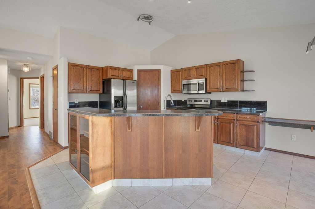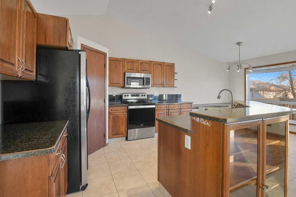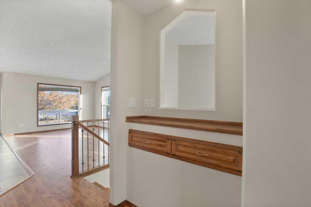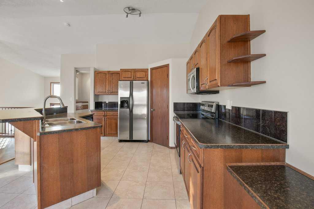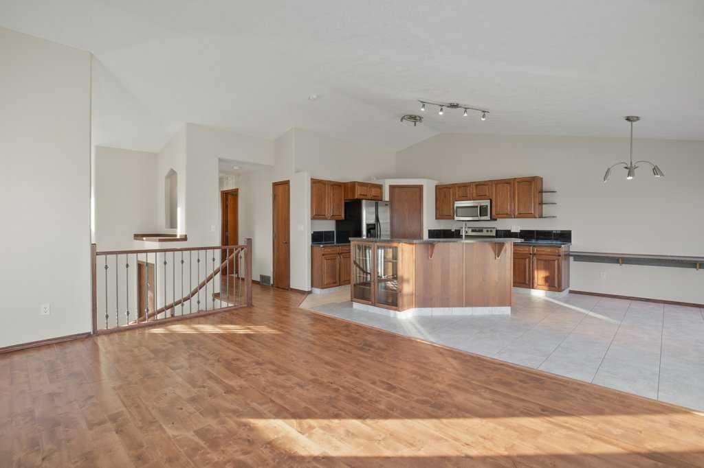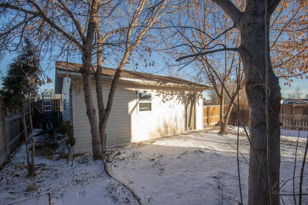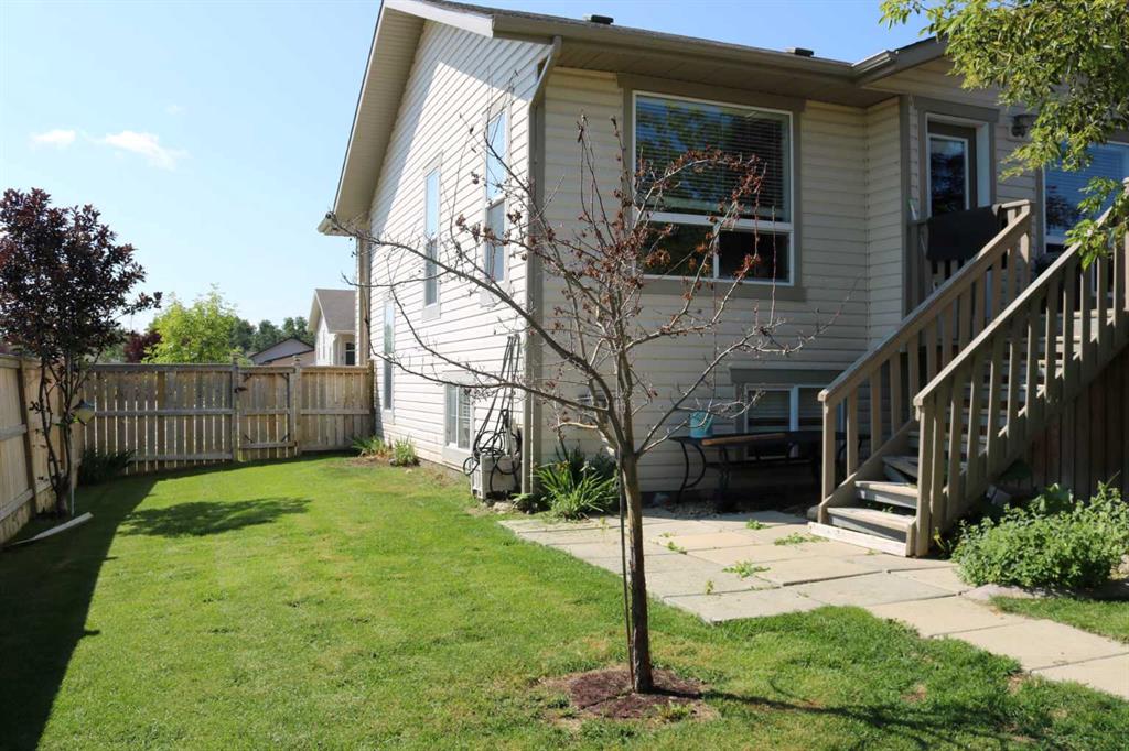 Perched on a corner lot, this BEAUTIFUL BI-LEVEL could be perfect for you! Natural tones compliment the curb appeal of this fantastic home. The double detached garage is insulated and drywalled to provide cozy indoor parking. Step inside and take in the vaulted ceilings and airy ambience. Greet your guests from the covered veranda into the large foyer, tiled and featuring a generous closet. Numerous windows allow natural light to pour throughout the floorplan. The hub of the home features newly finished hardwood floors! Rich dark cabinetry and stainless steel appliances compliment the kitchen. The island offers a sit-up bar and additional prep space. Two generous pantries provide loads of storage. The primary bedroom is spacious and boasts a 3-piece ensuite. The den could also be converted into a lovely nursery or bedroom with the easy addition of a wardrobe. A 2-piece powder room can also be found on this floor. Step thru the garden door to enjoy the deck and fully fenced backyard. Mature trees and landscaping boarder the property while offering additional privacy. Back inside, the lower level of the home hosts a fantastic family room. BRAND NEW PLUSH CARPET and a gas fireplace give the space a cozy feel. Two bedrooms and a 4-piece bathroom provide accommodations for company or older children. Laundry and storage can also be found on this lower floor. Let the sun shine through those large windows, CENTRAL AIR keeps this home comfortable during those warm Summer months. Recent Upgrades Include: New Shingles 2025, New Furnace 2023, New Carpet & Paint throughout 2026, and Refinished Hardwood Floors 2026. An incredible investment for any buyer. Time is ticking, schedule your showing today!!