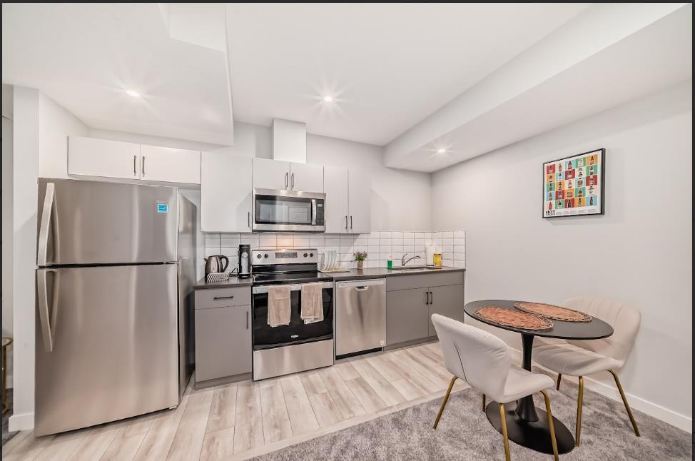 Check out this amazing 6-bedroom, 1-flex room, 4 full bathrooms two-storey home in Ambleton! With over 2330 sq. ft. of luxurious living space, it features a walkout legal basement suite (currently used for short-term rental), perfect for families or multi-gen living. Main floor highlights: Open-concept living area with fireplace, Modern gourmet kitchen with granite countertops, high-end appliances, built-in oven & microwave combination and range hood, Main floor bedroom and full bathroom and Oversize deck for summer BBQs. Upstairs: Large bonus room for media or play, Upstairs laundry, Master bedroom with 5-piece ensuite and walk-in closet, 3 additional spacious bedrooms. Walkout basement: Fully developed and registered as a legal secondary suite, 9 ft ceilings, 1 bedroom, flexroom/den, kitchen, and laundry.