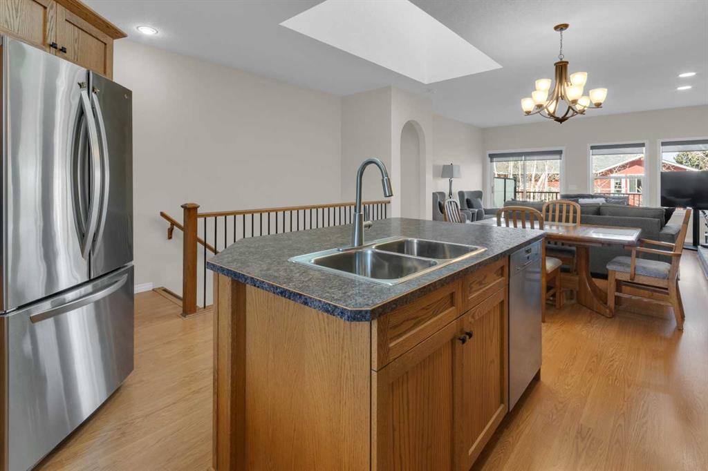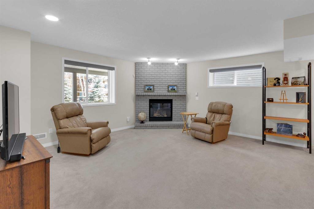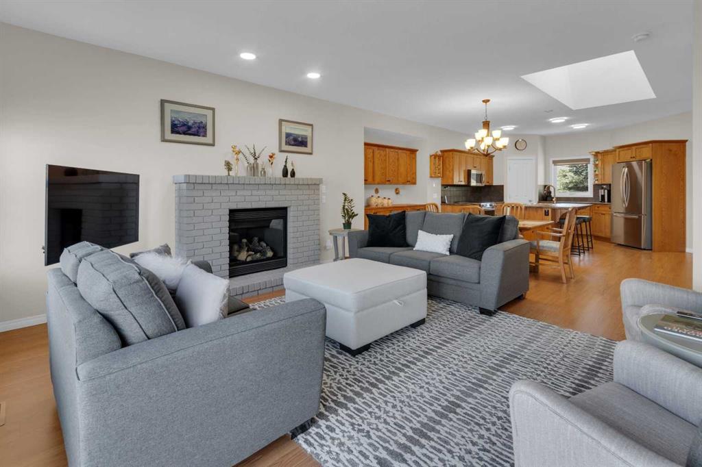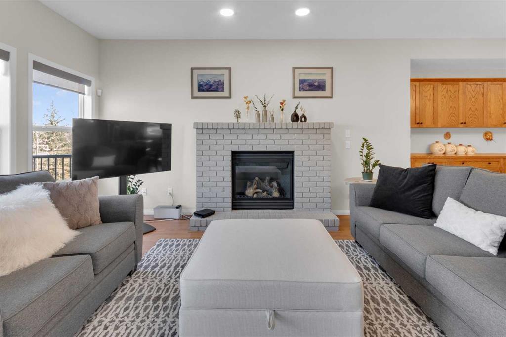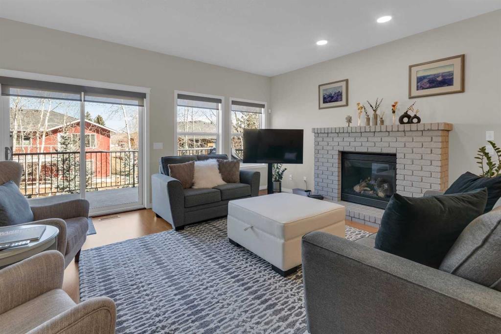 Impressive, fresh, open, and bright! This immaculate updated villa sits in a quiet cul de sac backing onto a treed green belt with access to natural areas and Turner Valley Golf Club. Surprisingly private and peaceful, listen to birdsong and watch the deer stroll by your private deck and living areas. This turnkey, easy care home has extensive updates that make it truly move in ready. A partial list of updates (5 years); painted top to bottom - ceilings, doors and trim. New AC, all new appliances, all new window coverings, all new light fixtures (LED), all faucets, HWT, sump pump, vinyl floors, new landscaping incl. 5 big Colorado Blue Spruce at back fence, sprinklers, and more! Large functional indoor & outdoor living areas on the 1217 sq.ft. main with a sunny skylight spilling natural light all day. Roomy, country style kitchen with generous counter/storage space. Airy, open, connected, dining and living areas that open onto the 17’ x 10’ deck. Spacious 15’ x 15’ primary bedroom, main level laundry/mud room and a discreetly located powder room. Enjoy 1140 sq.ft. of thoughtful lower-level development with big bright walkout size windows, large family room with cozy fireplace, bedroom, full bath, flex room/bedroom (new egress window) and ample storage. A great home for when friends/family visit - 3 bedrooms, 2.5 baths, 2 gas fireplaces, 2 living areas – yet not too big when relaxing on your own. Refreshed 25’ x 19’2” garage with epoxy painted floor, new heater & opener. Recently serviced Lennox furnace and Kinetico filtration water softener. Lots of nearby natural walking trails, off leash areas and a paved walking/bike path into town. A short bike ride or drive for all your favourite shops, restaurants, groceries, pubs and full-service hospital. NOTE: Low condo fees of $273 include exterior maintenance, (incl. roof, windows and doors!) lawn service & snow removal. Telus Fibre Optics Internet available. A great opportunity, all the hard work is done. Just move in, relax and enjoy your elegant easy-care country home! Click 3D for interactive floorplan.