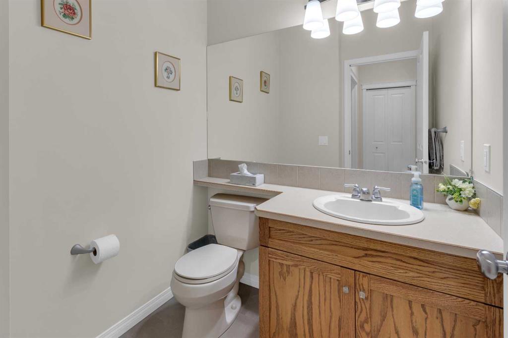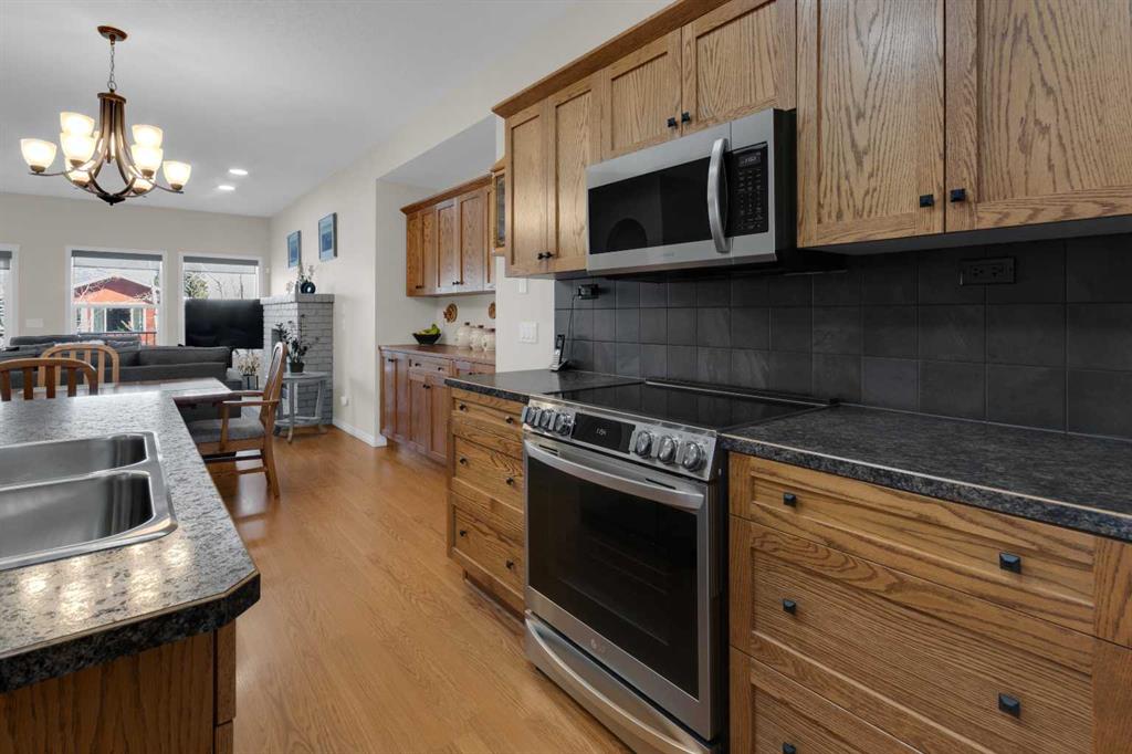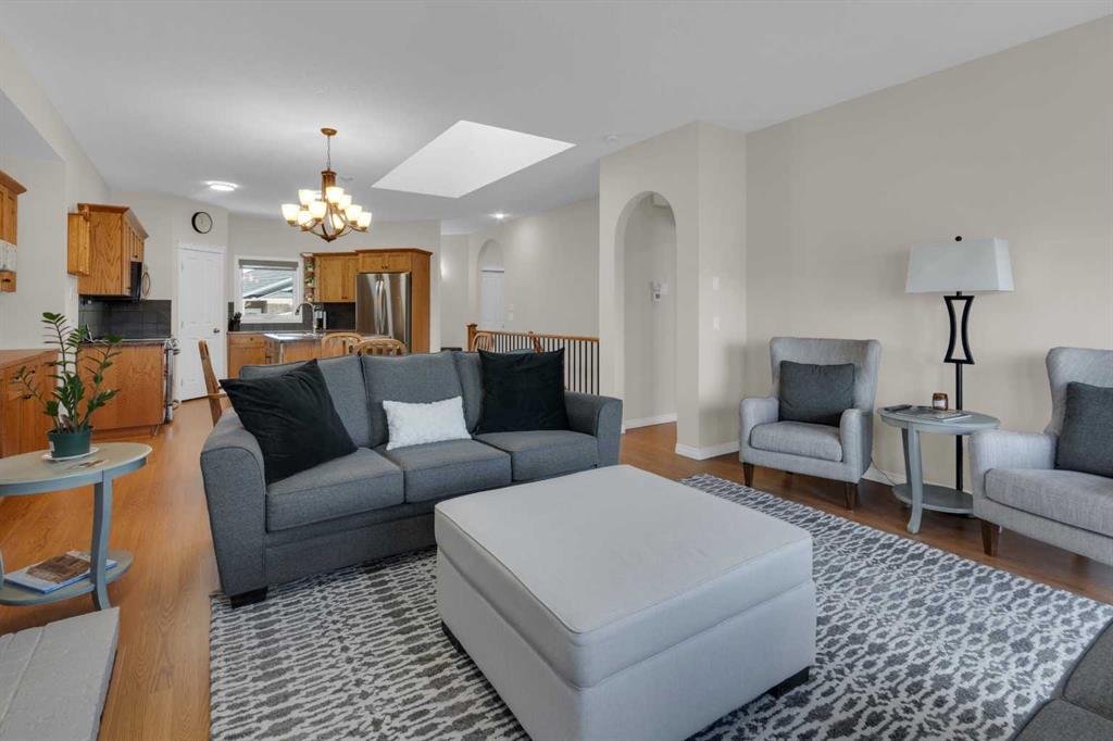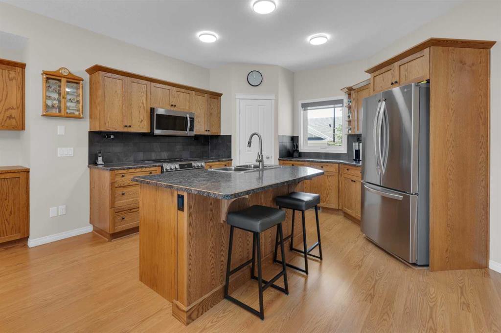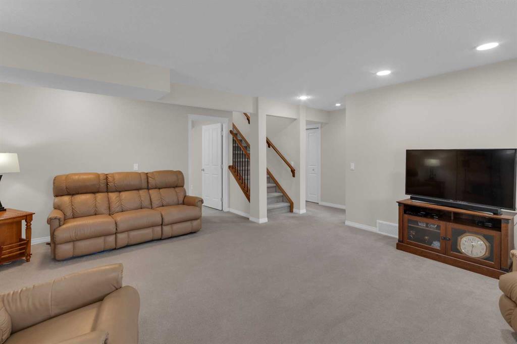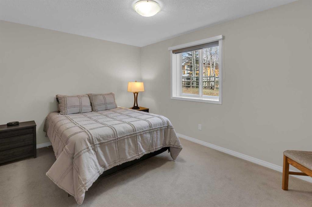 Impressive, fresh, open, and bright! This immaculate updated villa sits in a quiet cul de sac backing onto a treed green belt with access to natural areas and Turner Valley Golf Club. Surprisingly private and peaceful, listen to birdsong and watch the deer stroll by your private deck and living areas. This turnkey, easy care home has extensive updates that make it truly move in ready. A partial list of updates (5 years); painted top to bottom - ceilings, doors and trim. New AC, all new appliances, all new window coverings, all new light fixtures (LED), all faucets, HWT, sump pump, vinyl floors, new landscaping incl. 5 big Colorado Blue Spruce at back fence, sprinklers, and more! Large functional indoor & outdoor living areas on the 1217 sq.ft. main with a sunny skylight spilling natural light all day. Roomy, country style kitchen with generous counter/storage space. Airy, open, connected, dining and living areas that open onto the 17’ x 10’ deck. Spacious 15’ x 15’ primary bedroom, main level laundry/mud room and a discreetly located powder room. Enjoy 1140 sq.ft. of thoughtful lower-level development with big bright walkout size windows, large family room with cozy fireplace, bedroom, full bath, flex room/bedroom (new egress window) and ample storage. A great home for when friends/family visit - 3 bedrooms, 2.5 baths, 2 gas fireplaces, 2 living areas – yet not too big when relaxing on your own. Refreshed 25’ x 19’2” garage with epoxy painted floor, new heater & opener. Recently serviced Lennox furnace and Kinetico filtration water softener. Lots of nearby natural walking trails, off leash areas and a paved walking/bike path into town. A short bike ride or drive for all your favourite shops, restaurants, groceries, pubs and full-service hospital. NOTE: Low condo fees of $273 include exterior maintenance, (incl. roof, windows and doors!) lawn service & snow removal. Telus Fibre Optics Internet available. A great opportunity, all the hard work is done. Just move in, relax and enjoy your elegant easy-care country home! Click 3D for interactive floorplan.