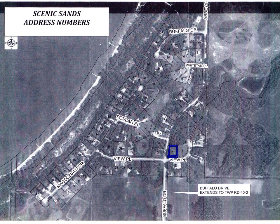 Central Alberta`s Best Kept Secret- Scenic Sands at Buffalo Lake! Beautiful ½ Acre well treed lot. Located on a quiet street with a great slope to build a walk-out. Great community with a natural sand beach, walking paths, playground and architectural controls. Buffalo Lake offers a 93 square km warm lake with sand beaches and no boat traffic! Only 2.5 hours from Calgary or Edmonton and 45 min to Red Deer. Power and gas to the property line. A great spot to build your dream cabin!!