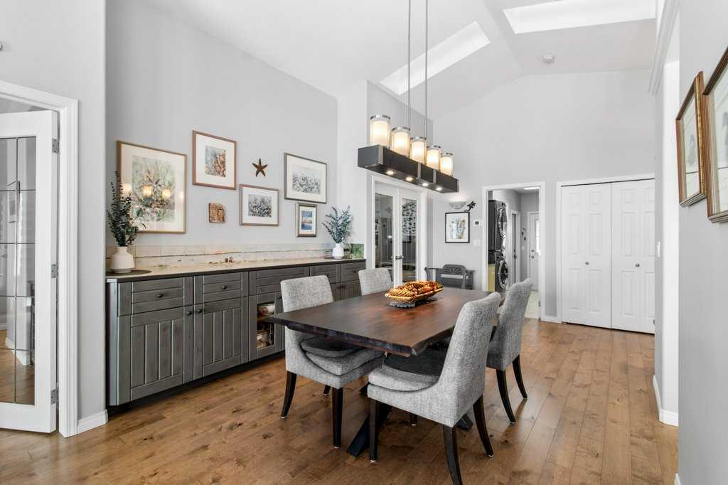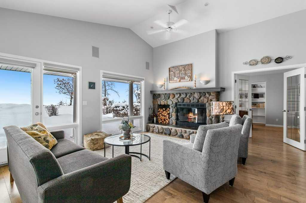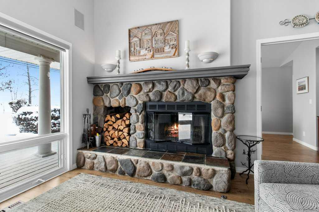 Enjoy a 180 degree lake view from this tastefully updated home in the highly desirable Summer Village of Jarvis Bay. This isn’t just a home—it’s a lifestyle upgrade. Located just steps from Sylvan Lake’s beautiful sandy shoreline and across from a small park, this stunning 3-bedroom bungalow offers breathtaking, unobstructed lake views and incredible sunsets, all while being only 200 feet from town limits. Set on a spacious 75 x 130 lot, the property provides the perfect balance of peaceful lake living and convenient access to town amenities. Start your mornings with coffee on the expansive wrap-around deck, constructed with treated spruce and water-sealed, where the lake becomes your daily backdrop. Inside, the open-concept living area features maple engineered wide plank hardwood flooring, a cozy wood-burning stone fireplace with natural gas log lighter, and large floor-to-ceiling windows that frame the water views and fill the home with natural light. The kitchen is both functional and stylish with granite countertops, bright windows, a JennAir range with interchangeable cooking cassettes including griddle, grill, and 2x2 elements, and a custom-built sideboard, creating a perfect space for cooking and entertaining. The primary bedroom is a private sanctuary featuring a beautifully updated 5-piece ensuite with underfloor heating and spa-like tub, along with a walk-in closet. Two additional spacious bedrooms share a convenient connected 3-piece bathroom, providing comfortable accommodation for family or guests. The main floor has also been refreshed with updated carpeting and fresh paint, enhancing the home’s bright and welcoming feel. This home offers a massive storage space beneath the home with a 5-foot-high crawl space that is easily accessible. Modern conveniences include central vacuum, remote-controlled blinds, and built-in audio wiring in the den, living room, ensuite, and bonus room. Mechanical upgrades provide added peace of mind with a generator and second dedicated electrical panel, a 2016 septic system, and a 2024 high-efficiency furnace with tankless hot water on demand. Outside, the beautifully landscaped yard features a firepit area perfect for evening gatherings. The property also includes a double attached garage with Aspart-X finished flooring and additional storage space, and a 20x24 flex room perched above the garage, creating a private oasis for guests or extended family. Recent exterior improvements include a new garage concrete pad and limestone driveway, completing this thoughtfully maintained property. With its unbeatable location just steps from the beach, thoughtful upgrades throughout, and exceptional lake views, this property offers a truly unique opportunity to enjoy the very best of Sylvan Lake living.