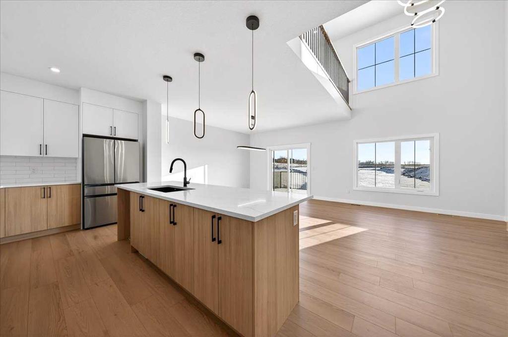 Welcome home to this beautiful family residence in the heart of Lakewood, backing onto scenic walking paths and a peaceful artificial stream. This spacious two storey home offers over 2,070 sqft of above grade living space and is perfectly designed for comfortable, everyday family living. The main floor features a bright and welcoming living room with a cozy fireplace, an open kitchen with pantry, and a generous dining area ideal for family meals and gatherings. A main-floor office provides a flexible space for working from home or homework time. The mudroom and convenient 2 piece bathroom help keep busy family life organized, while the oversized attached garage offers plenty of room for vehicles, bikes, and storage. Upstairs, you’ll find three well-sized bedrooms, including a relaxing primary retreat complete with a walk-in closet and a 5 piece ensuite. A spacious upper family/bonus room is perfect for movie nights, playtime, or a teen hangout. Upper-level laundry and an additional 4-piece bathroom add everyday convenience for growing families. The walkout full unfinished basement offers excellent future development potential — create additional living space, bedrooms, or a recreation area tailored to your family’s needs. Step outside and enjoy direct access to the artificial stream and walking paths, ideal for evening strolls, biking, and outdoor family time. Located in the highly desirable Lakewood community, families will appreciate the nearby tennis courts, playgrounds, and green spaces, along with close proximity to schools, parks, and amenities. This is a wonderful opportunity to settle into a welcoming neighborhood and truly feel at home.