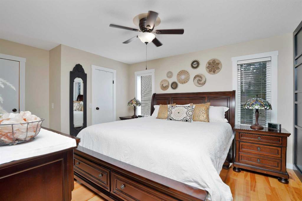 Tucked away on a quiet close in one of Red Deer's most sought-after neighborhoods, 7 Revie Close boasts 2,800 sq ft of finished living space. With 4 bedrooms and 3 bathrooms (including an updated primary suite), this home is a must-see for those who want it all! Meticulously maintained and move-in ready, it shows pride of ownership throughout, offering a clean, well-cared-for space where you can start enjoying life from day one. The main floor features hardwood floors, big windows, and a gas fireplace in the living room, with an open dining space that leads right out to the back deck—ideal for morning coffees or family get-togethers. The sizeable U-shaped kitchen has everything you need: loads of cabinet space, a corner pantry, a peninsula for extra prep room, and a newer dishwasher. There’s even a main floor office, perfect for tackling projects or setting up a creative space. Two bedrooms upstairs include the primary with a fully updated ensuite featuring a walk-in shower and dual vanity, plus another updated 4-piece bath for guests or daily use. A heated double garage is attached, and this home also boasts central air conditioning. Downstairs is set up for movie nights, game nights, and weekend hangouts. The huge rec room has a second gas fireplace and a bar, while two more bedrooms, a 3-piece bath, and a laundry room round out the space. The basement also features large windows, keeping it bright without feeling like a dungeon. A new hot water tank was installed in 2025. Step outside and fall in love with the yard—lush, private, and perfect for making the most of every season. A spacious upper deck, lower brick patio, and incredible landscaping with mature trees, shrubs, and blooming flowers create a peaceful setting to unwind or host friends. Did we mention it has underground sprinklers? Also fully fenced and backing onto a lane, it’s a backyard you’ll never want to leave. The location is just as appealing—walking distance to the Rosedale Rink and park, near transit stops, and offers quick access to 30th Avenue, Timberlands Plaza, and Clearview Market for everything you need, just minutes from your door. With a standout location and a layout that checks every box, this home makes it easy to settle in and start enjoying the good life.