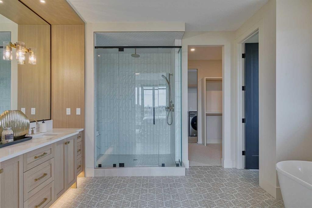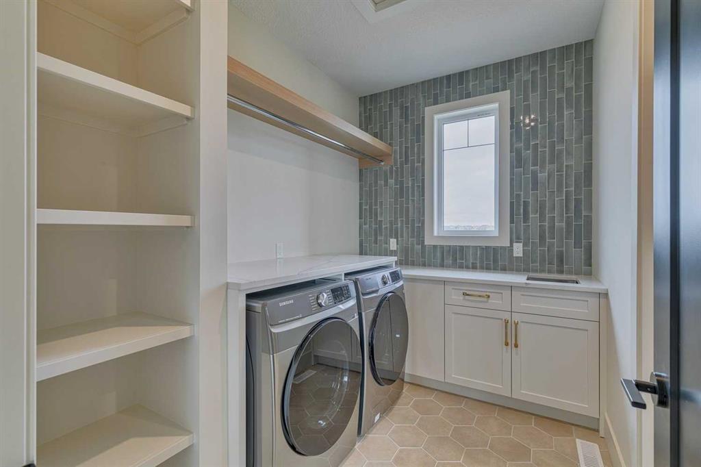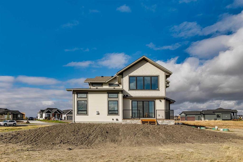 This "Alberni" Show Home is one of Fifth Avenue Homes most popular plans! A traditional two-storey offering a total of 4,148 sq.ft. of luxury living space including professional basement development! The great room features a gas fireplace and 20' ceiling, adjoining dining area with a sliding door to the 14'x17' deck (with BBQ gas line) and access to the large yard. Dream kitchen with built-in fridge, oversized island & 4 stool breakfast bar, Quartz countertops and a walk-through butler’s pantry. Completing the main floor is the front den, a 2 piece bathroom and mudroom with direct access into the garage. The upper level has the perfect room count: an oversized primary suite with a spa-style 5 piece ensuite and walk-in closet, 2 additional bedrooms, 5 piece bathroom and laundry room! The lower level is developed with a family room featuring a gas fireplace, glass wine cellar and wet bar, home gym, 4 piece bathroom, hobby/craft room and mechanical room. Awesome oversized triple attached garage with additional storage or room for a workshop. This home has many upgrades including engineered hardwood, custom tile, closet organizers & wood shelves, Hardie board siding and 30 year shingles. Full Builder and New Home Warranties. Green Haven Estates is located minutes east of Okotoks offering peaceful country living! Less than 30 minutes to the South Campus Hospital and Calgary’s amenities too! Early 2026 possession available.