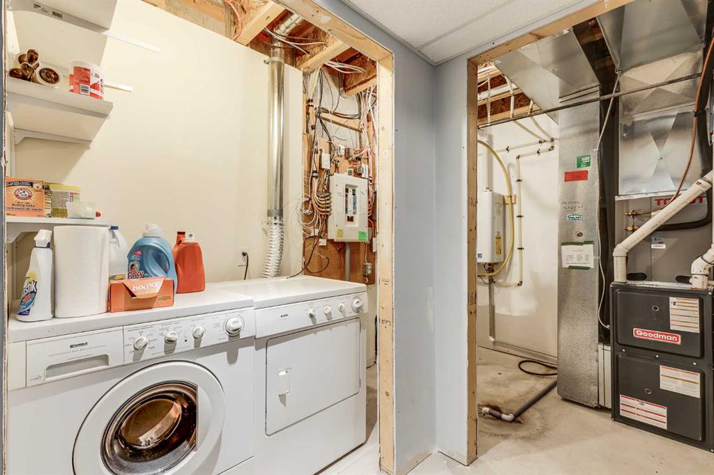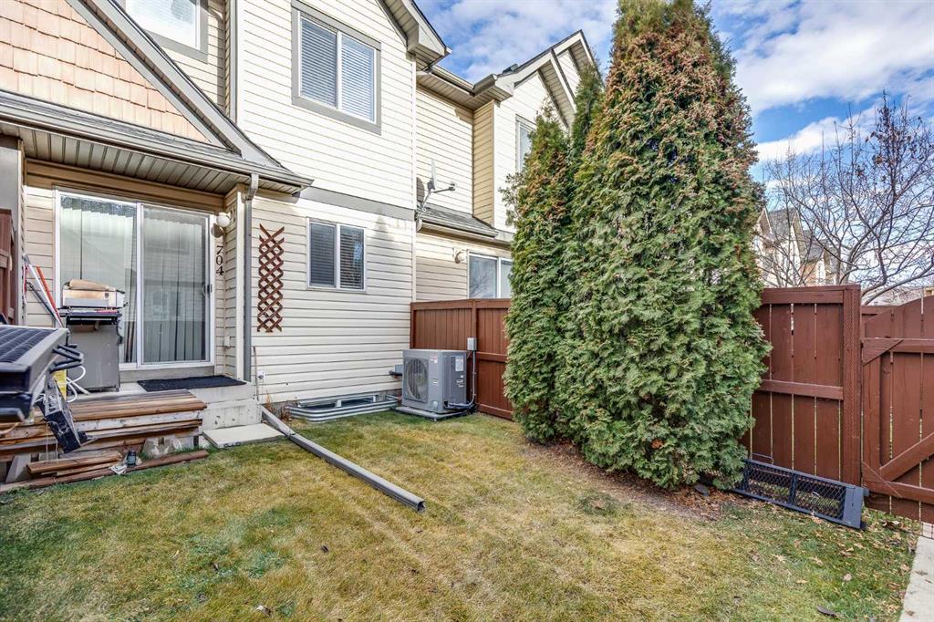 This thoughtful townhome blends comfort, convenience and year-round efficiency with a bright layout, dual primary bedrooms and a sunny south backyard that creates appealing outdoor space. Generous front windows fill the living room with natural light, setting a relaxed tone from the moment you step inside. Clear sightlines into the dining area support easy everyday living while the rear patio slider enables smooth transitions to the deck for barbeque nights or quiet mornings outside. A well-organized kitchen adds functional value with timeless subway tile, updated hardware, ample cabinetry and a pantry that keeps busy households running smoothly. A main floor powder room enhances day-to-day practicality. Upstairs, each bedroom enjoys its own private ensuite, offering comfort, privacy and flexibility for shared living, guests or future resale appeal. Carpeted floors add warmth across the upper level and windows in both rooms bring in consistent natural light. A partially finished basement presents abundant storage and future potential for additional living space as needs evolve. Air conditioning provides steady comfort in warm months, while the new tankless hot water heater ensures efficient, on-demand hot water. A fully fenced south-facing backyard extends living outdoors with room for gardening, relaxing or creating a pet-friendly space, supported by direct sunshine throughout the day. 2 dedicated parking stalls sit just steps from the front door for everyday convenience. Location adds further value, placing you minutes from Kingsview Market and Kings Heights amenities for groceries, dining and daily errands, along with quick access to CrossIron Mills for larger shopping trips. Proximity to local schools supports young families and smooth connections to Deerfoot offer efficient commuting into Calgary or around Airdrie. Investors, first-time buyers and downsizers will appreciate the low-maintenance lifestyle, smart layout and thoughtful improvements that make this home an easy choice in a well-loved community.