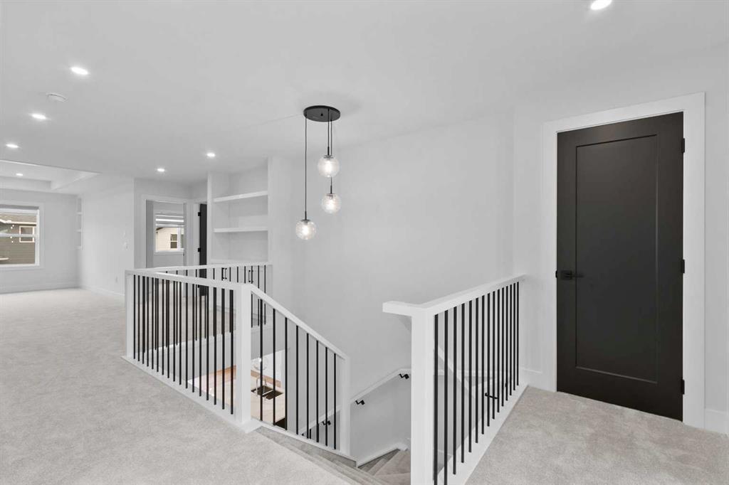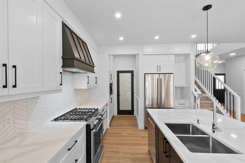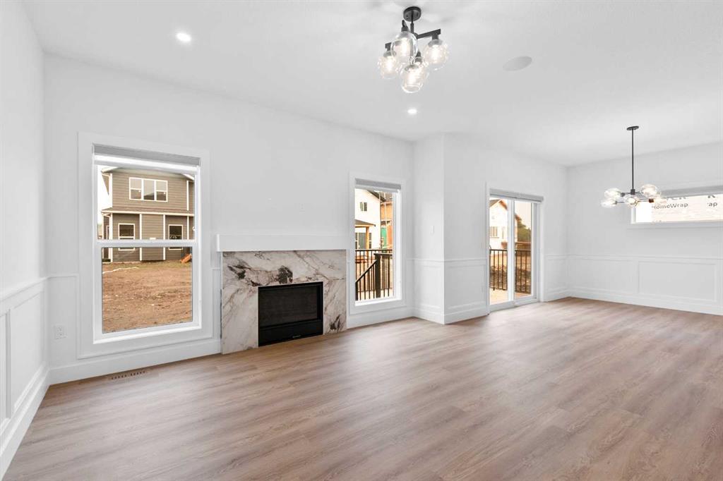 Welcome to this stunning detached home in Mandalay Estates, Carstairs, which offers an ideal location near downtown amenities and recreational spots such as the Carstairs Community Golf Course, Memorial Arena, and Campground. It's also conveniently close to Hugh Sutherland School with a grocery store (Loblaws) located right within the subdivision. Expertly crafted by Marygold Homes, this meticulously designed residence features over 2,400 sq.ft. of thoughtfully planned living space, including 3 spacious bedrooms and 2.5 bathrooms—perfect for families seeking comfort and functionality. Walk into luxury with custom wainscoting, luxury vinyl plank flooring, plush carpet, and expansive windows that fill the home with natural light. The exterior boasts durable hardie-board siding and a triple-car attached garage—both aesthetically pleasing as much as it is practical. From the garage, a well-equipped mudroom with custom-built storage leads directly into the home. The kitchen is a chef’s dream, showcasing a large central island with bar seating and dual-side storage, stainless steel appliances, full-height shaker cabinetry, quartz countertops, and soft-close hardware throughout. Adjacent to the kitchen, the elegant dining area opens through large patio doors to a spacious, treated-wood deck and backyard—ideal for entertaining. The inviting living room features a custom mantle and tile-surround gas fireplace, creating a cozy space for family gatherings. A dedicated home office offers a quiet and productive workspace. The upper level, with its thoughtfully separated layout enhances privacy with the master-suite spaced away from the secondary bedrooms. The luxurious primary headquarters includes oversized windows, a raised box-tray ceiling, as well as a walk-in closet with built-in shelving. The 5-piece ensuite features a glass-enclosed shower with a bench and niche, a large soaker tub, a dual-sink vanity, and a private water closet. The laundry room is also conveniently located on the upper level and comes complete with custom cabinetry. A built-in display and entertainment center, a separate built-in desk, a full 4-pc bathroom, a generous bonus room perfect for family time, as well as two sizable additional bedrooms, each with their own built-in closets, complete the upper floor. The unfinished basement includes rough-ins for a future bathroom as well as 9-ft. ceilings—offering flexibility for further customization to suit a growing family’s needs. **[GST rebate, if any, shall go to the seller.]**