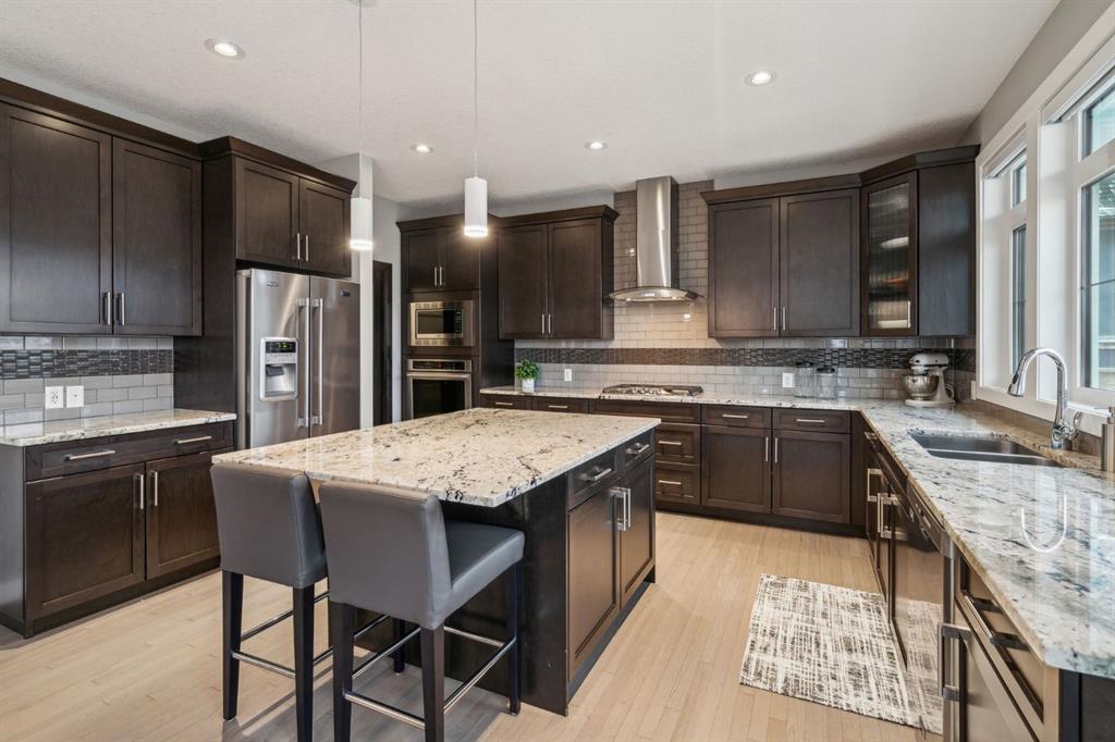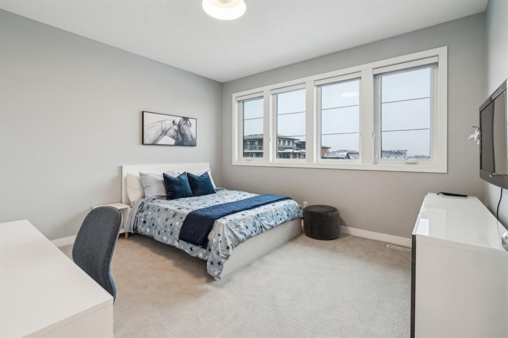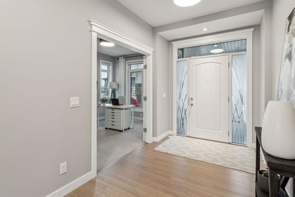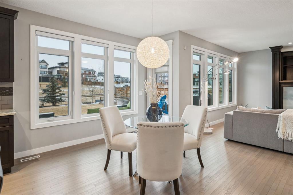 Welcome to your GORGEOUS family home located in the very sought after community of Harmony where life and play are aligned! Featuring the best layout for a growing family, a huge lot backing onto GREEN SPACE, walking path- with a well-appointed 5 bedrooms, office, BONUS ROOM and MASSIVE YARD! From the moment you enter you notice the gleaming custom hardwood floors with spacious, grand foyer. Off the front is a very expansive office for a functional work space. The well designed, open- concept main floor has full windows on the back of the house and a SOUTH BACK yard exposure - giving you natural light all day! The living room has a gas fireplace with custom surround and opens to the dining area and back door. From there you can head outside to your DREAM YARD and never ending outdoor space that is every homeowner’s fantasy! Including an expansive outdoor entertaining area and colossal sprawling yard which can house a hockey rink or playtime for your whole family! This incredible back green space also opens up to continued panoramic green space that this street is known for and west unobstructed views of the Rocky Mountains which is why this street is so sought-after and one of the best places to live here. Back inside you have a huge CHEFS KITCHEN with granite countertops, shaker style cabinetry, a large island, stainless-steel appliances including a wall oven and tons of storage. The pass-through pantry makes grocery drop off easy from the garage and good mudroom with lockers for all of your family’s busy days! A 2 pc powder room completes the level. Upstairs, the thoughtful design continues with an oversized stunning primary suite - a tranquil space to relax with big windows and tons of natural light. Your spa-like en-suite has a standalone soaker tub, generous shower and dual vanity and a walk-in closet with built ins. 2 more large bedrooms on this level that have a 4pc bath in between them to share. You will also be able to enjoy movie nights or lazy days in your perfect bonus room and upper laundry. Downstairs, your basement is fully finished with 2 bedrooms and 3 pc bath and rec space for ping-pong nights or a future bar area if you so chose! Additionally, is has a living room area and gym space set up for your at home workouts. This home has a FRONT ATTACHED, double-oversized garage with tons of storage, epoxy flooring and an extended driveway. Close to Edge school and all of the amenities that Harmony has to offer for all stages of life—beaches, lake and beach club, playgrounds, Mickelson National Golf Club, LaunchPad, the Adventure Park, trails, and more. Just west outside of Calgary 5 mins, and the city-center a short 25 min commute to downtown. This is easily the best kept (well almost) secret making it easy to escape to Canmore or the mountains and offering the charm and comfort of small-town living without sacrificing urban accessibility. To be a part of Harmony is to be part of something more than just a neighborhood; a it’s a feeling of belonging.