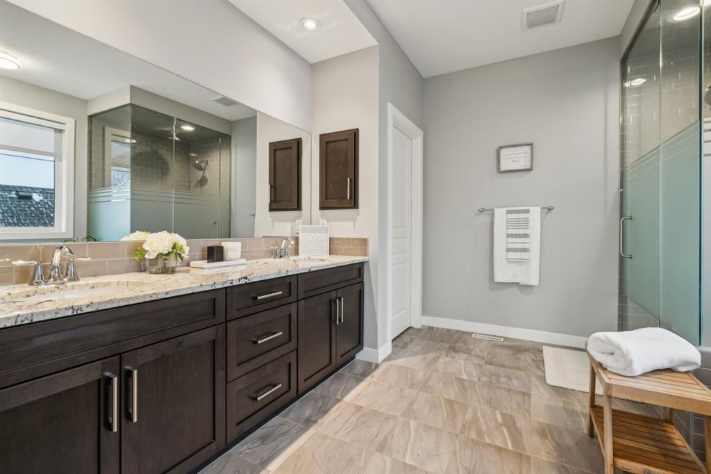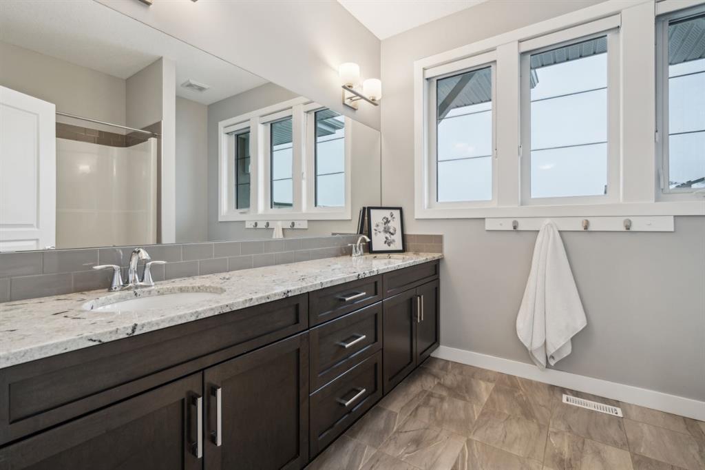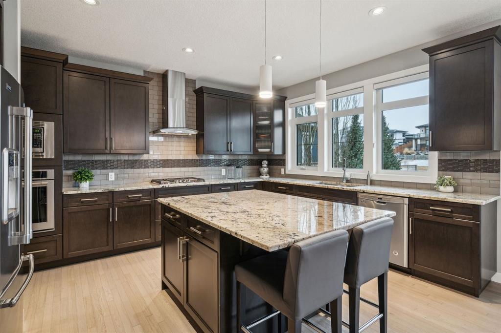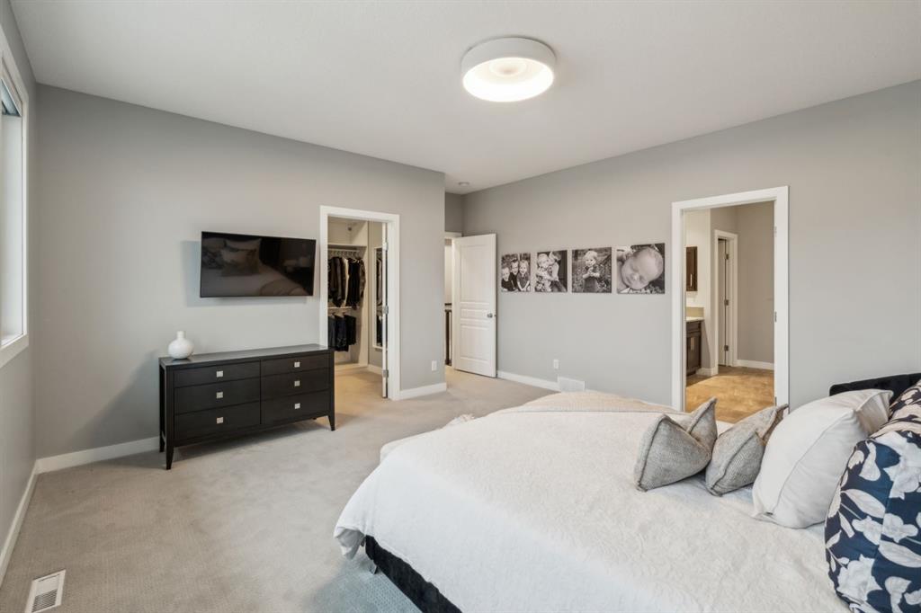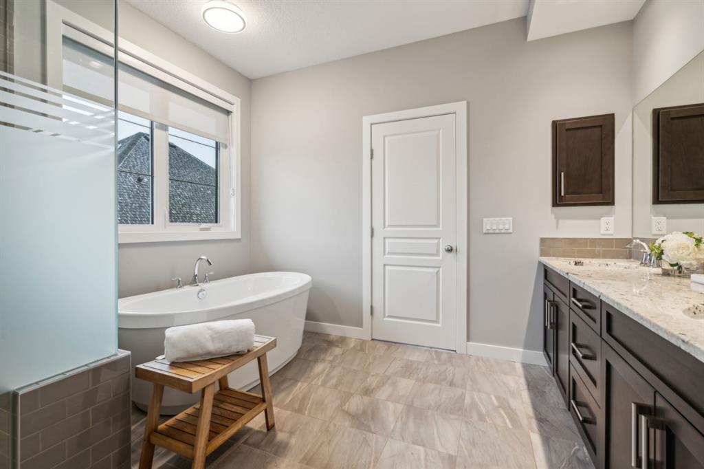 Welcome to your GORGEOUS family home located in the very sought after community of Harmony where life and play are aligned! Featuring the best layout for a growing family, a huge lot backing onto GREEN SPACE, walking path- with a well-appointed 5 bedrooms, office, BONUS ROOM and MASSIVE YARD! From the moment you enter you notice the gleaming custom hardwood floors with spacious, grand foyer. Off the front is a very expansive office for a functional work space. The well designed, open- concept main floor has full windows on the back of the house and a SOUTH BACK yard exposure - giving you natural light all day! The living room has a gas fireplace with custom surround and opens to the dining area and back door. From there you can head outside to your DREAM YARD and never ending outdoor space that is every homeowner’s fantasy! Including an expansive outdoor entertaining area and colossal sprawling yard which can house a hockey rink or playtime for your whole family! This incredible back green space also opens up to continued panoramic green space that this street is known for and west unobstructed views of the Rocky Mountains which is why this street is so sought-after and one of the best places to live here. Back inside you have a huge CHEFS KITCHEN with granite countertops, shaker style cabinetry, a large island, stainless-steel appliances including a wall oven and tons of storage. The pass-through pantry makes grocery drop off easy from the garage and good mudroom with lockers for all of your family’s busy days! A 2 pc powder room completes the level. Upstairs, the thoughtful design continues with an oversized stunning primary suite - a tranquil space to relax with big windows and tons of natural light. Your spa-like en-suite has a standalone soaker tub, generous shower and dual vanity and a walk-in closet with built ins. 2 more large bedrooms on this level that have a 4pc bath in between them to share. You will also be able to enjoy movie nights or lazy days in your perfect bonus room and upper laundry. Downstairs, your basement is fully finished with 2 bedrooms and 3 pc bath and rec space for ping-pong nights or a future bar area if you so chose! Additionally, is has a living room area and gym space set up for your at home workouts. This home has a FRONT ATTACHED, double-oversized garage with tons of storage, epoxy flooring and an extended driveway. Close to Edge school and all of the amenities that Harmony has to offer for all stages of life—beaches, lake and beach club, playgrounds, Mickelson National Golf Club, LaunchPad, the Adventure Park, trails, and more. Just west outside of Calgary 5 mins, and the city-center a short 25 min commute to downtown. This is easily the best kept (well almost) secret making it easy to escape to Canmore or the mountains and offering the charm and comfort of small-town living without sacrificing urban accessibility. To be a part of Harmony is to be part of something more than just a neighborhood; a it’s a feeling of belonging.