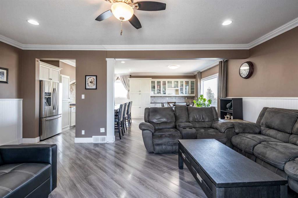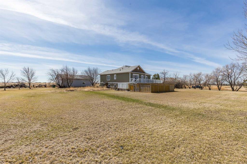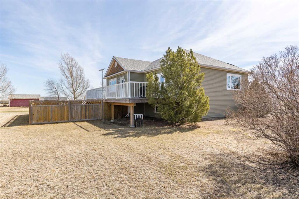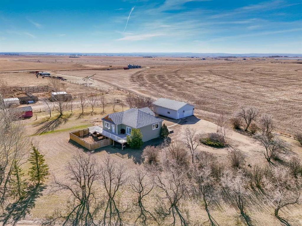 Welcome to acreage living just minutes from the city! Situated on 6.5 acres only 9 km from city limits with paved road access, this well-maintained property offers the perfect balance of space, functionality, and convenience. The home features 4 bedrooms and 3 bathrooms with 9-foot ceilings on the main floor that create a bright, open feel throughout. The beautiful kitchen is equipped with stainless steel appliances and a large island. Just off the living room, there is access to a large deck—perfect for enjoying the peaceful surroundings and outdoor living. The property is serviced with City Water through Westside Water Co-op and includes SMRID irrigation water rights, ideal for maintaining the yard and land. The 30’ x 40’ detached garage/shop is a standout, offering 14-foot ceilings, two overhead doors (12’x10’ and 7’x16’), and a gas line already in place. For those with equestrian interests, the property also includes a 100’ x 100’ outdoor riding arena, horse shelter, and automatic heated waterer. Recent updates provide peace of mind, including new class 4 shingles on the house (2022), new windows and doors (2021), and a new septic tank (2025). Additional features include heated flooring in the basement bathroom and Starlink internet availability. This property delivers the best of acreage living with quick and easy access to the city.