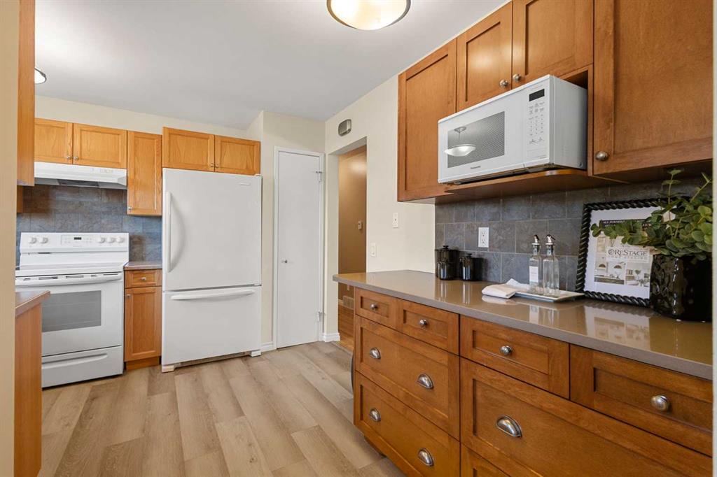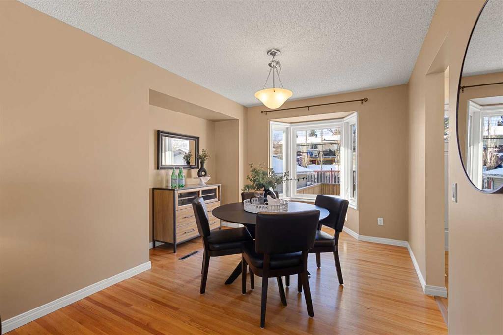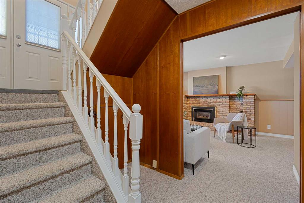 Welcome to this move-in ready family home, ideally situated on a very quiet street while still being close to all amenities, schools, parks, shopping, and more. The main floor welcomes you into a cozy yet spacious living room that flows seamlessly into the dining area, featuring a bay window and a perfect nook for a cabinet/hutch. The functional kitchen offers added cabinetry and extra counter space, a pantry with a built-in spice rack, a corner sink, and a lovely window overlooking the deck and backyard. A rear foyer off the kitchen provides convenient access to the yard, with coat hooks and space for shoe storage. A separate hallway coat closet keeps the front entry neat and clutter-free for guests. The spacious main-floor bathroom includes a window for plenty of natural light, and three bedrooms complete this level. The fully developed basement features a large family room with a play or office area and nice windows. A gas fireplace is set into a striking brick feature wall with ample display space for family photos. Two additional bedrooms—one generously sized—a full bathroom with a window, under-the-stairs storage, and a laundry room complete the lower level. Park your vehicle in the double garage and enjoy the backyard, thoughtfully divided into private areas. Gardening tools and additional storage can be conveniently located under the deck. Excellent value for a five-bedroom home in a desirable location.