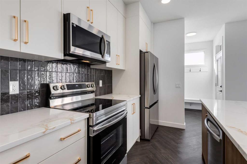 Welcome to the Talo by Rohit Homes, a brand new no condo fee home in the southeast Calgary community of Heartwood. This new construction home in SE Calgary features a desirable side entrance, double concrete parking pad, and offers an excellent opportunity for buyers looking for affordability, ownership freedom, and modern design in a growing community. With front and rear landscaping, no monthly condo fees, and added flexibility for future basement development potential, this home delivers practical value that can be hard to find in today’s Calgary real estate market. Designed for everyday living, the main floor features a bright open concept layout with spacious living and dining areas centered around an oversized kitchen island. The kitchen is ideal for entertaining, casual meals, and gathering with family and friends. A built-in bench at the rear entry adds useful storage, while the tucked-away powder room enhances functionality. Upstairs, the primary suite includes a walk-in closet and private ensuite, creating a comfortable retreat. Two additional bedrooms, a full bathroom, and a central bonus space provide flexibility for a home office, study area, or playroom. Upper floor laundry adds convenience to your daily routine. Finished in Rohit Homes’ Haute Contemporary interior palette, the home showcases bold modern design, striking contrasts, sleek cabinetry, and elevated finishes that create a fresh and stylish atmosphere throughout. The unfinished basement offers future development potential to grow with your needs over time. Full Alberta New Home Warranty coverage is included for added peace of mind. Located in Heartwood SE Calgary, residents enjoy quick access to South Health Campus, Seton YMCA, Calgary Public Library, shopping, restaurants, parks, and planned future schools. If you are searching for an affordable new build home in southeast Calgary with no condo fees, parking for two vehicles, and modern style, this home is worth your attention.