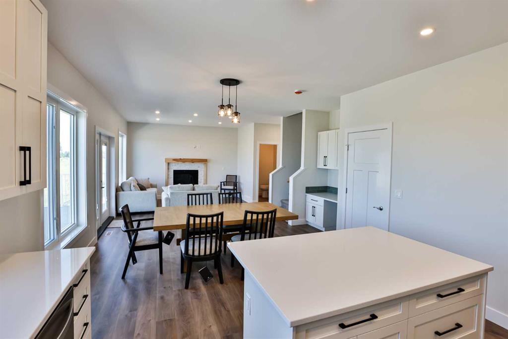 Welcome to your NEXT home! As you approach this residence, you'll immediately notice the beautifully landscaped yard, complete with underground sprinklers that are Wi-Fi enabled for your convenience—a rare upgrade in a newly constructed home. The stunning exterior rock work highlights the front of the property, and who doesn’t appreciate a spacious driveway? Step inside this open-concept home, where vinyl plank flooring flows throughout the main level. Large windows line the back of the house, allowing natural light to fill the space, while a gas fireplace adorned with wood mantle detailing adds warmth and character to the living room. The kitchen features elegant white cabinets and quartz countertops that enhance the room's brightness. You'll find an abundance of pots and pans drawers, accented with lovely black handles. All stainless steel appliances, a built-in butler’s pantry, and a dedicated desk area with upper cabinets provide ample storage and functionality. The windows at the back of the home offer breathtaking views of the Rocky Mountains and the 12th green of the Vulcan Golf Course. Step out onto your expansive deck that spans the width of the home, perfect for entertaining guests. This outdoor space is finished with vinyl decking and aluminum railing, for low maintenance lifestyle. On the second floor, you'll discover generously sized bedrooms, a full bathroom, and a convenient laundry area. The primary bedroom, situated at the back of the home, boasts a spacious walk-in closet with custom built-ins, as well as a beautiful ensuite bathroom featuring a tub and shower with double sinks. The basement is currently undeveloped and awaits your creative touch! This walkout basement is filled with natural light and leads to a concrete patio that completes the space. Additionally, there is a double attached garage that is insulated and drywalled for your comfort. You'll appreciate the absence of HOA fees in this part of the golf course development, allowing you the freedom to install a fence if you have a dog or garden. Plus, there are no age restrictions in this area! Living on the Vulcan Golf Course means enjoying a vibrant community, complete with an abundance of amenities, including close proximity to schools, an outdoor pool, parks, a hospital and arena. Located between the cities of Lethbridge and Calgary on Highway 23, this would be a perfect area to call home. Give your REALTOR®? a call today!