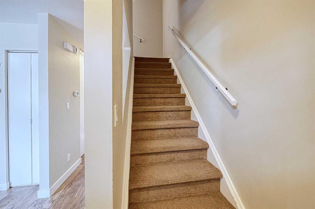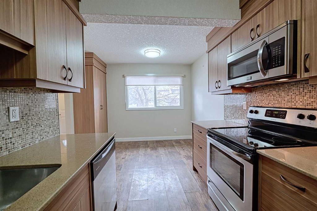 Welcome to a gorgeous UPDATED 3 bedroom townhome located in the sought after Madigan Village. Your future home offers a RENOVATED kitchen with GRANITE countertops, BEAUTIFUL cupboards, FANCY backsplash, STAINLESS STEEL APPLIANCES and laminate flooring; a living room with access to a private backyard; UPDATED 4PC bathroom and 3 spacious bedrooms. Furnace was replaced with a mid-efficiency furnace in 2014. Basement is wide open for future development. 2 PARKING STALLS right in front of the unit for your convenience! Well run complex and excellent location with walking distance (LITERALLY!) to 3 schools - St. Martha's (K9), Dr. Gladys McKelvie Egbert (7-9), and Roland Michener (K-6). PLUS the complex backs onto the vast BIG MARLBOROUGH PARK. Come view it today and get ready to move in!