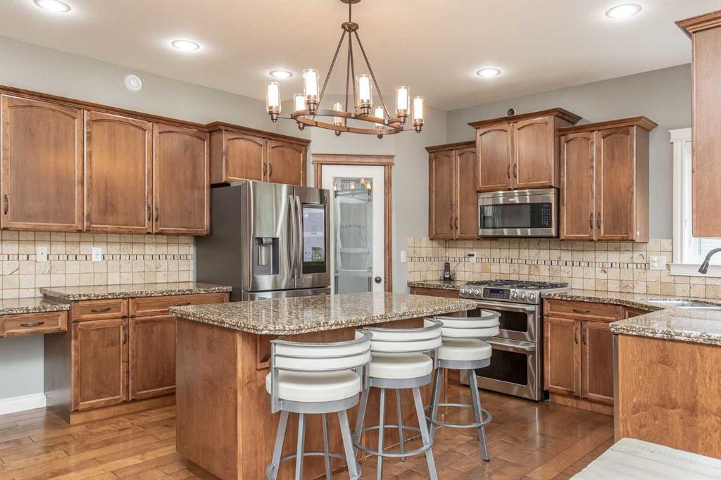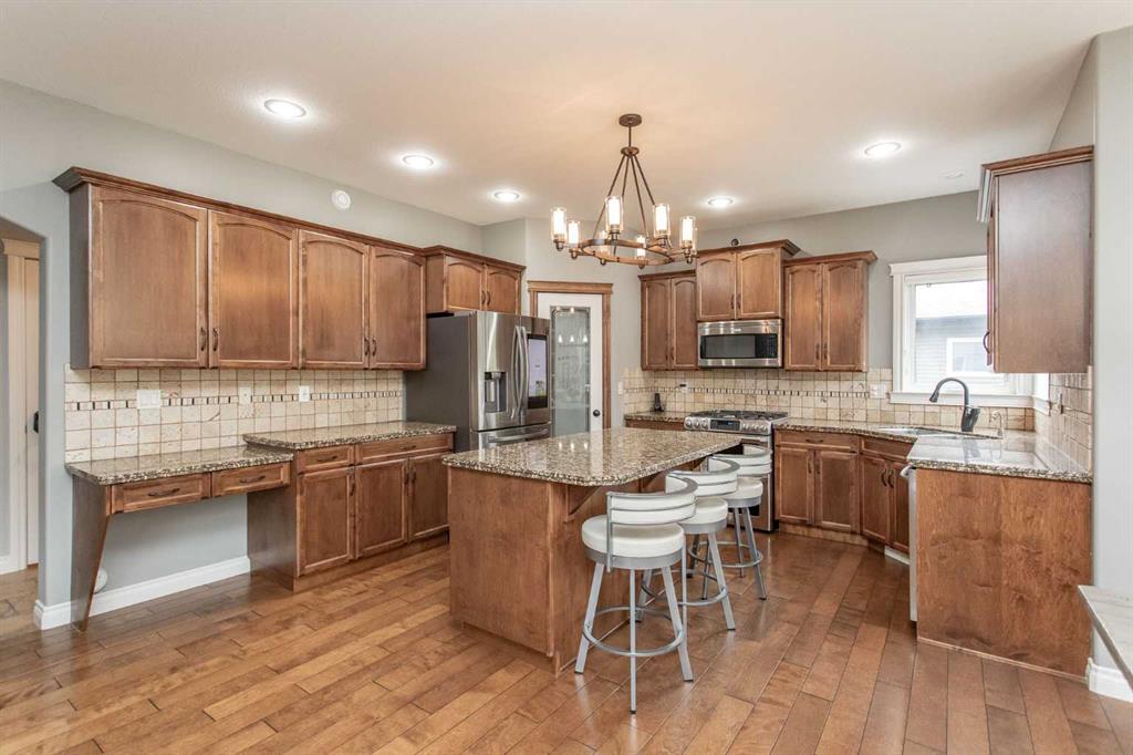 This 2007 executive 2-storey home offering 2,115.05 sqft of living space, plus a fully finished 892.08 sqft walkout basement. Situated on an 8479 sqft lot, located on the north side of Rocky Mountain House in a family-friendly executive neighbourhood, the property backs onto green space with mature forests and walking/bike trails that lead to the North Saskatchewan River. Designed with functionality in mind, the home features 4 bedrooms, 4 bathrooms, 2 kitchens, 3 living rooms, main floor and basement laundry, and a triple attached heated garage with epoxy floors and floor drains. The home is carpet-free throughout for low allergens. The main floor offers an open-concept layout with a chef’s kitchen featuring stainless steel appliances, including a smart fridge, gas range with double oven, granite countertops, island, and a large corner pantry. Natural gas fireplace in the Living Room. Convenient access is provided from both the garage and the front entry. A 2-piece bathroom and main-floor laundry complete this level. The kitchen and dining area open onto a low-maintenance rear deck with natural gas hookups, perfect for family BBQs. Upstairs, you’ll find a second living/family room above the garage outfitted with a projector and built-in screen for the ultimate family home theatre experience. There are 3 spacious bedrooms on this level with a 4-piece main bathroom. The primary suite accommodates a king-sized bed, features a walk-in closet, and a private 4-piece ensuite complete with a shower and jacuzzi tub. The basement is designed for flexibility, with a second kitchen, 4-piece bathroom, bedroom, and walkout entrance—ideal setup for entertaining, multigenerational families or accommodating guests. The professionally landscaped yard is designed for easy living and outdoor enjoyment, with aggregate concrete, tiered garden beds, a hot tub area, a pergola & outdoor fire pit, oversized RV parking pad with 50 AMP power, a storage shed, custom seamless concrete-curbed flower beds, a sprinkler/irrigation system for auto watering, natural gas hookups for BBQ and torches for added evening ambiance. Additional features include built-in projectors and speakers for movies and games (2nd floor and basement), an upgraded on-demand hot water system, and furnace. This home combines practical design with thoughtful QUALITY upgrades and a prime location—truly a property that must be seen to be fully appreciated.