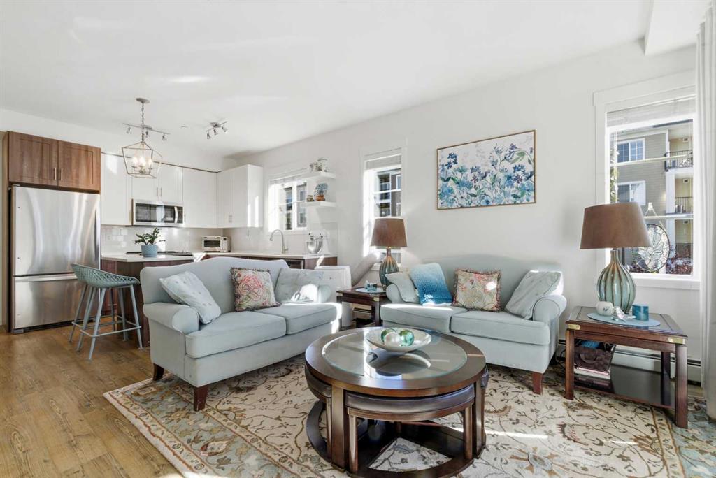 Welcome to this sunny and spacious corner unit in the heart of Legacy in SE Calgary. With southeast exposure and windows on two sides, this home is filled with warm, natural light from morning to evening, giving it a bright and inviting atmosphere that truly stands out. Step inside and you will immediately notice the impressive twelve foot hallway that sets a tone of sophistication and space. It feels grand and welcoming, giving you plenty of room to pause, take off your shoes, and settle in. The oversized entry closet keeps everything neatly tucked away, adding to the clean and elevated feel of the home. With over 800 square feet of thoughtfully designed living space, this condo has a richness you can feel the moment you walk in. The open concept layout allows sunlight to pour through from both sides of the unit, casting a natural glow that enhances every finish and detail. The kitchen and living area feel elegant and refined, creating the perfect backdrop for your furniture, art, and personal touches. All of the appliances were upgraded and the upper cabinets were an upgrade at the time of construction! More convenience for you! Both bedrooms are true bedrooms with generous proportions, large closets, and expansive windows that bring in beautiful light throughout the day. Because it is a corner unit, opening the windows on both sides creates exceptional airflow and a natural cross breeze. If you prefer, the air conditioner keeps the temperature exactly where you want it, making the space as comfortable as it is striking. The in suite laundry is tucked away in its own closet with extra storage, maintaining the uncluttered and polished look of the unit. Beyond the walls of the condo, what truly makes this home special is the sense of community. The seller has loved living here not just for the beautiful space but for the people who make Legacy feel warm and connected. It is a neighborhood where people look out for one another, stop to chat, and bring a genuine sense of belonging to everyday life. The sense of ease continues with titled underground parking and an assigned storage locker, keeping everything secure and close at hand. Legacy itself completes the picture with its calm ponds, walking paths, and vibrant nearby shops and services. This is more than a condo, it is a home in a community that feels rich, elevated, and genuinely welcoming. A bright corner unit like this offers a lifestyle that is elegant, comfortable, and rooted in a neighborhood that people truly love. Come experience it for yourself.